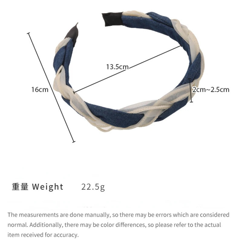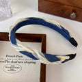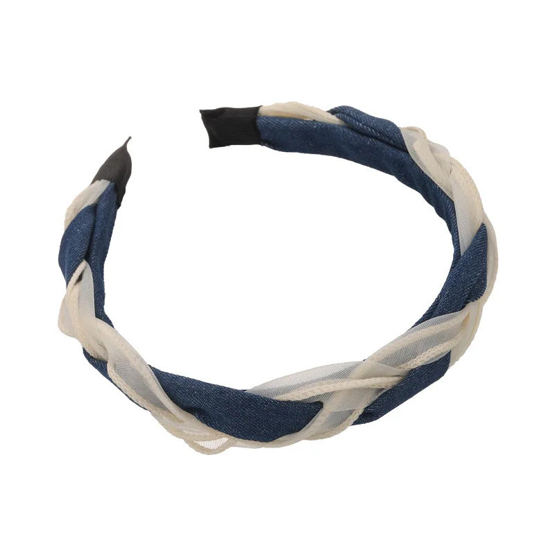 发饰New Retro Braided Twist Headbands Fashion Denim Panelled Mesh Yarn Hair Hoop for Woman Girl Elegant Hair Band Hair Accessories