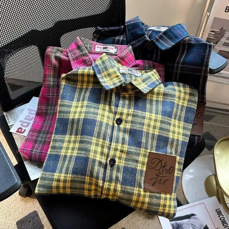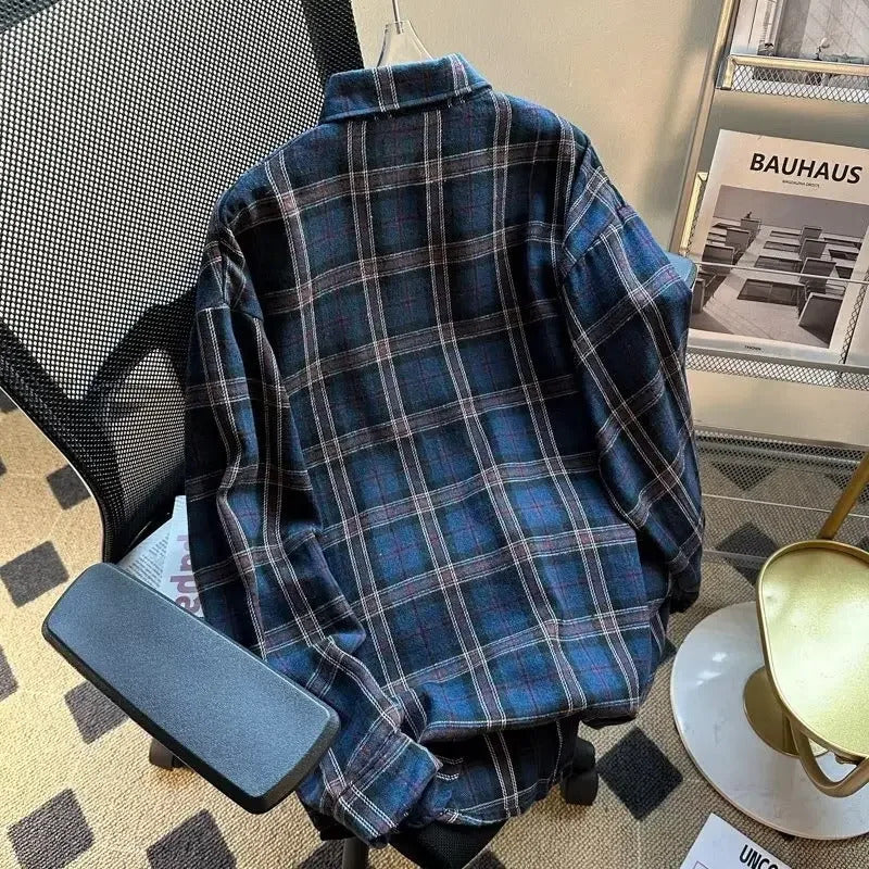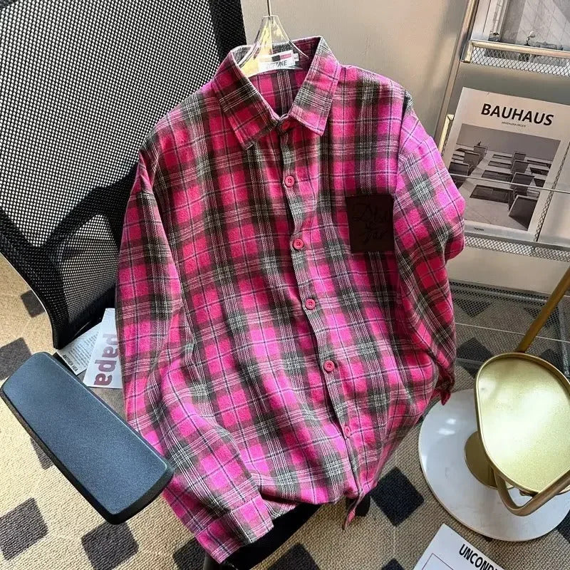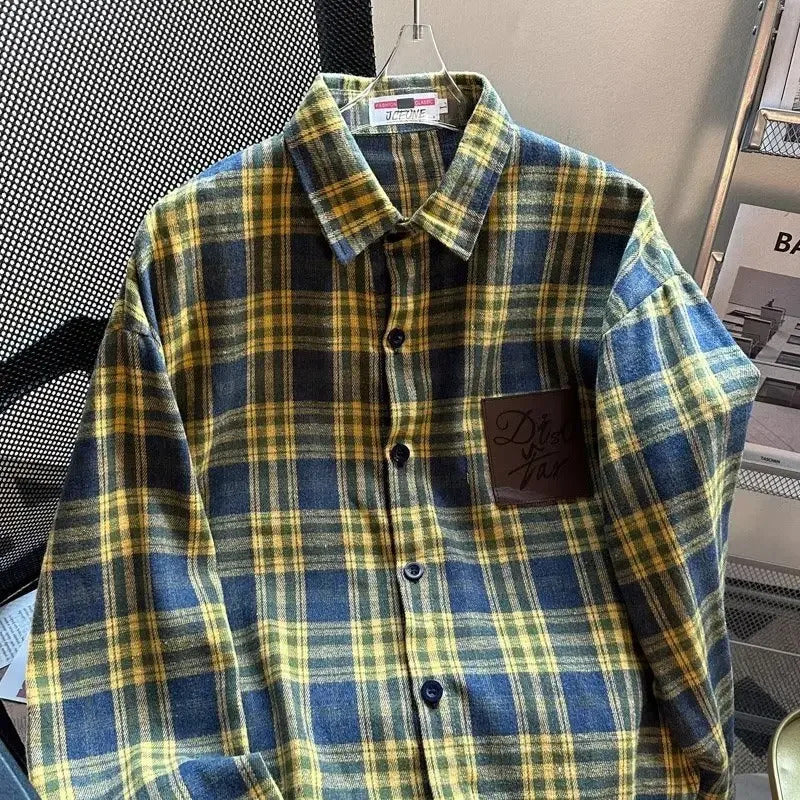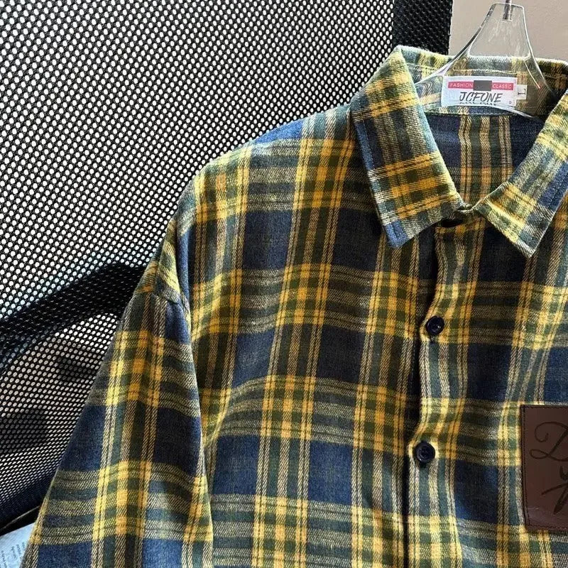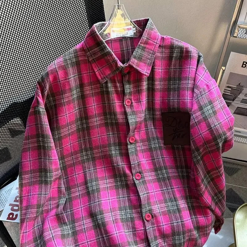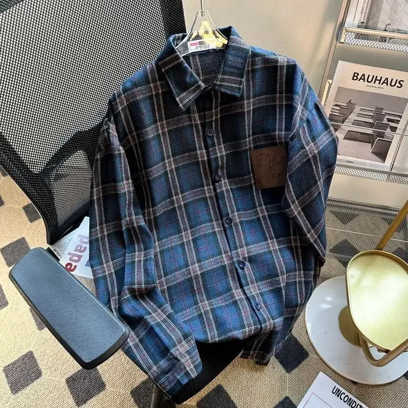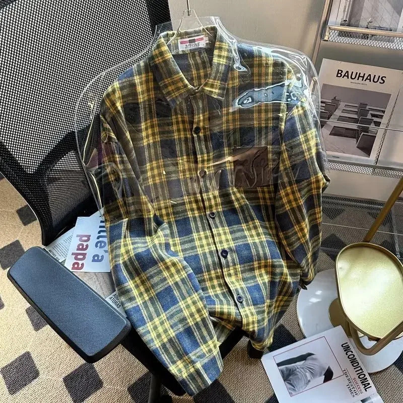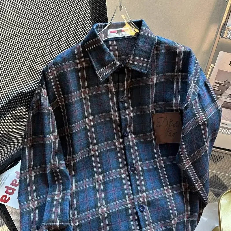 衬衫男New Spring 2023 Men's Plaid Shirt Loose-Fit Casual Long Sleeve American Style Trendy Brand Jacket For Couples