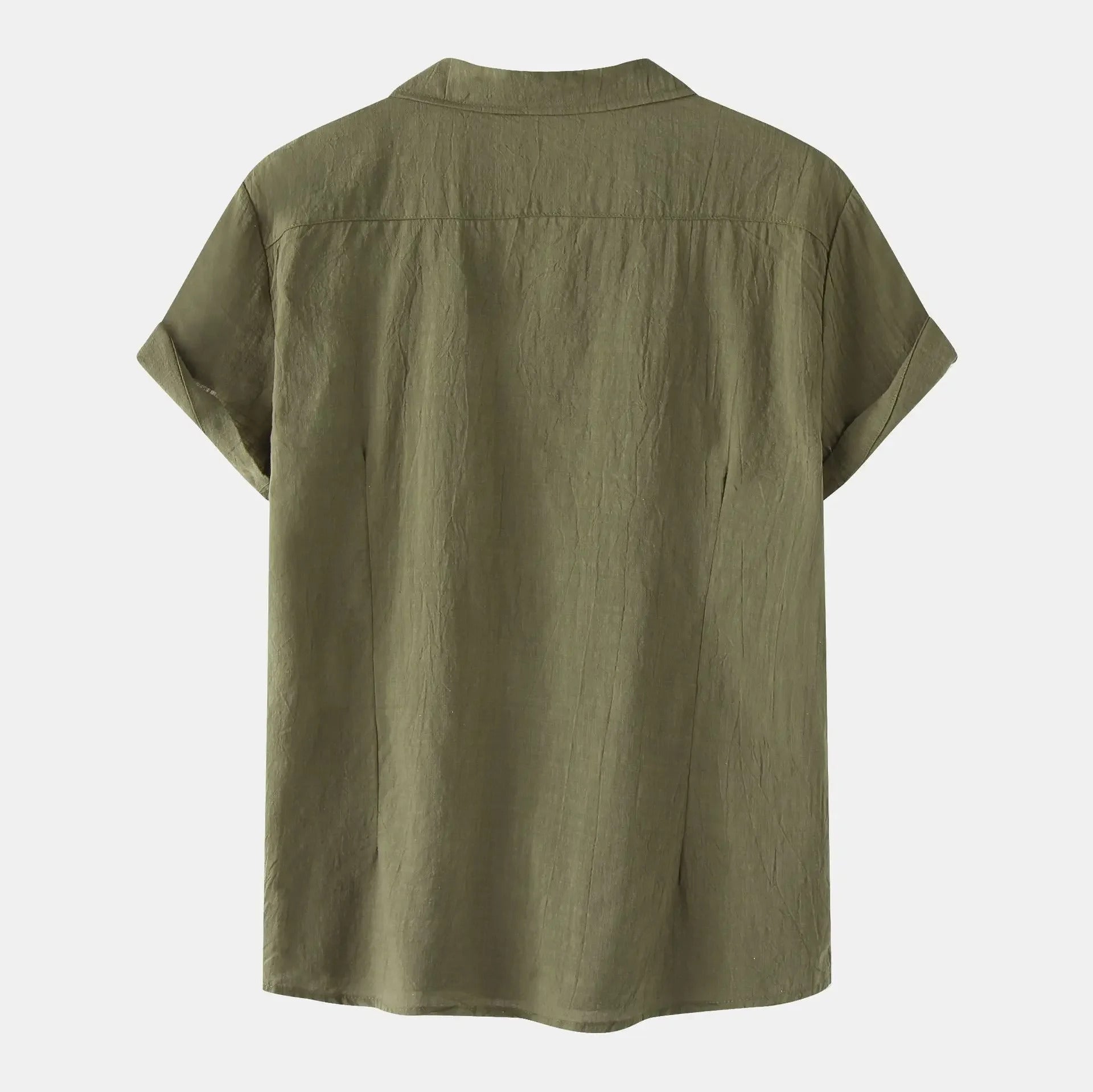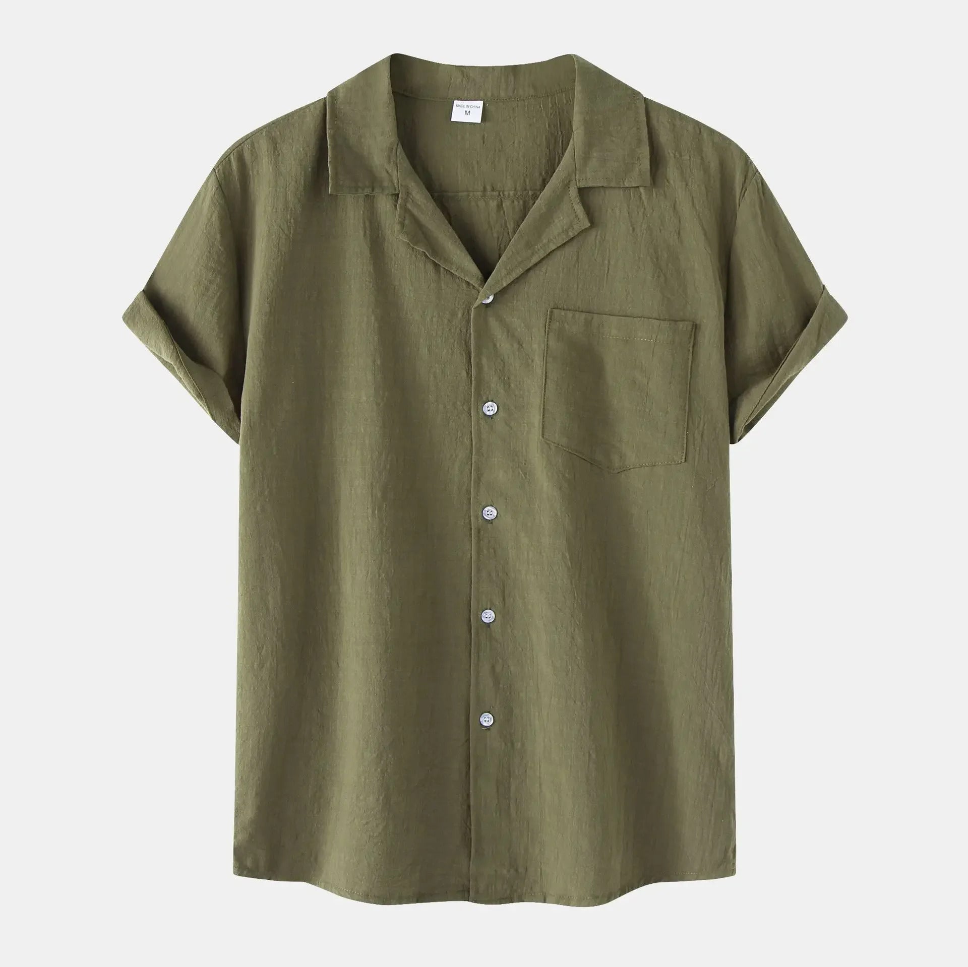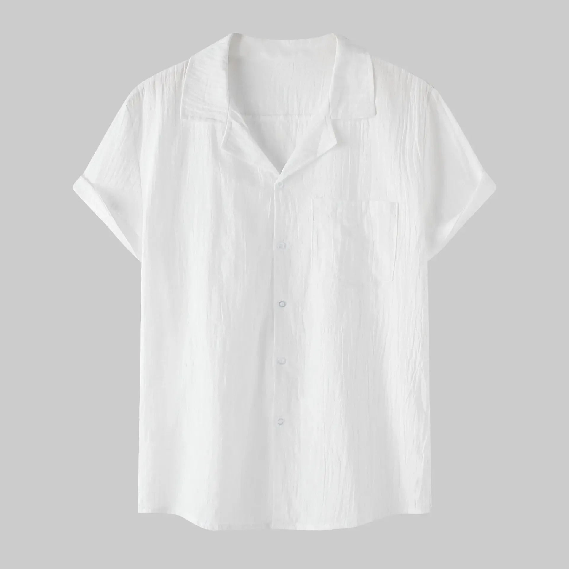衬衫男New Summer Cotton Linen Men's Wear Casual Half Sleeve Cardigan Thin Shirt Men's Cotton Linen Short Sleeve Shirt Leisure
