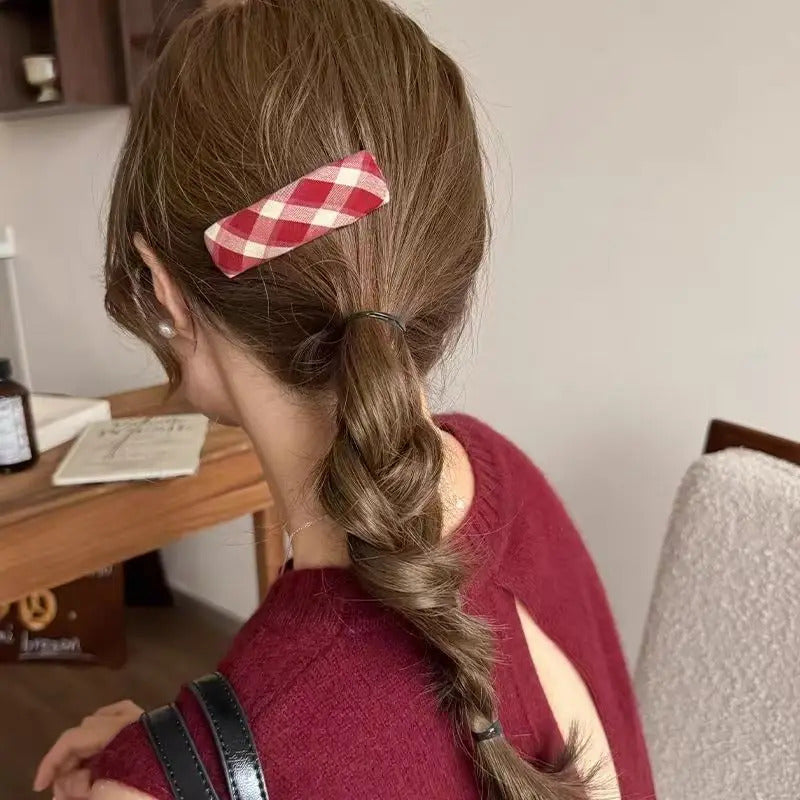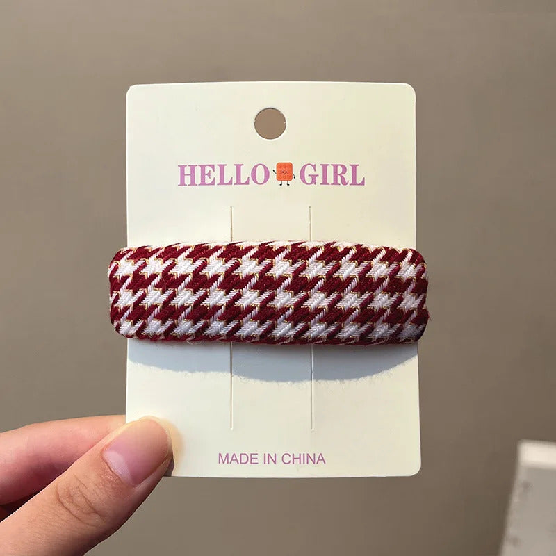 发饰New Year's Sweet Red Hair Pin Women's Thousand Bird Grid Velvet Edge Clip BB Clip Sponge Thickened Bangs Clip Hair Accessories