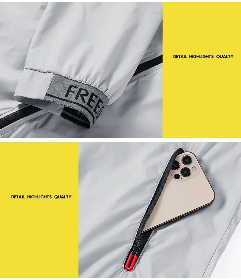 防晒衣男Outdoor Sun Protection Jacket For Men Breathable Reflective Striped Lightweight Fishing Shirt Summer Skin Tone Casual Clothes