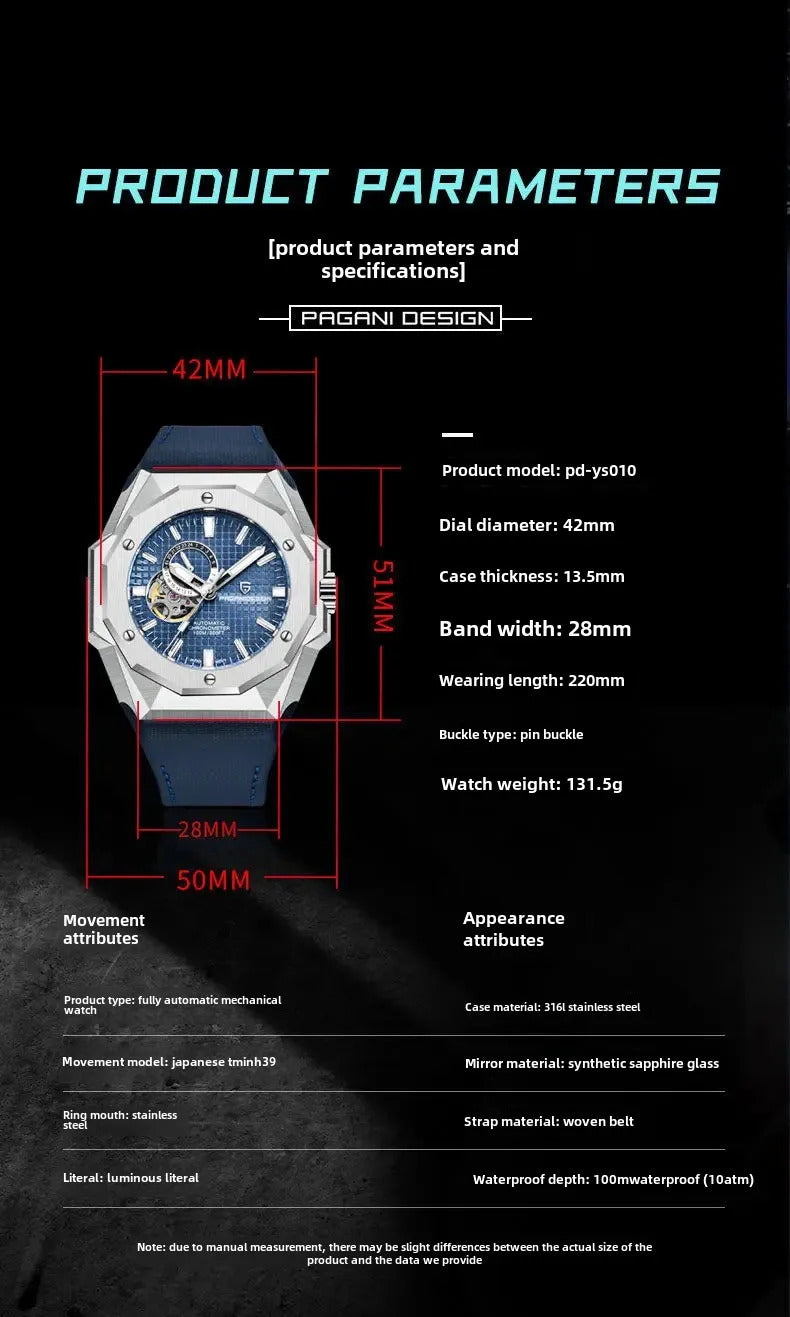 手表男手表男Pagani Design Men's Automatic Mechanical Watch Large Dial Sport Night Light Waterproof YS010