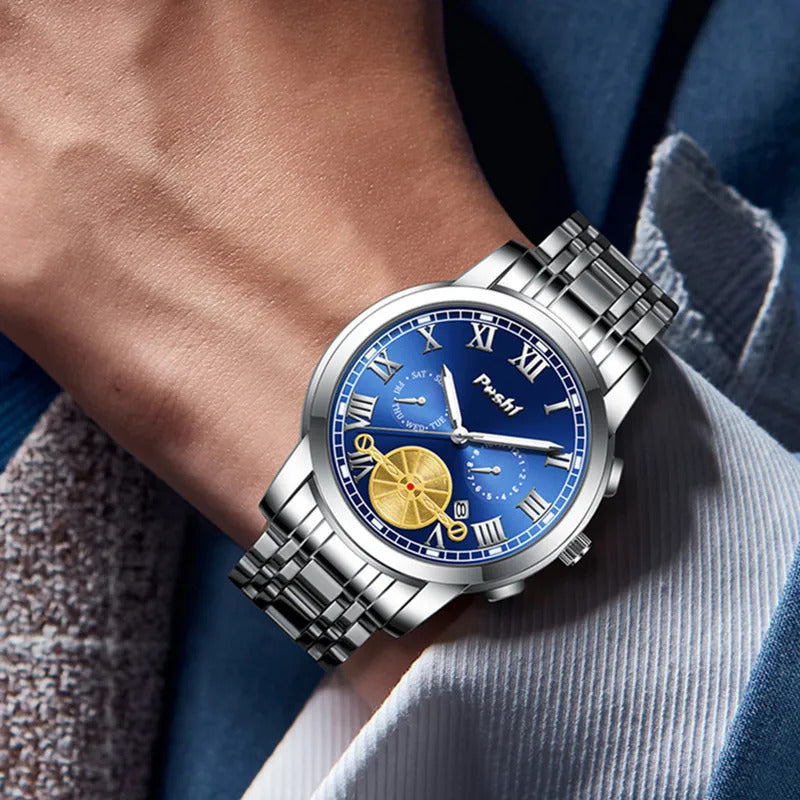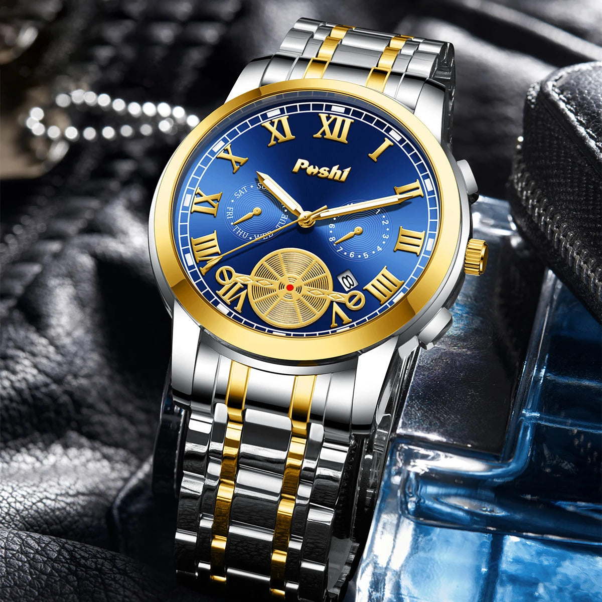 手表男手表男POSHI Men's Watch for Man Quartz Watches Male Wristwatch Luxury Waterproof Men Alloy Strap Date Business Clock