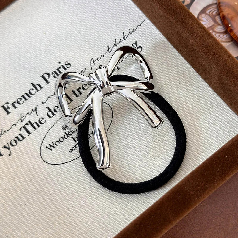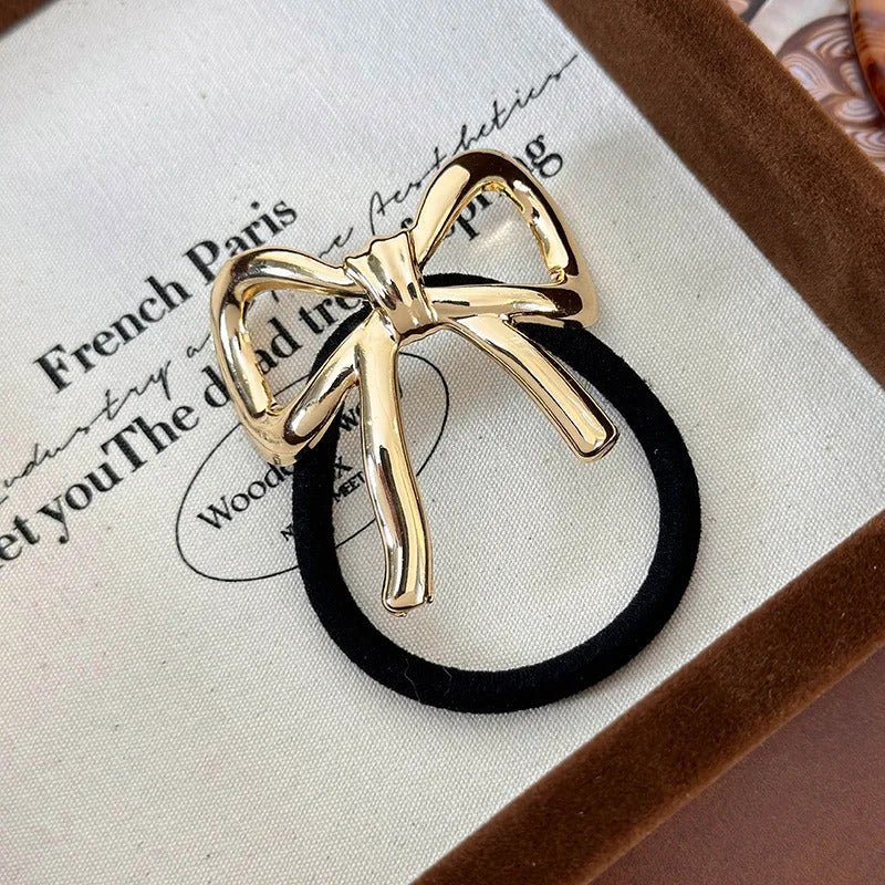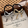 发饰Retro Golden Silver Bow Hair Rope Headband for Woman Girl Temperament Hair Tie Black Rubber band Female Fashion Hair Accessories