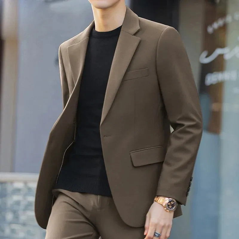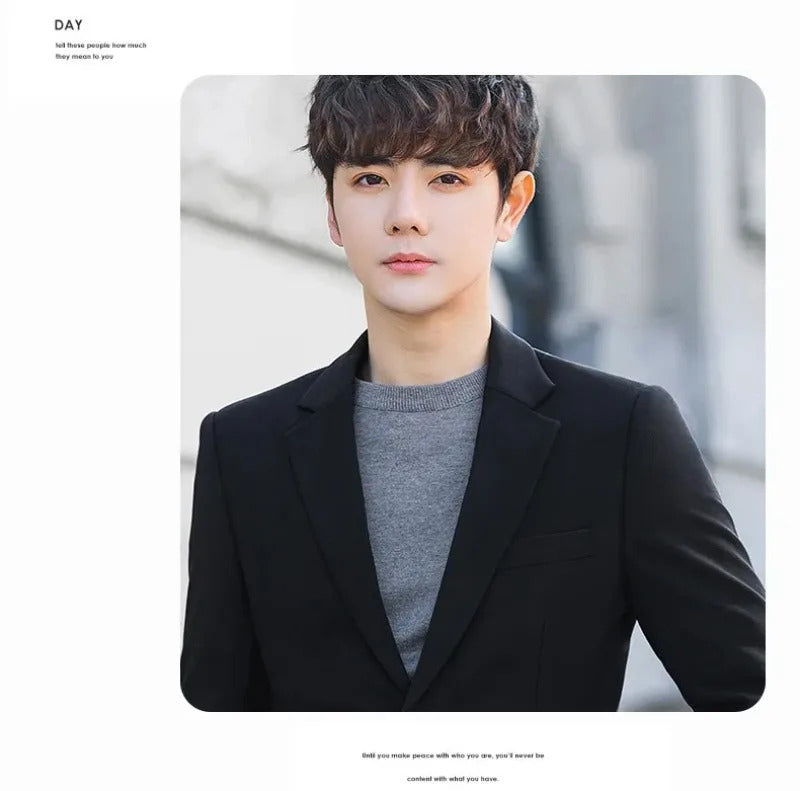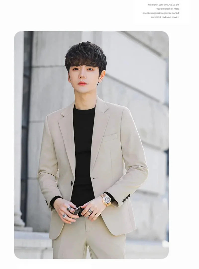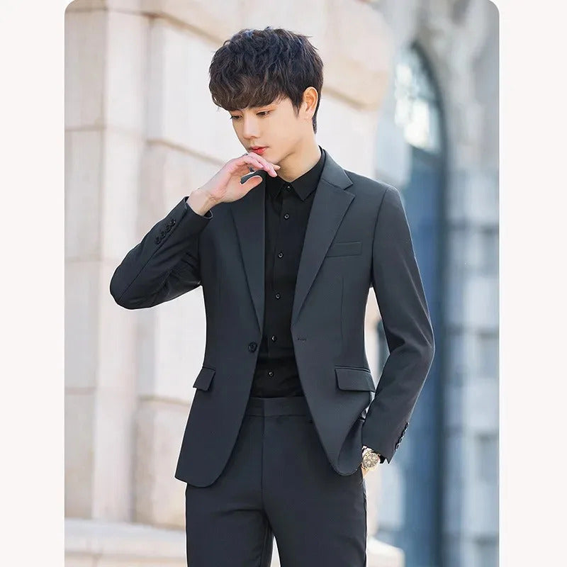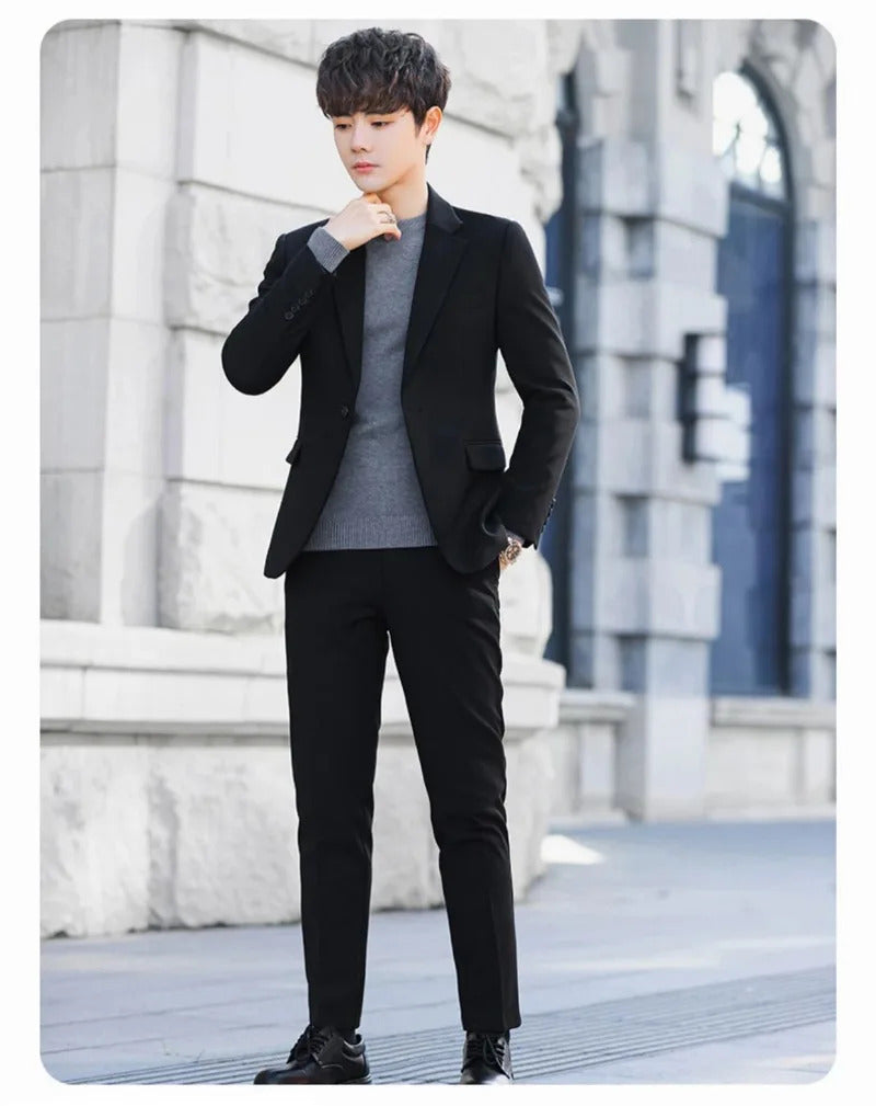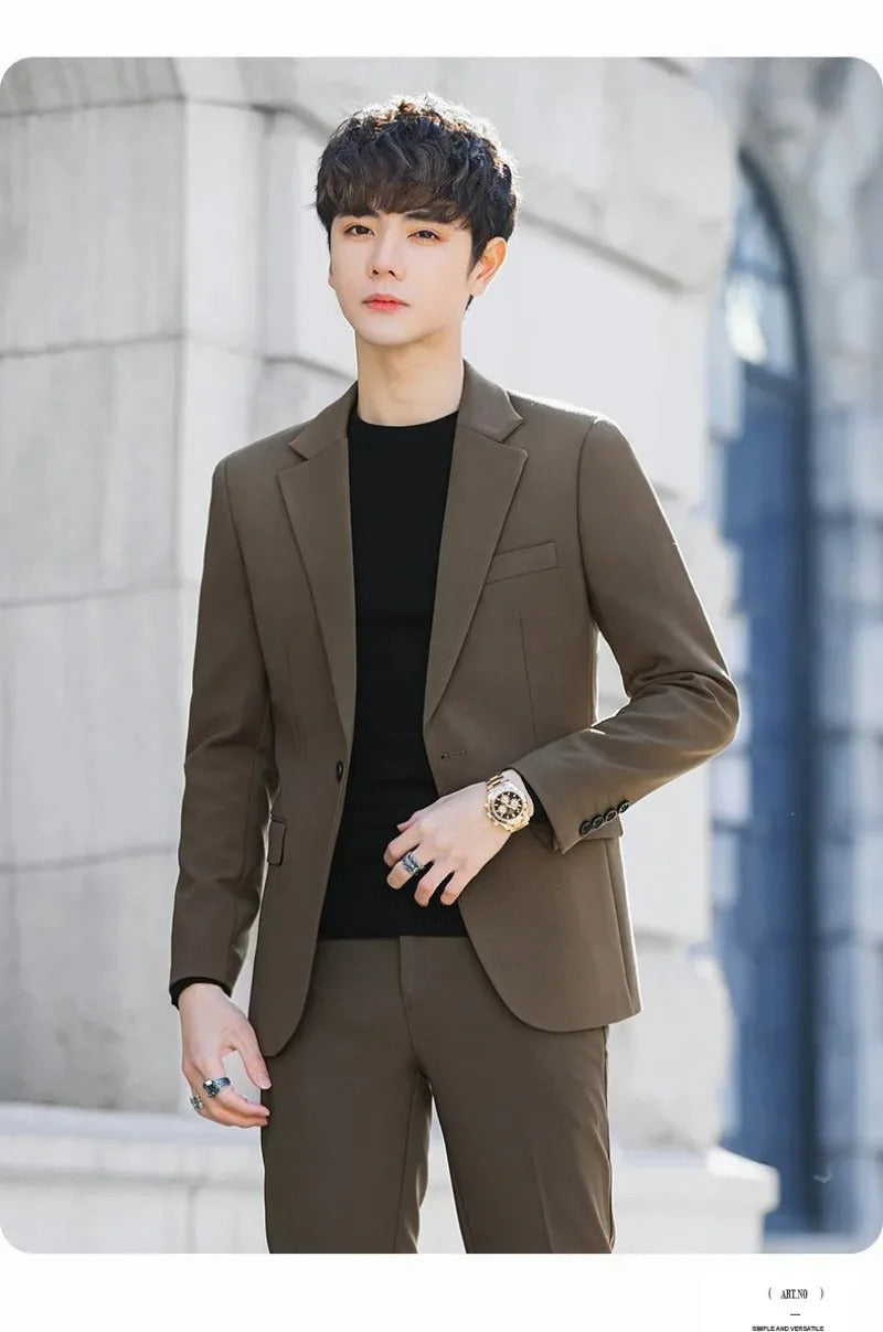 商务装男S-6XL Men's Business Casual Suit Korean Style Trendy Slim Fit 2 Piece Set Solid Color (Blazer+ Pants )Groom Wedding Dress Party