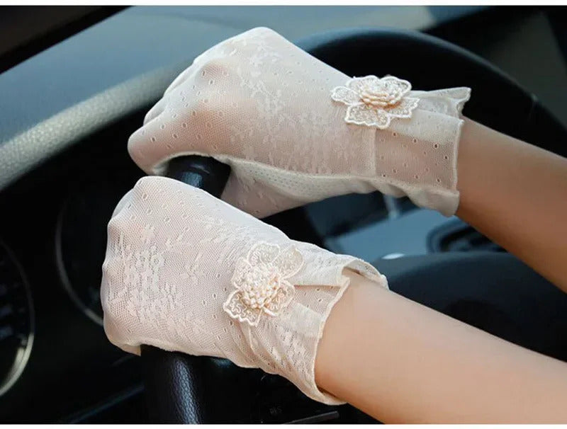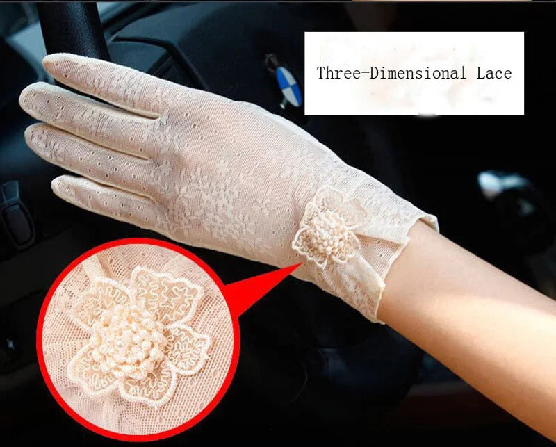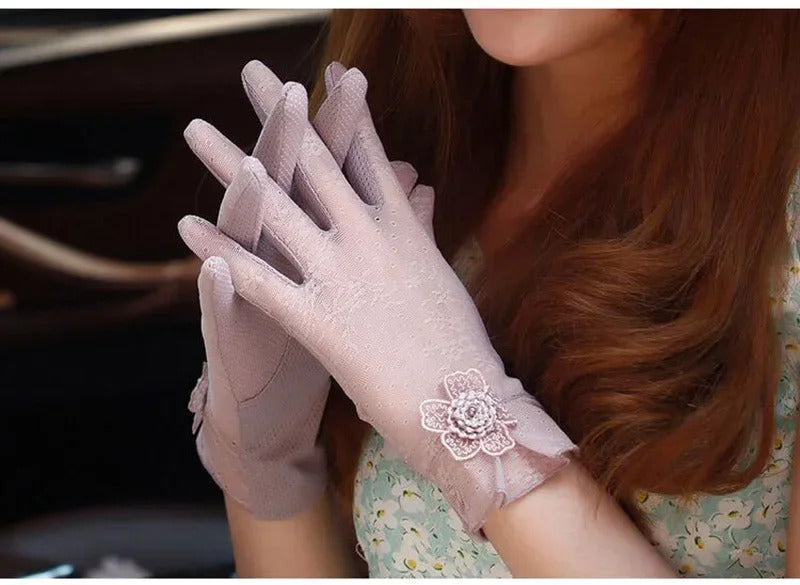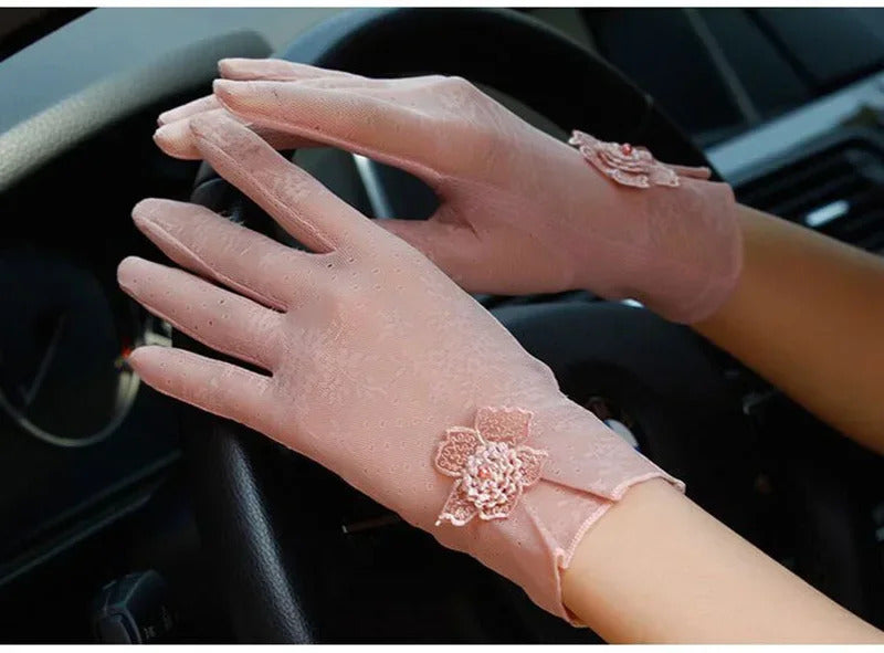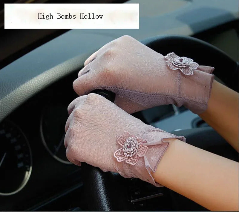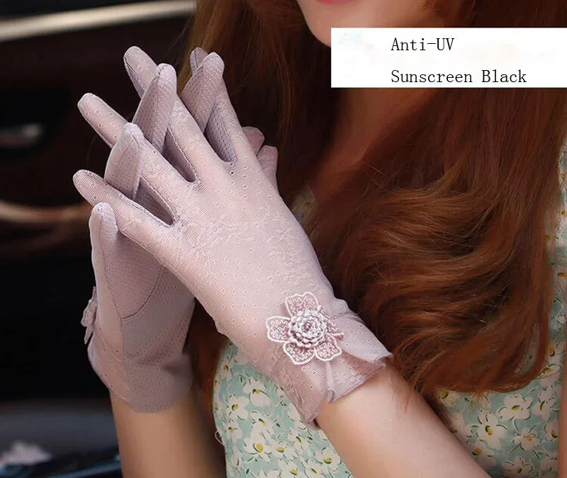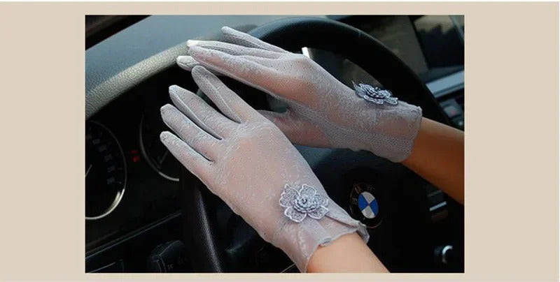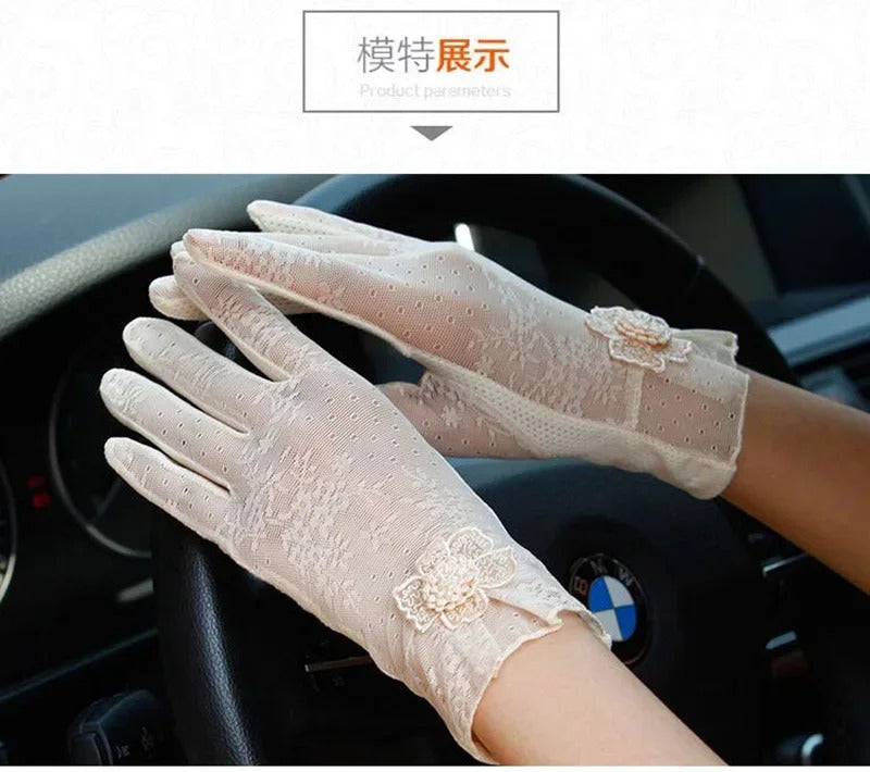 防晒手套女Sexy Spring Summer Female UV Sunscreen Short Sun Touch Screen Gloves Fashion Women Thin Ice Silk Lace Flower Driving Gloves 03