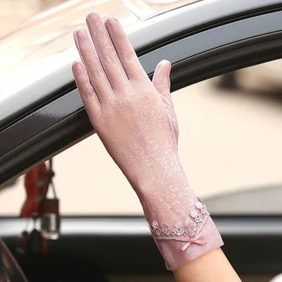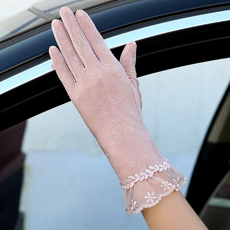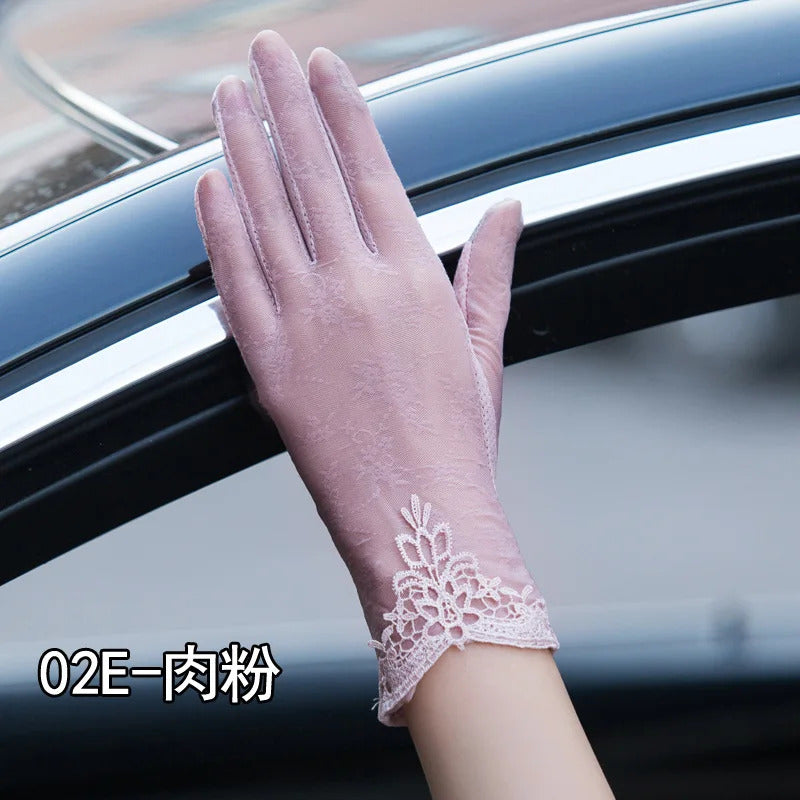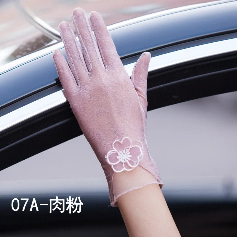 防晒手套女Sexy Spring Summer Women Autumn UV Sunscreen Short Sun Gloves Fashion Ice Silk Lace Driving Of Thin Touch Screen Gloves G07A