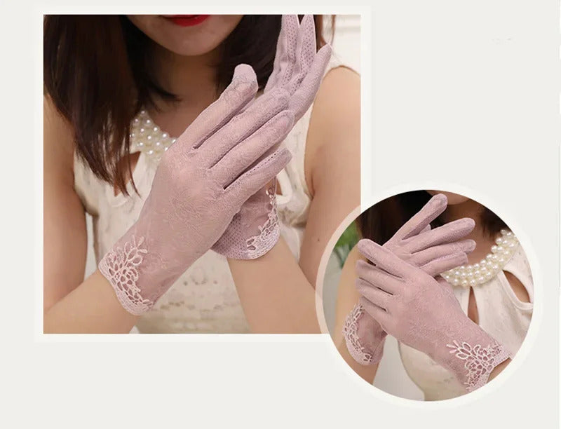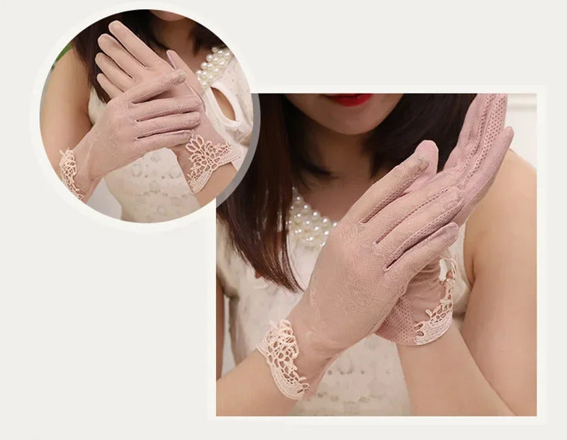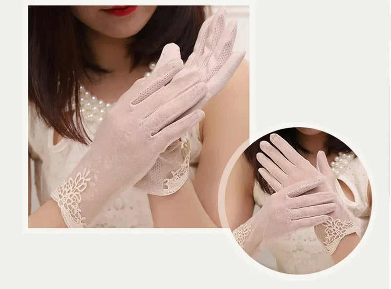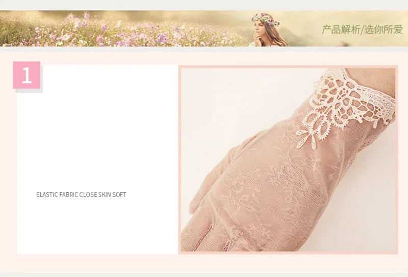 防晒手套女Sexy Summer Women UV Sunscreen Short Sun Female Breathable Gloves Fashion Ice Silk Lace Driving Of Thin Touch Screen Lady Gloves