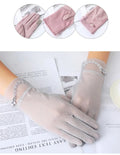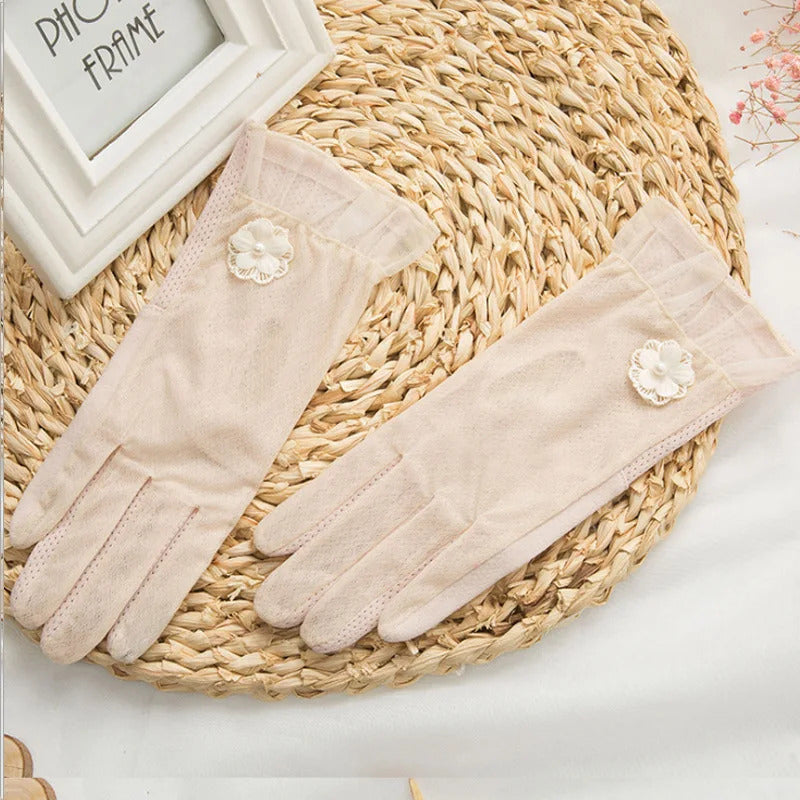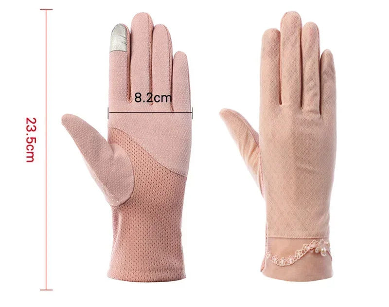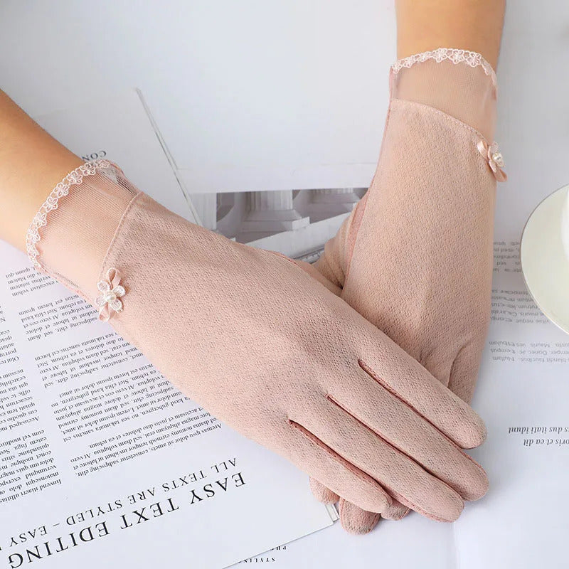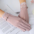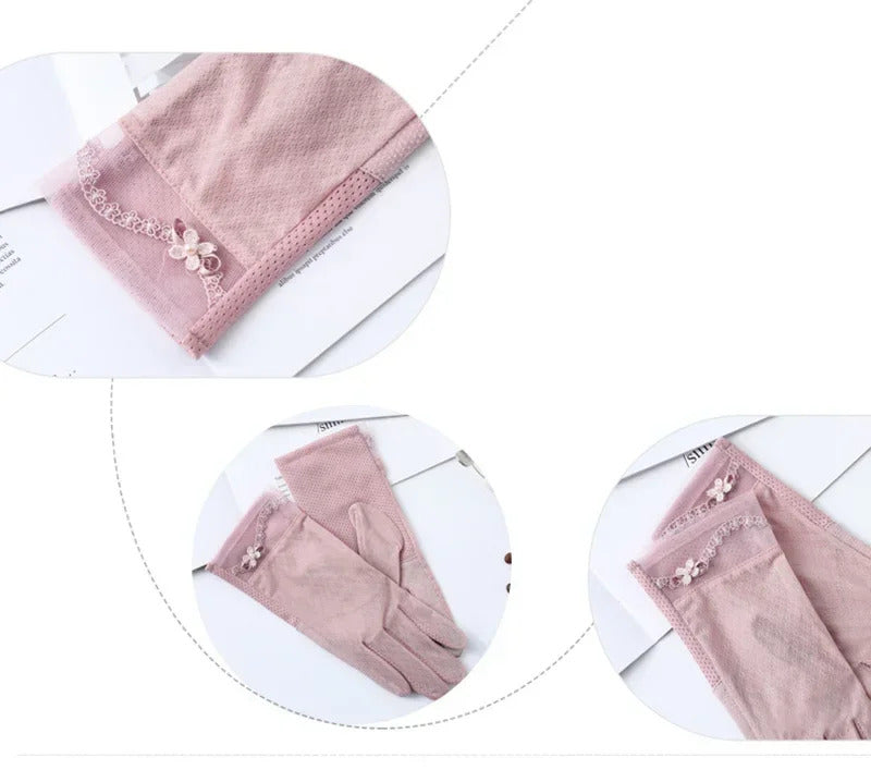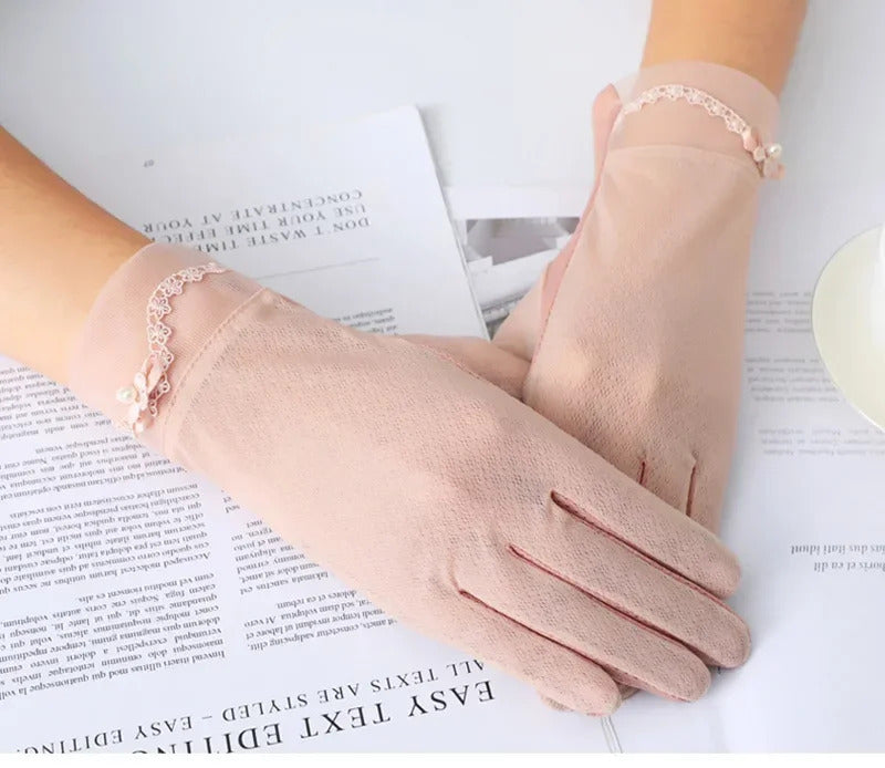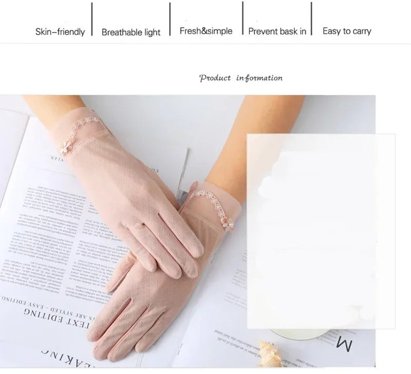 防晒手套女Sexy Summer Women UV Sunscreen Short Sun Screen Pearl Flowers Gloves Thin Ice Silk Lace Touch Screen Viscose Driving Gloves J53