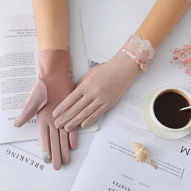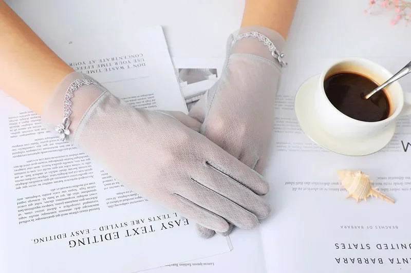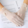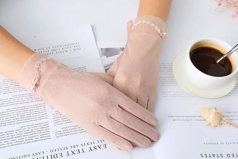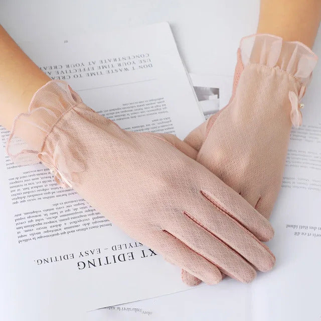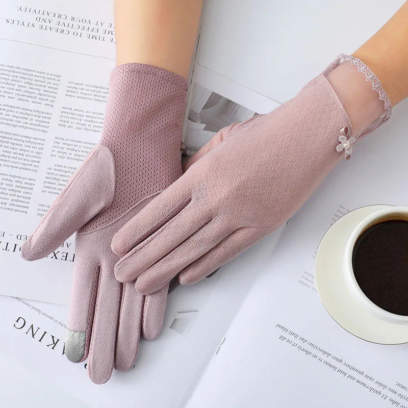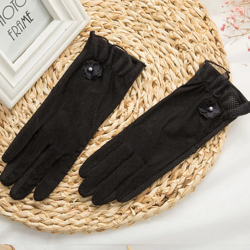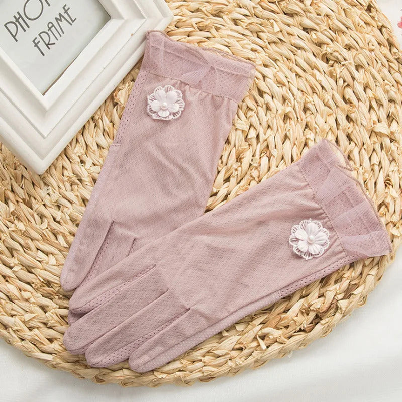 防晒手套女Sexy Summer Women UV Sunscreen Short Sun Screen Pearl Flowers Gloves Thin Ice Silk Lace Touch Screen Viscose Driving Gloves J53