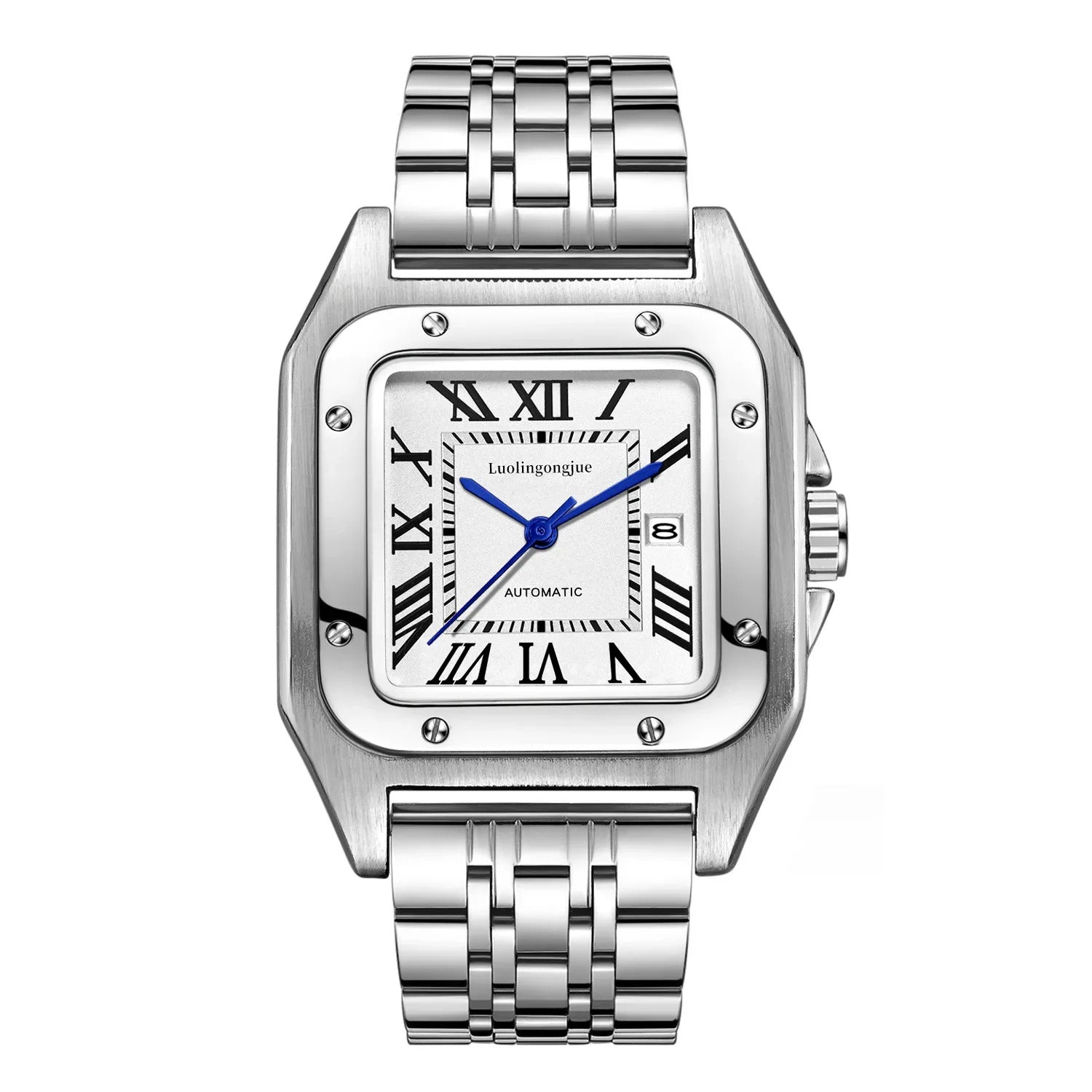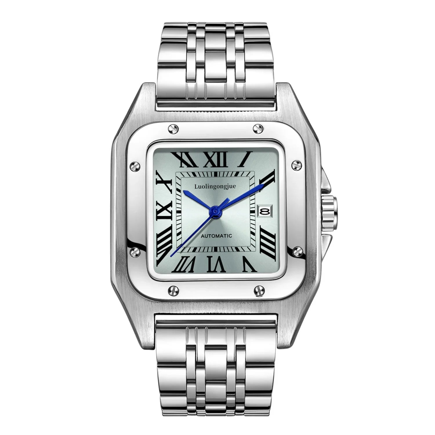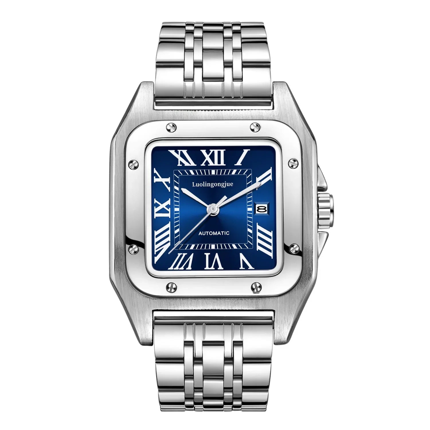 手表男Shandu Mechanical Wristwatch Solid Stainless Steel Strap Lorelei Prince Blue Needle Butterfly Buckle Business Style Live Sales