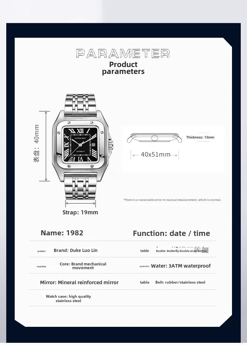 • Solid Fine Steel Material :Crafted from solid fine steel, this mechanical watch offers a robust and durable frame that ensures long-lasting performance and longevity.