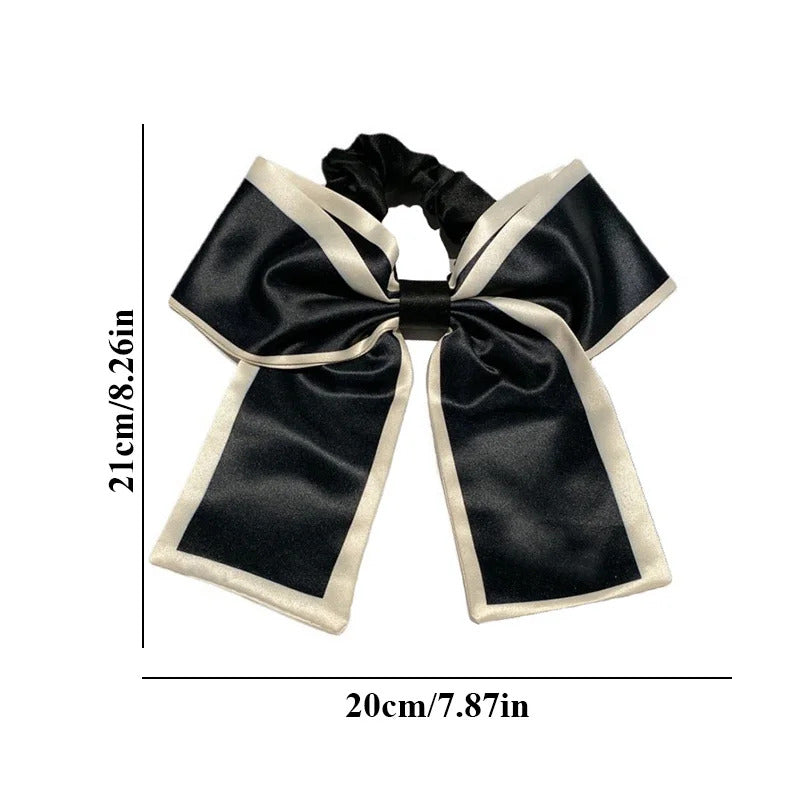 Specifications:Material: SatinGender: WomenType: Large Bow Hair Bands, Streamers Hair Tie, Ponytail HolderDesign and Style: Elegant Satin Ribbon with French Hair RopeUsage and Purpose: Versatile for Daily, Dance, Office, and Party WearApplicable Season: Suitable for All SeasonsSize: Approximately 21*20cmFeatures:|Pitney Bow Shipping Review|Thin Hair Scrunchies|**Elegant Design and Versatile Use**The Silk Large Bow Hair Bands are not just hair accessories; they are a statement of style and elegance. Crafted from premium satin, these hair ties offer a luxurious feel and a smooth finish that glides through your hair without snagging. The French-inspired design with a large bow and satin ribbon adds a touch of sophistication to any hairstyle, making it perfect for various occasions, from casual outings to formal events.**Durable and Comfortable**Designed for longevity and comfort, these hair ties are made to withstand the rigors of daily wear. The elasticity ensures a snug fit without causing discomfort, making them suitable for all hair types, including thin hair. The silk material is gentle on your hair, reducing the risk of breakage and damage, while the durable construction means you can enjoy your hairstyle for longer periods without the need for constant readjustment.**Adaptable and Fashionable**These hair ties are not just functional; they are also a fashion statement. Available in classic black and white, they are versatile enough to match any outfit or mood. Whether you're looking to achieve a braided bow hairstyle on black hair or simply want to add a touch of elegance to your ponytail, these hair ties are the perfect accessory. They are also a great gift for friends, family, or anyone who appreciates fashionable and functional hair accessories.