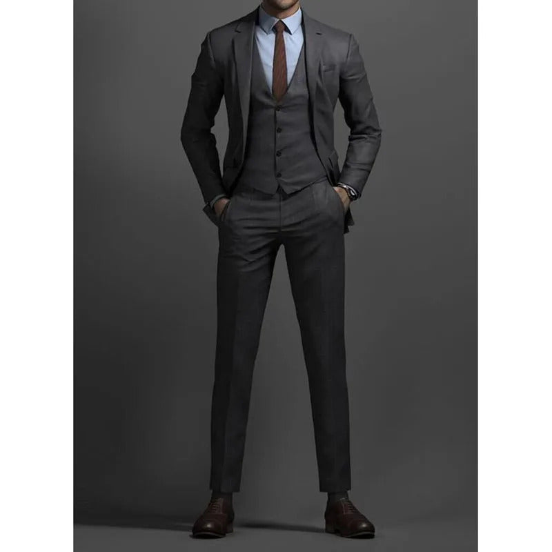 礼服男Slim Fit Dark Grey Suits for Men 3 Piece Single Breasted Notch Lapel Regular Length Full Sets Wedding Jacket Pants Vest Terno