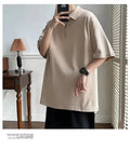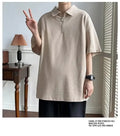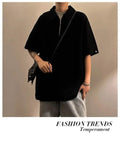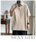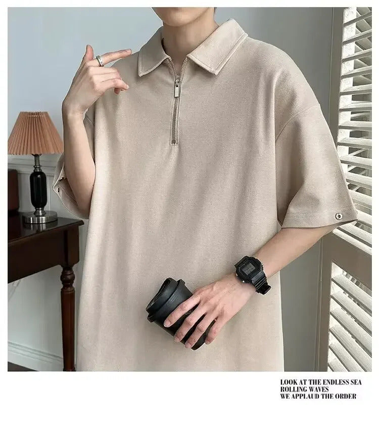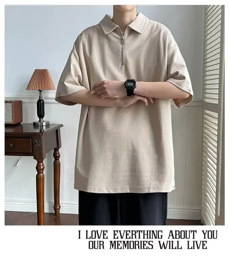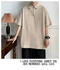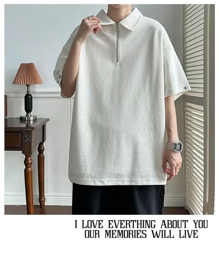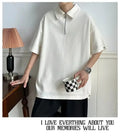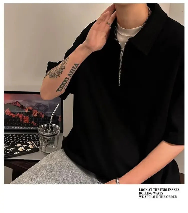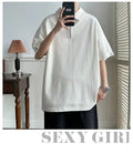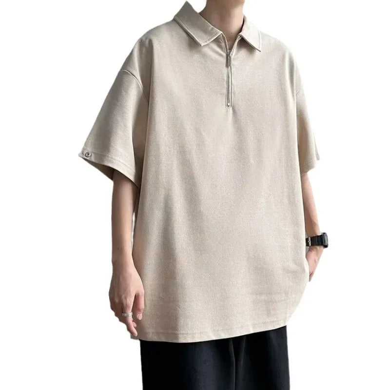POLO男Solid Color Half-Zip Polo Shirt Men's Casual Loose Fit Hip Hop Trendy Fashion Short Sleeve T-Shirt Base Layer Lapel Five Point T