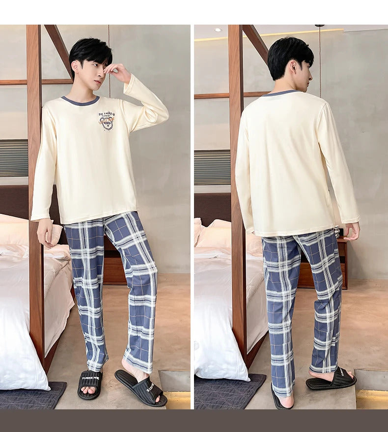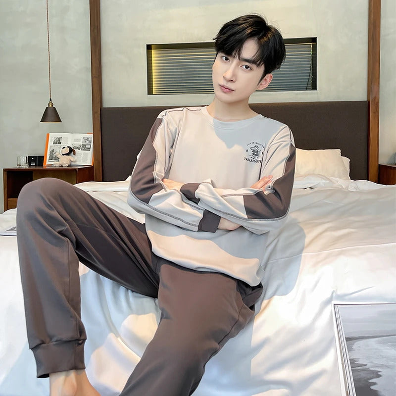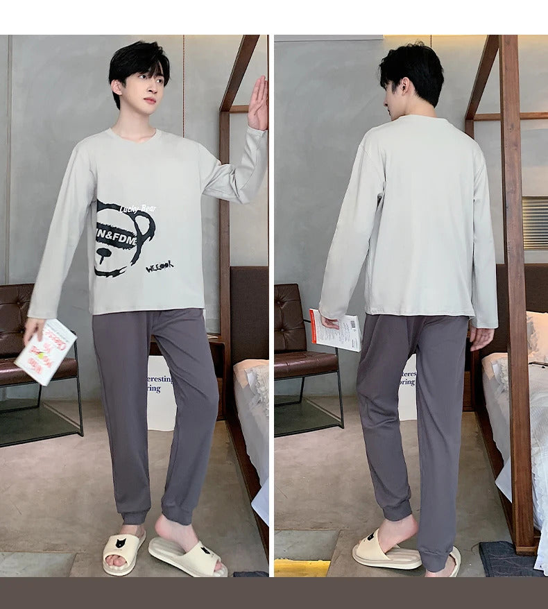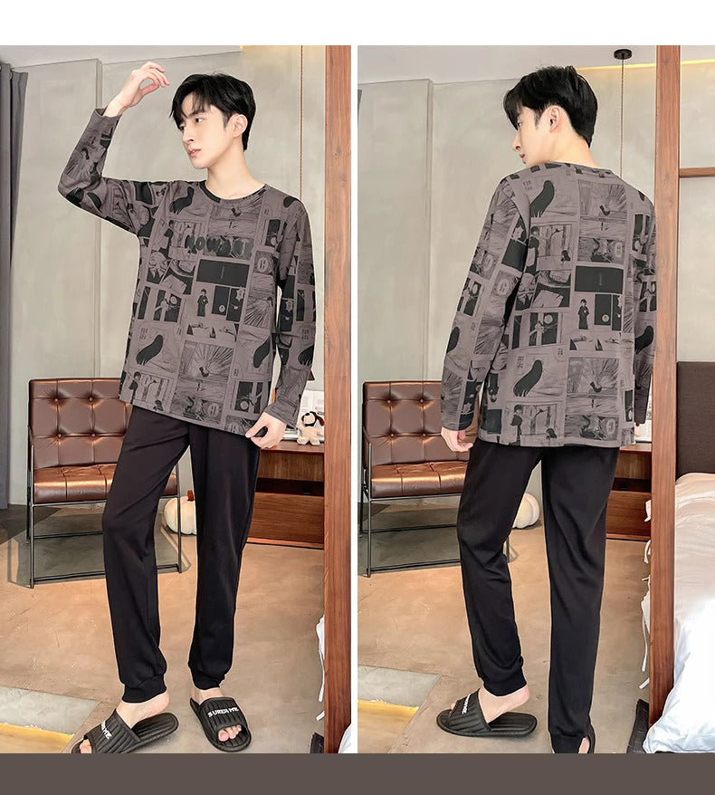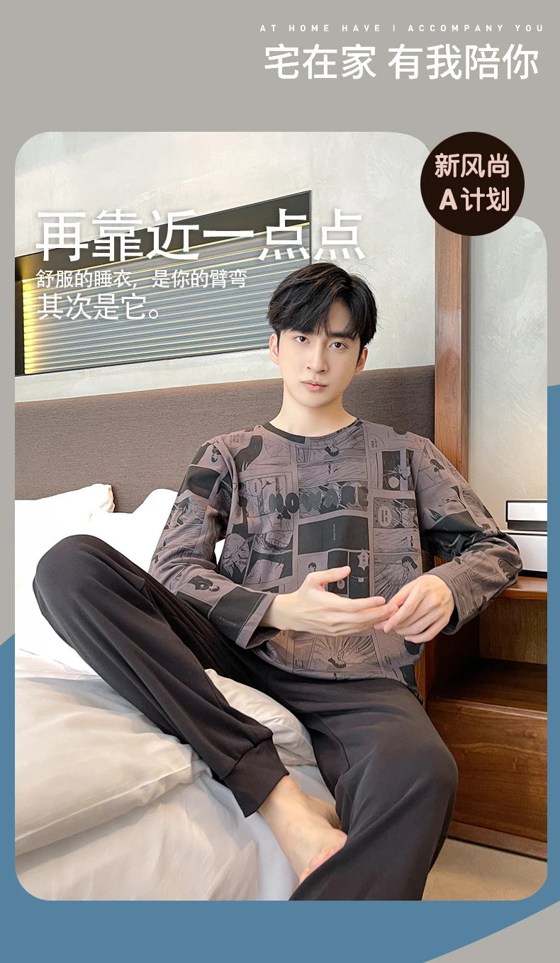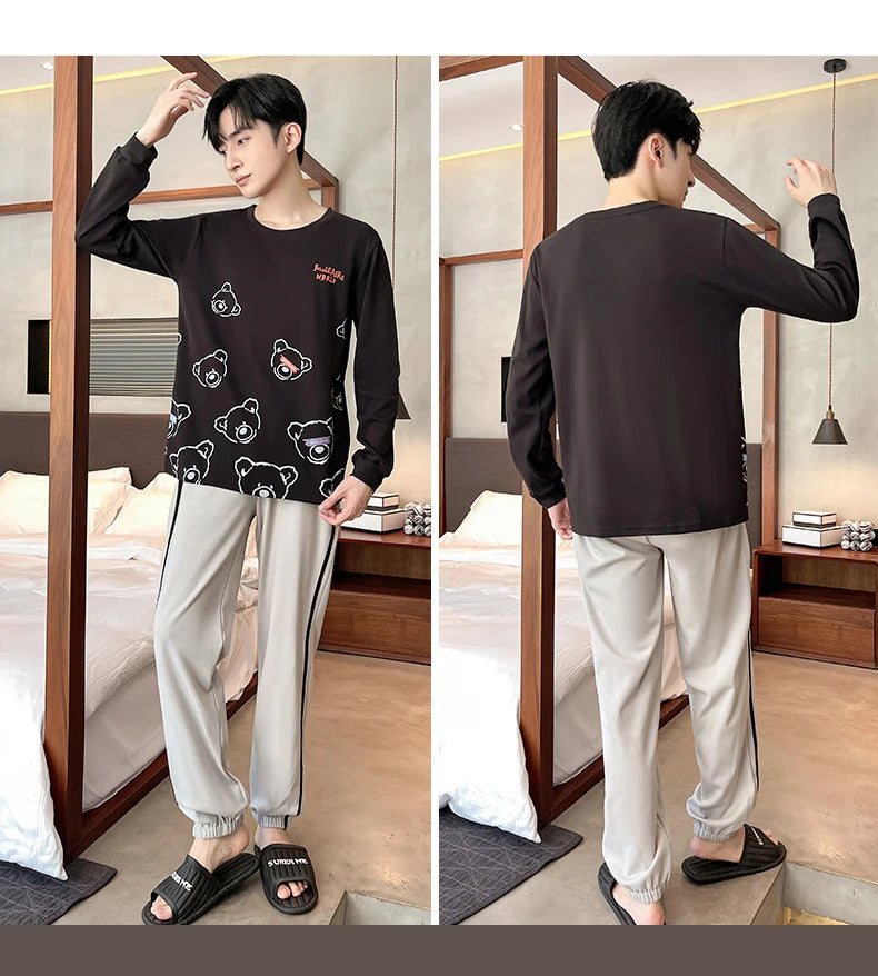 睡衣男Spring Autumn Mens Pajamas Letter Striped Casual Soft Sleepwear Cartoon Breath Pajama Sets Sleep&Lounge Pyjamas Comfort Homewear