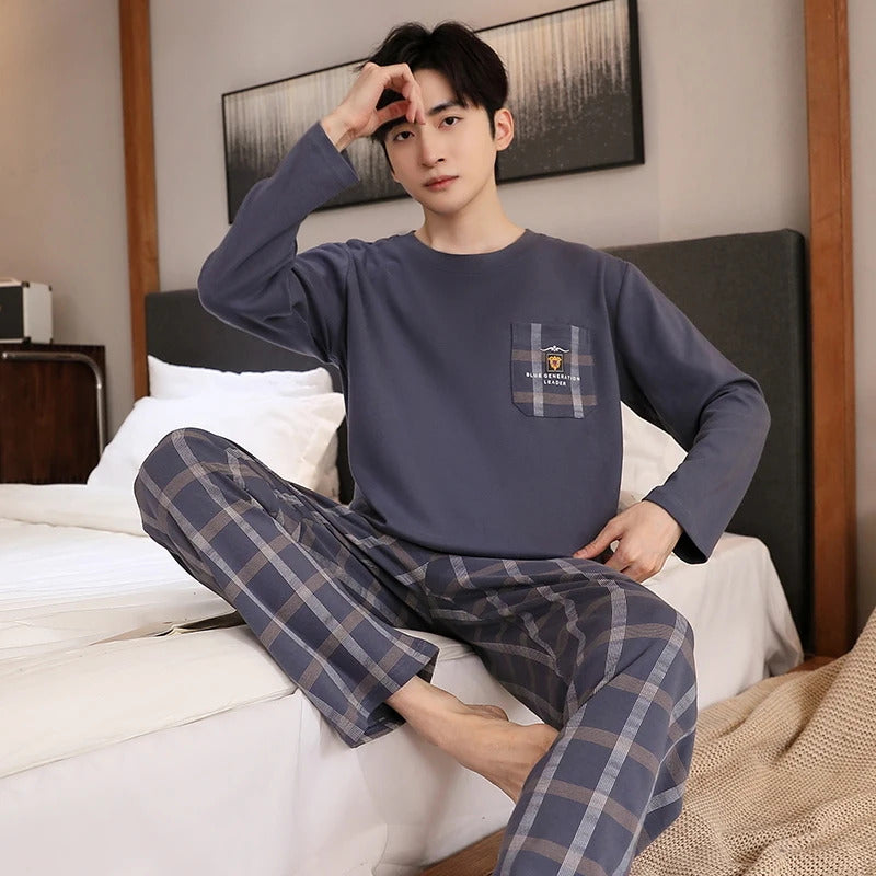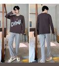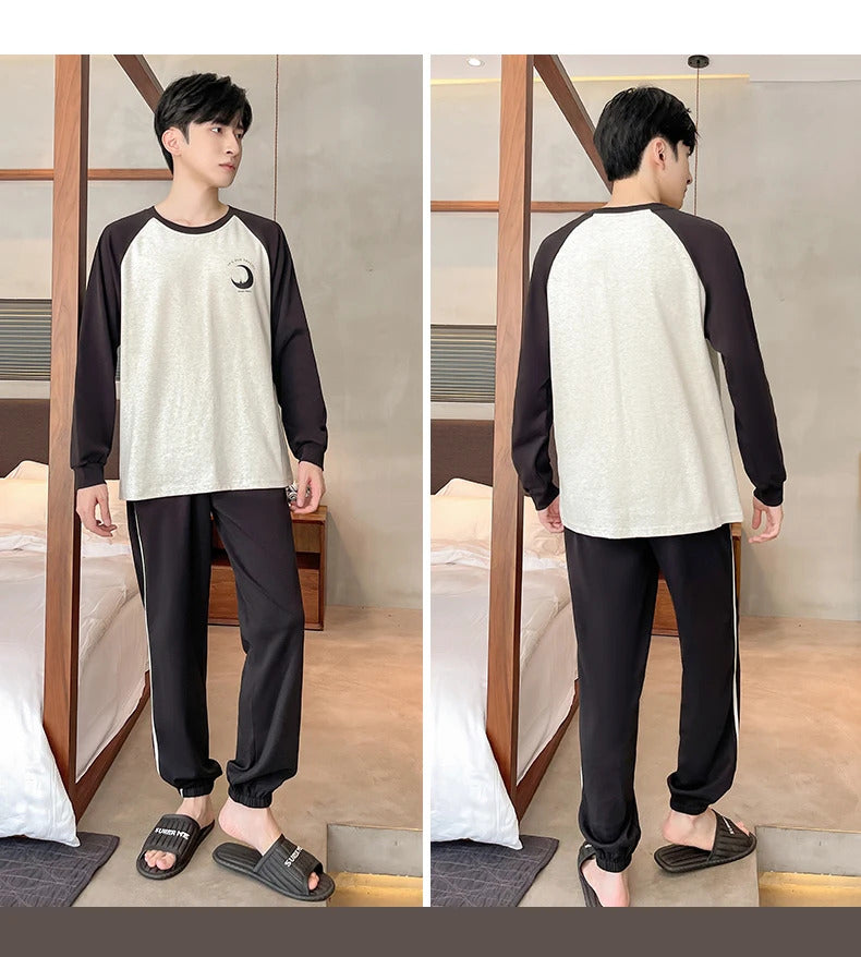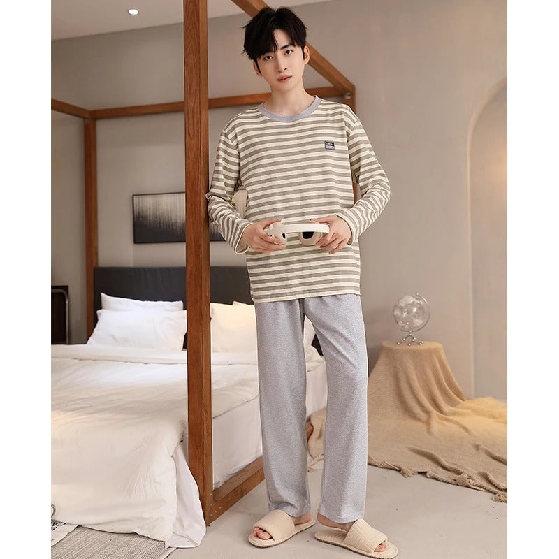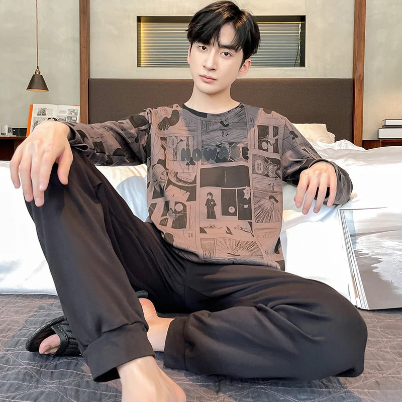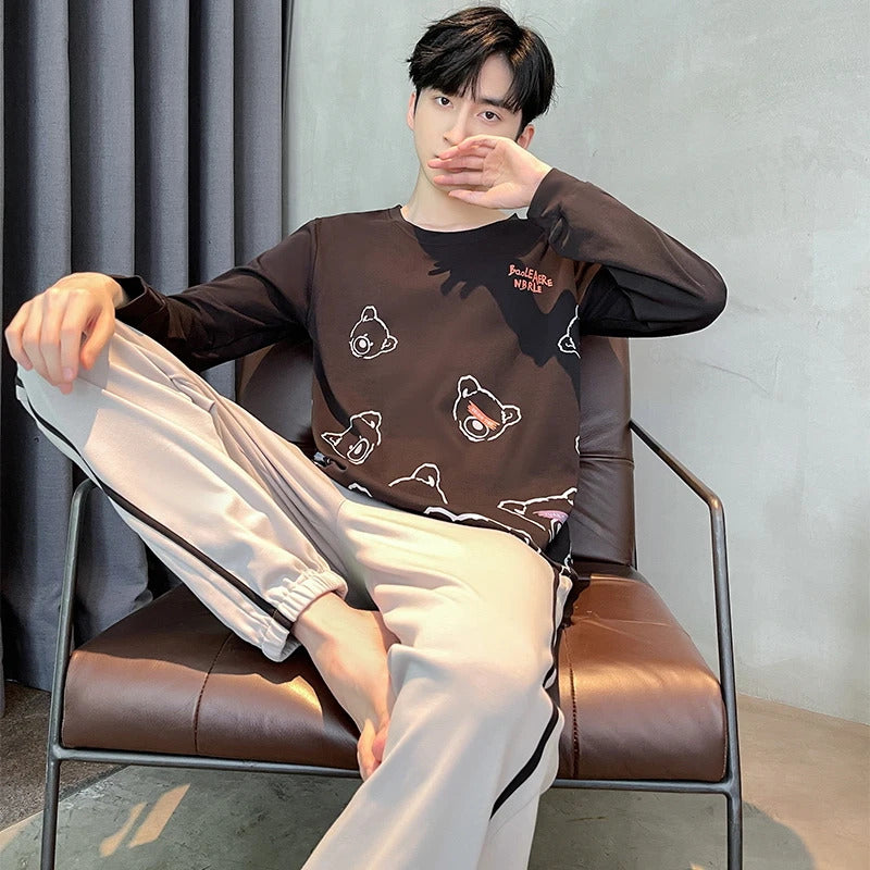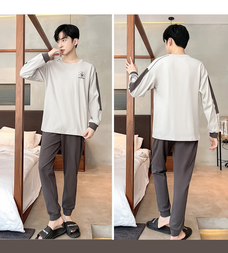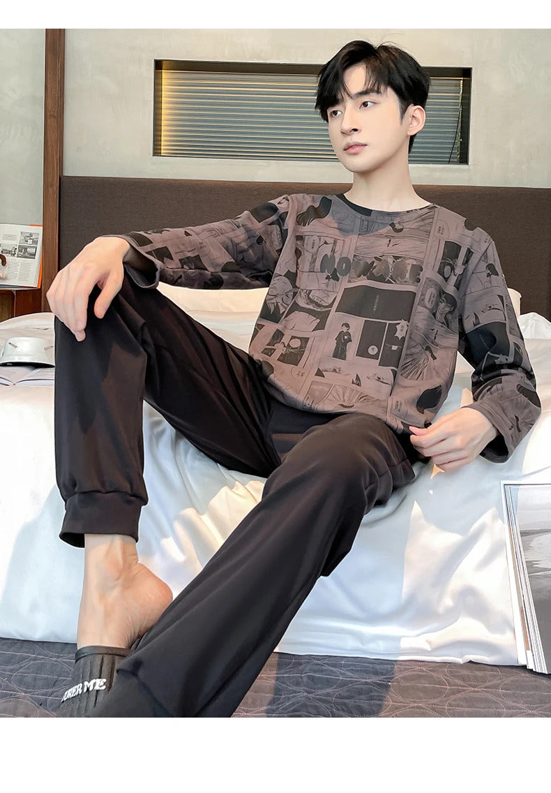 睡衣男Spring Autumn Mens Pajamas Letter Striped Casual Soft Sleepwear Cartoon Breath Pajama Sets Sleep&Lounge Pyjamas Comfort Homewear