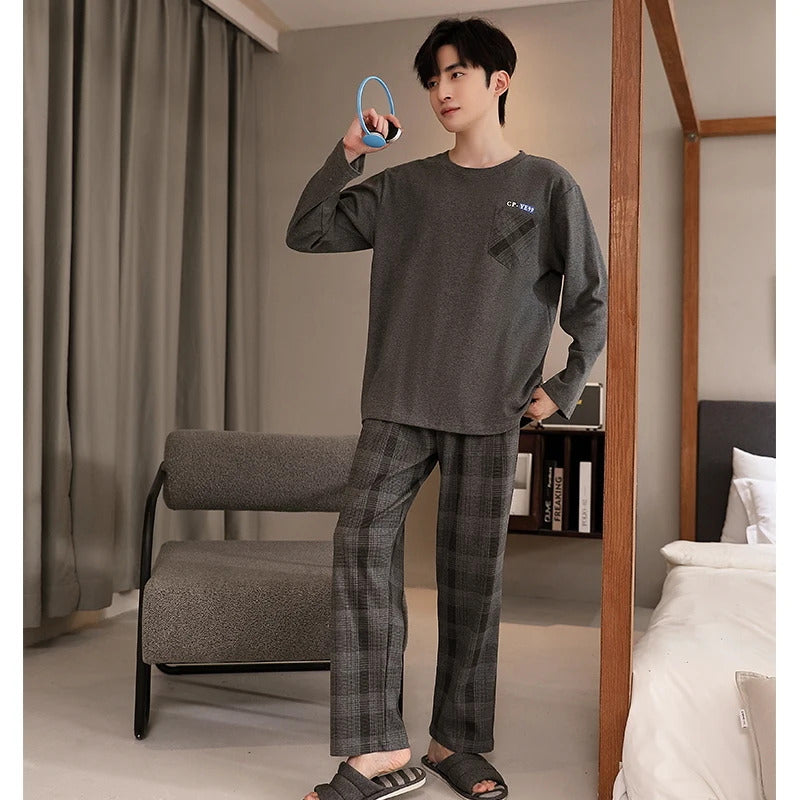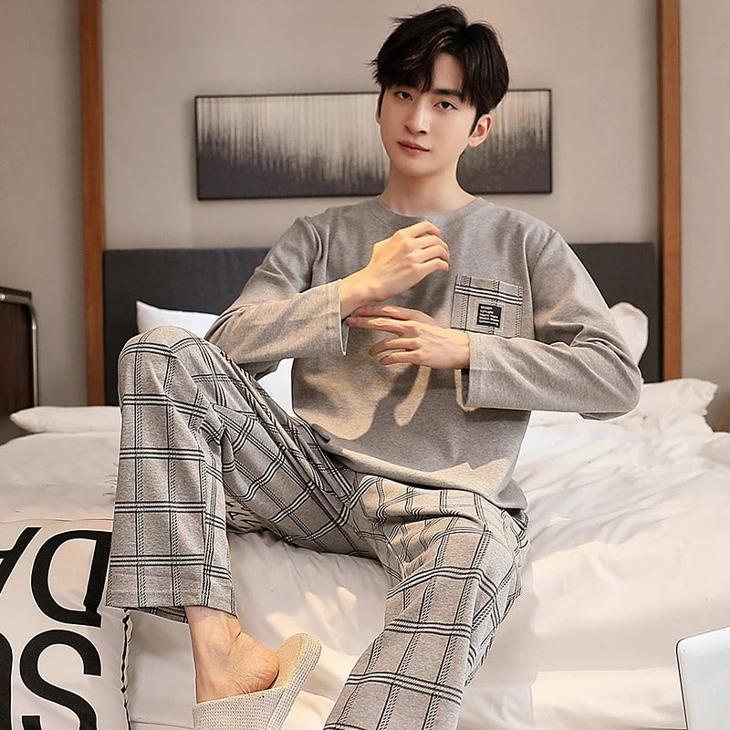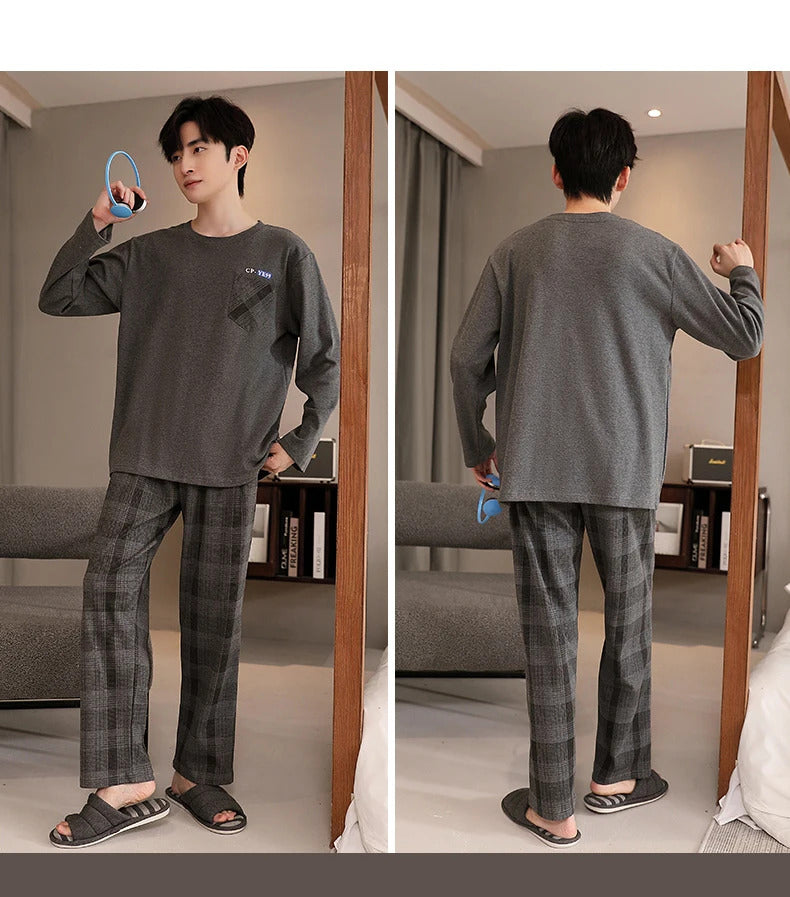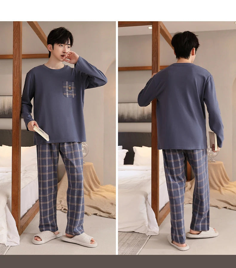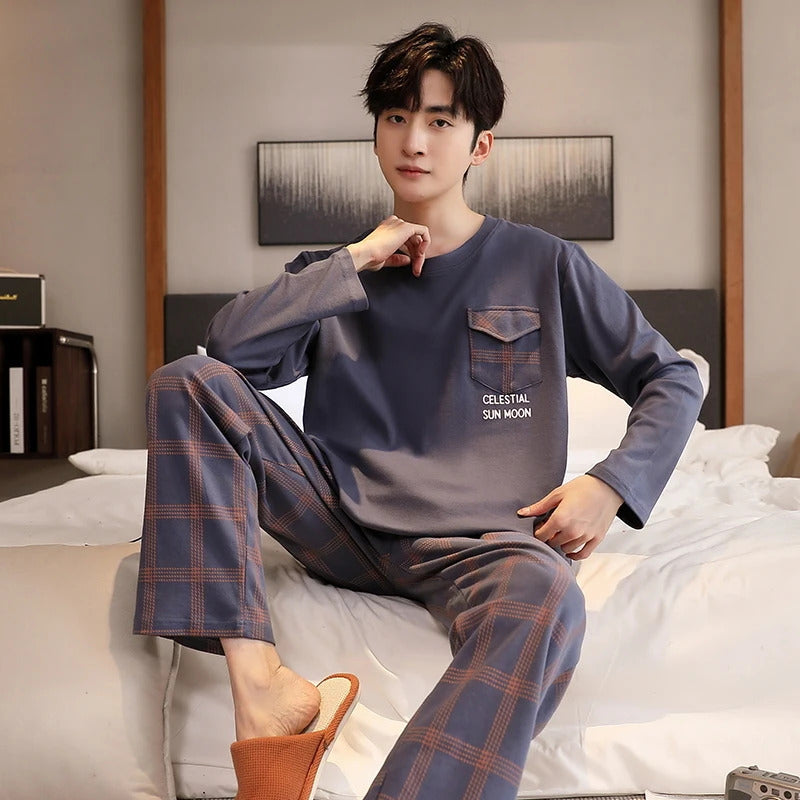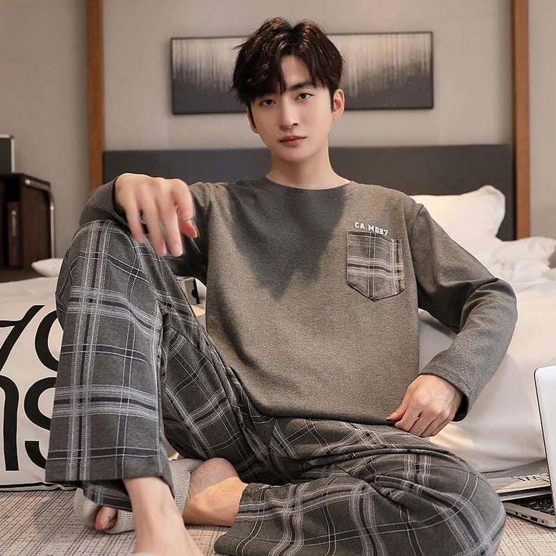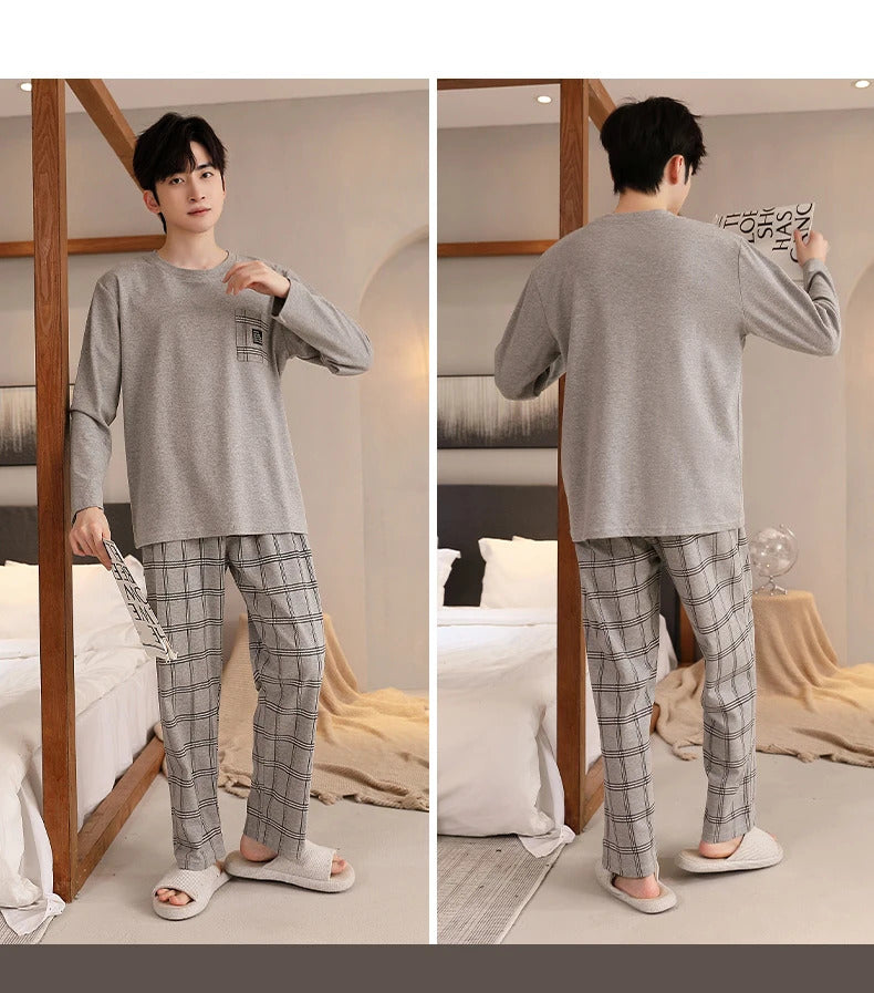 睡衣男Spring Autumn Mens Pajamas Letter Striped Casual Soft Sleepwear Cartoon Breath Pajama Sets Sleep&Lounge Pyjamas Comfort Homewear