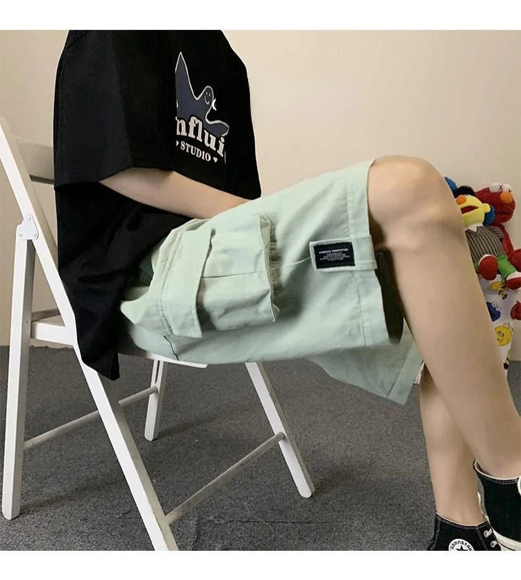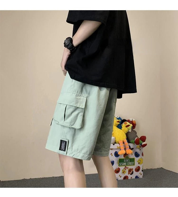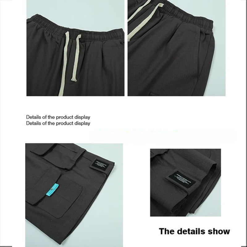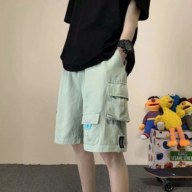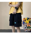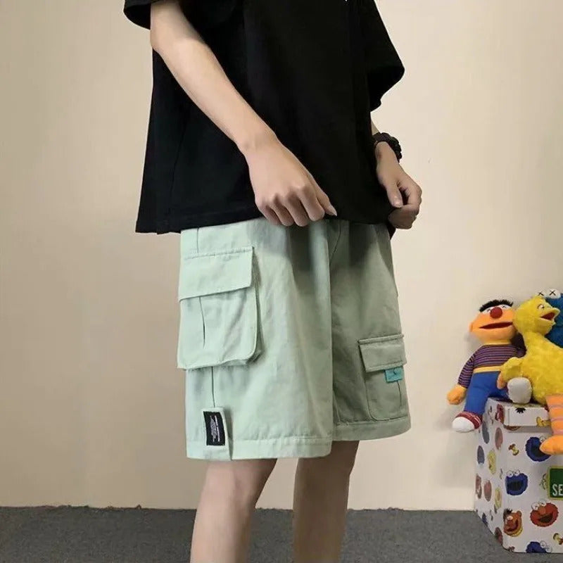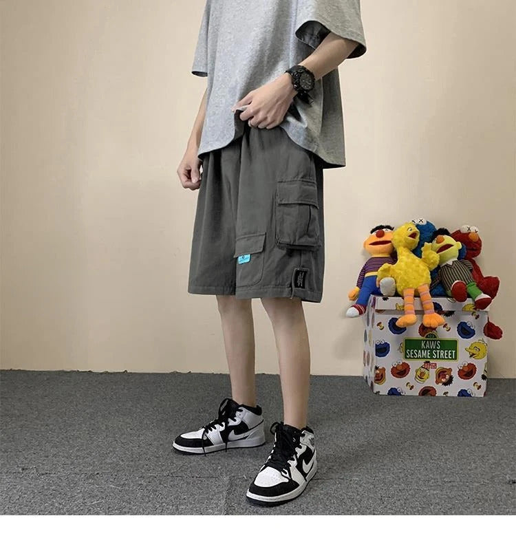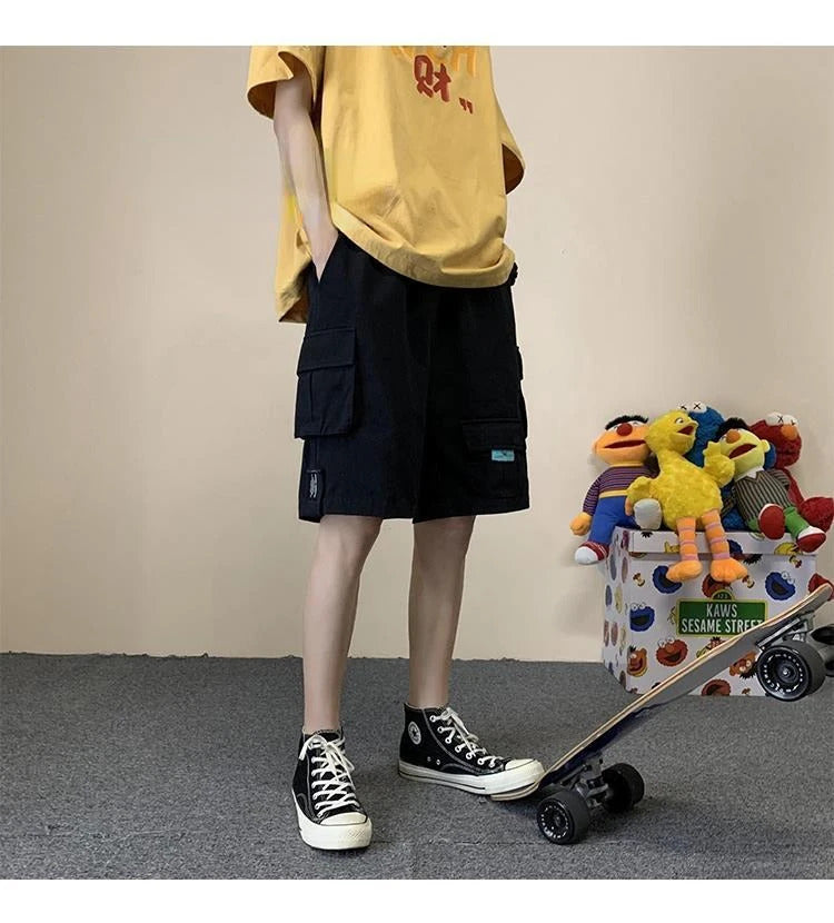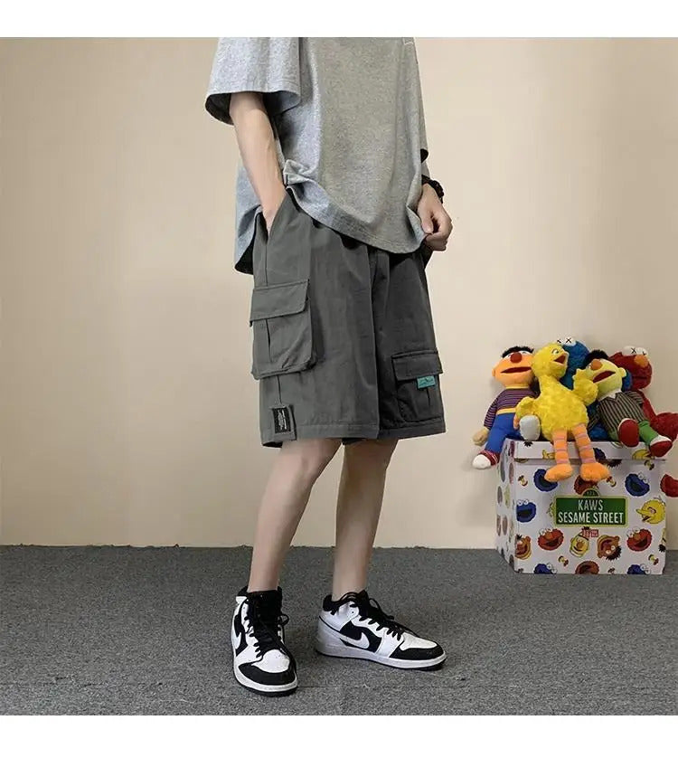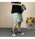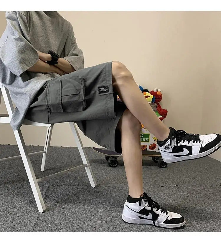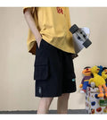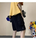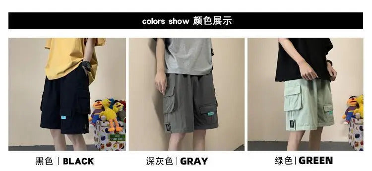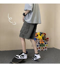 短裤男Streetwear Men Women Cargo Shorts American Casual Large Pockets BF Wide Leg Pants Five-points Loose-fit Drawstring Sweatpants