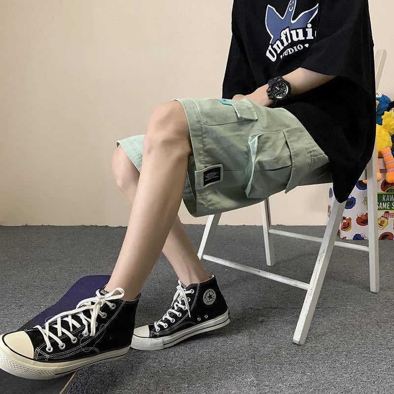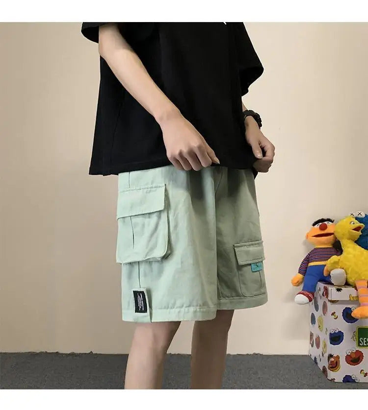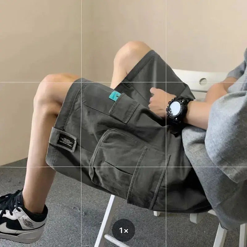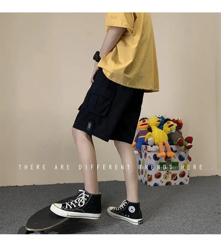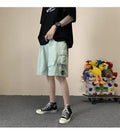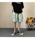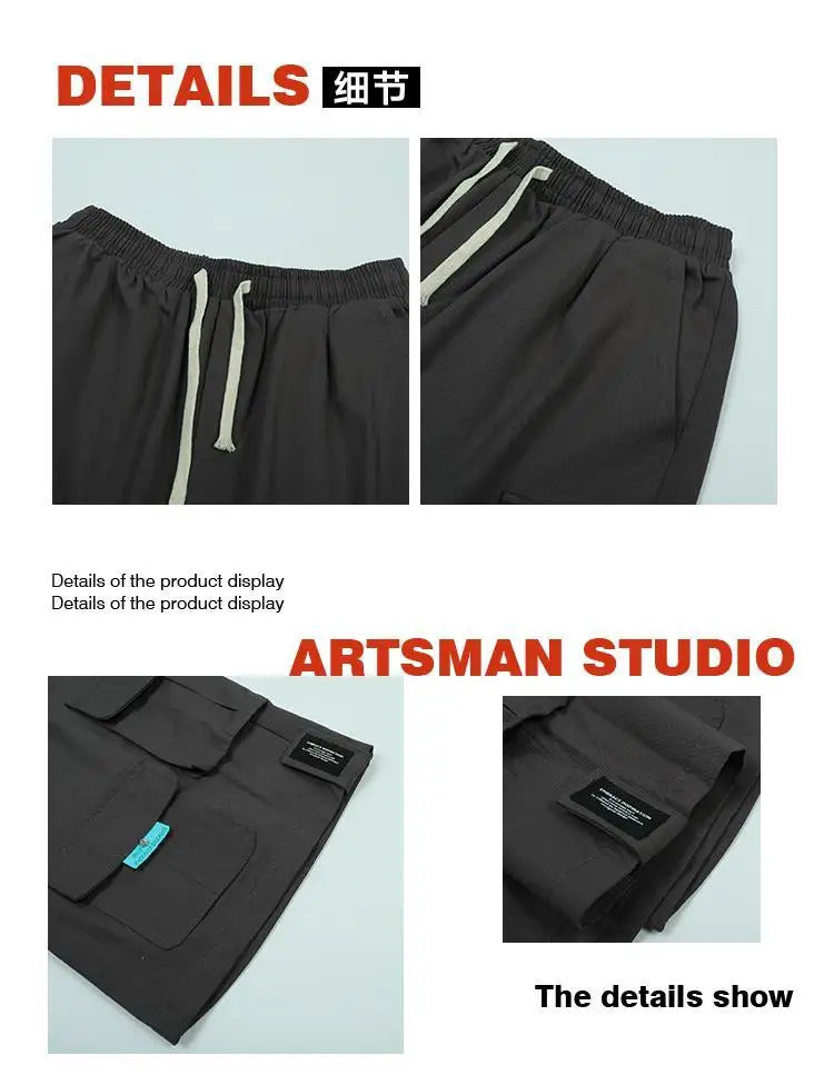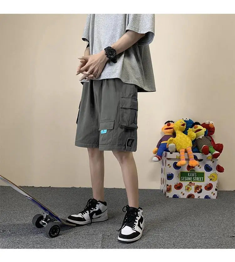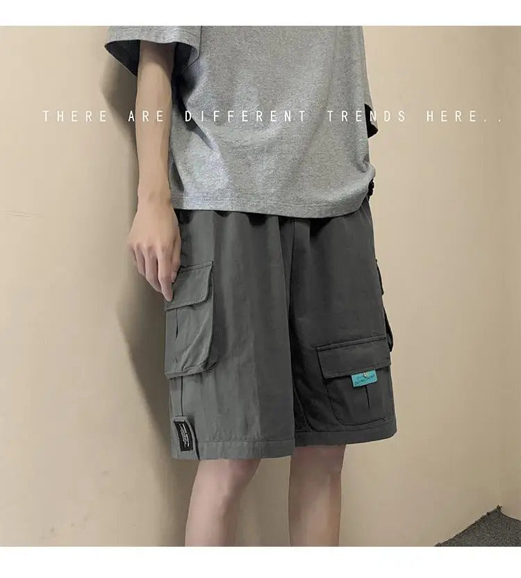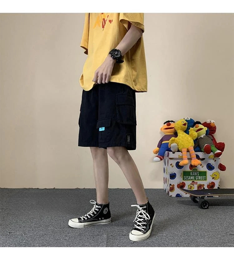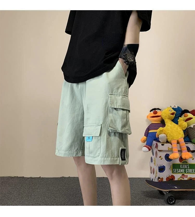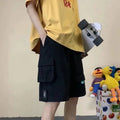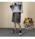 短裤男Streetwear Men Women Cargo Shorts American Casual Large Pockets BF Wide Leg Pants Five-points Loose-fit Drawstring Sweatpants