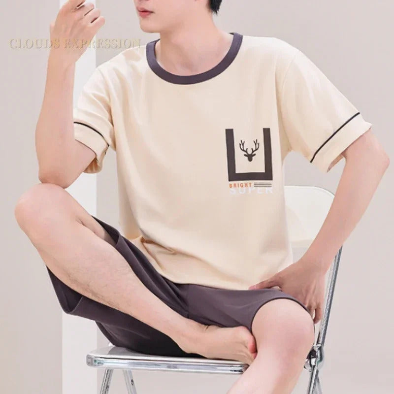 睡衣男Summer 4XL Knitted Cotton Short Sleeved Men's Pajamas Sets Male Pajama Set Plaid Pajama For Men Sleepwear Suit Homewear Size