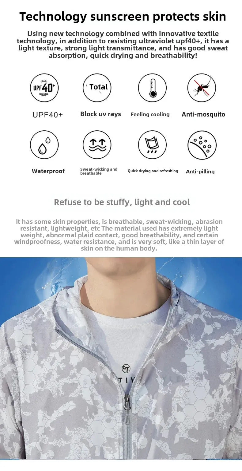 防晒衣男Summer Camouflage Sunscreen Vest Men's Thin Outdoor Travel Skinwear Ice Silk Sunscreen Clothes Couple's Matching Style