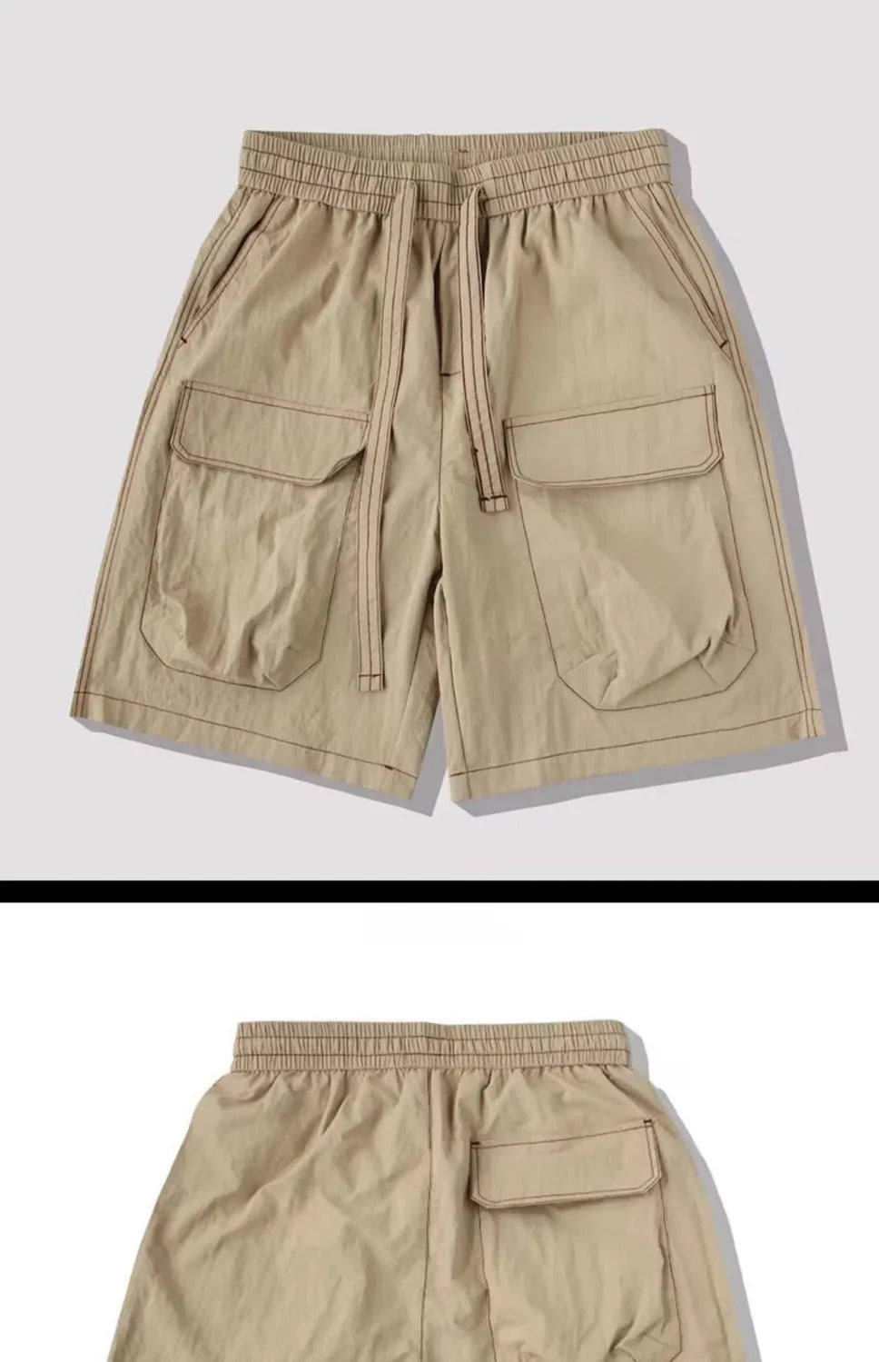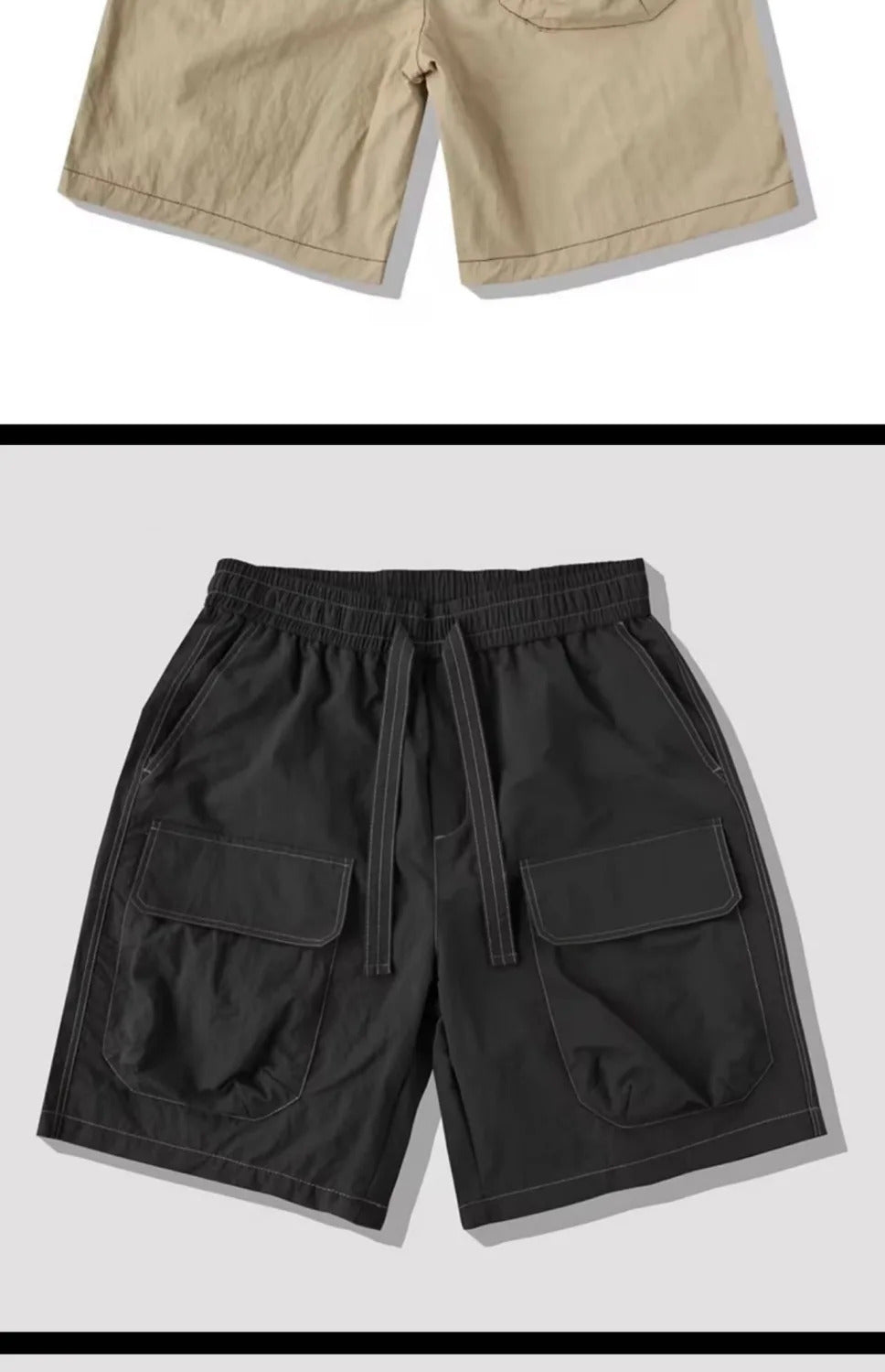 短裤男Summer Cargo Shorts Men Loose Casual Multi-Pocket Jogging Light Weight Thin Short Pants Drawstring Surfing Beach Sports Shorts