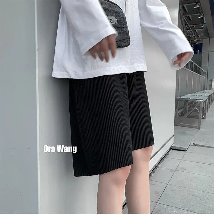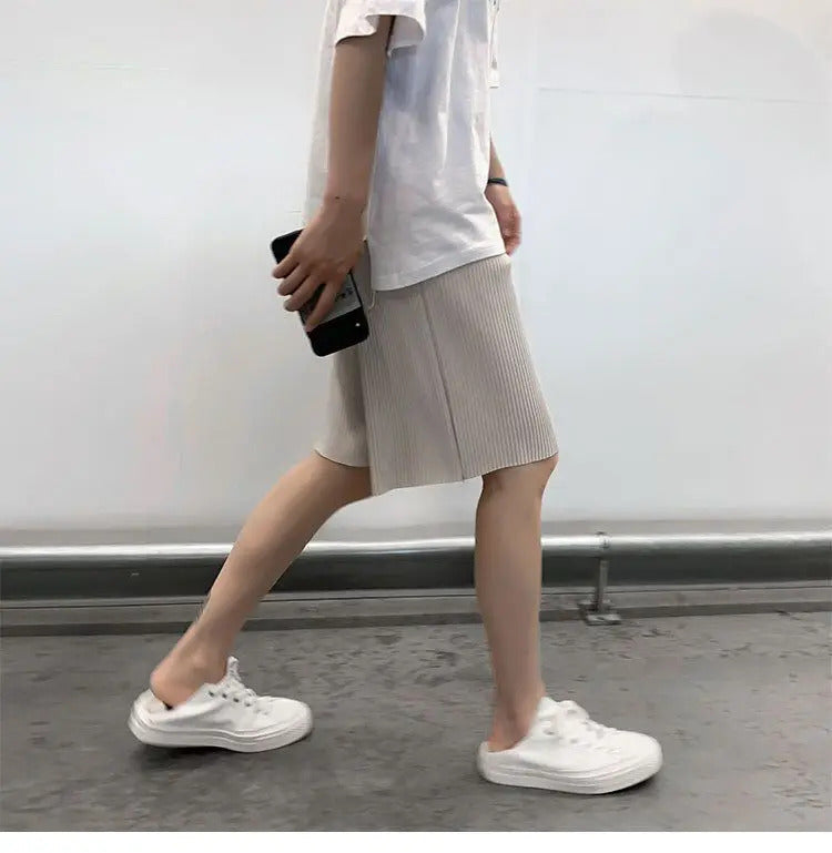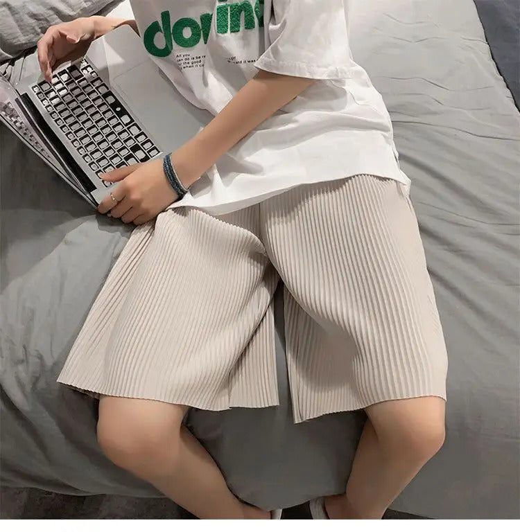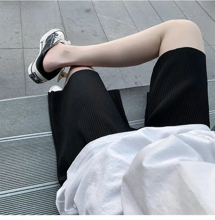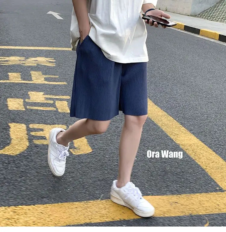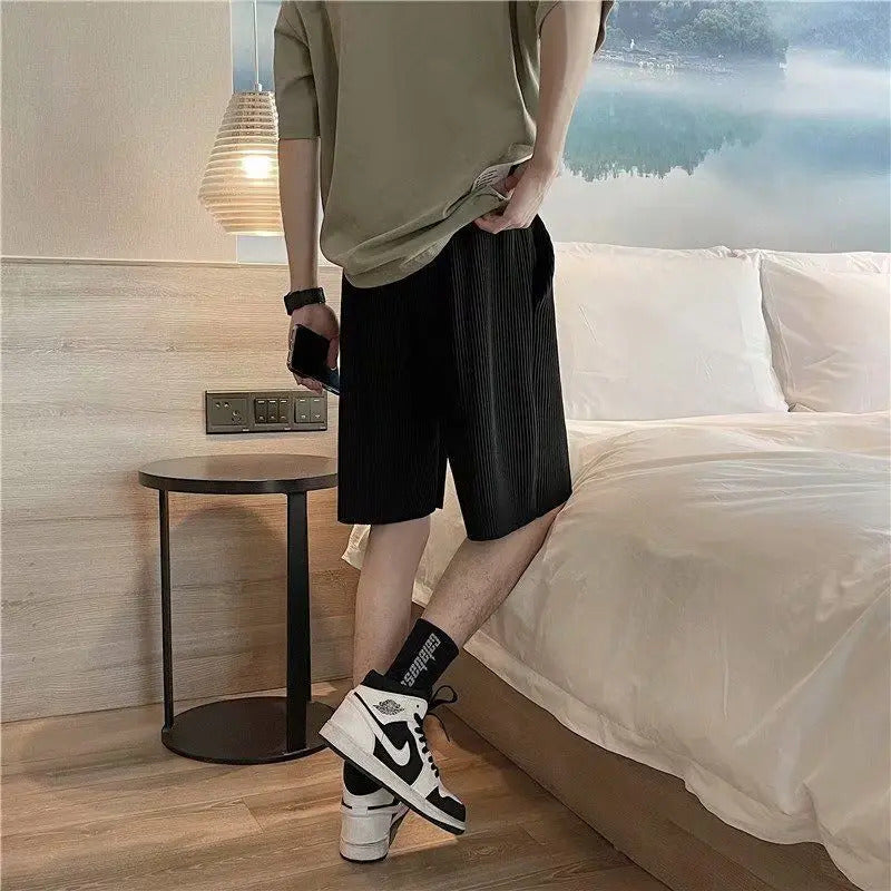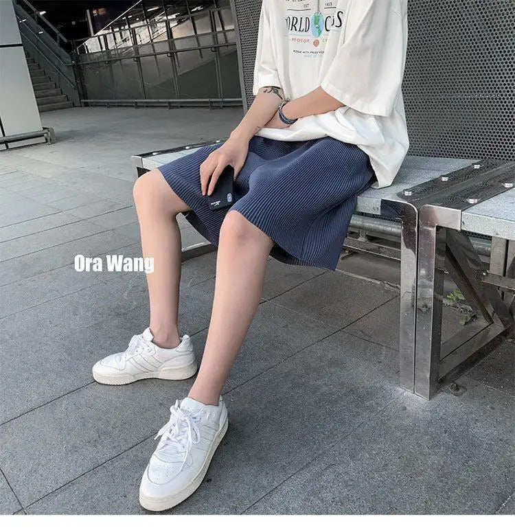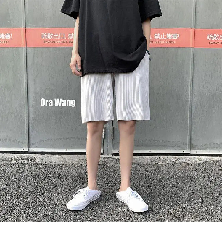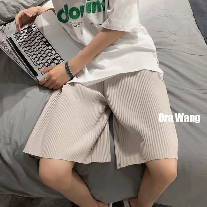 短裤男Summer Casual Shorts Men Straight Loose Ice Silk Solid Elastic Waist Mens Shorts Comfortable breathable Fitness Gym Short Pants
