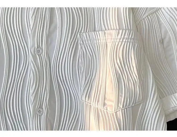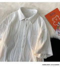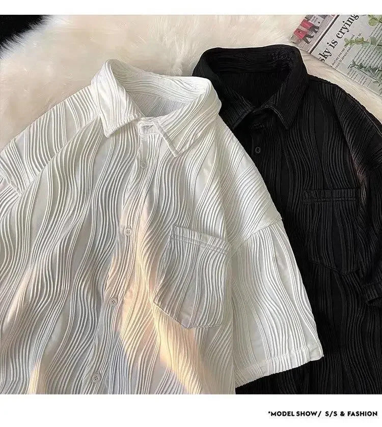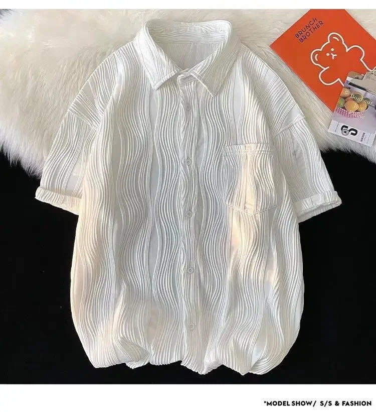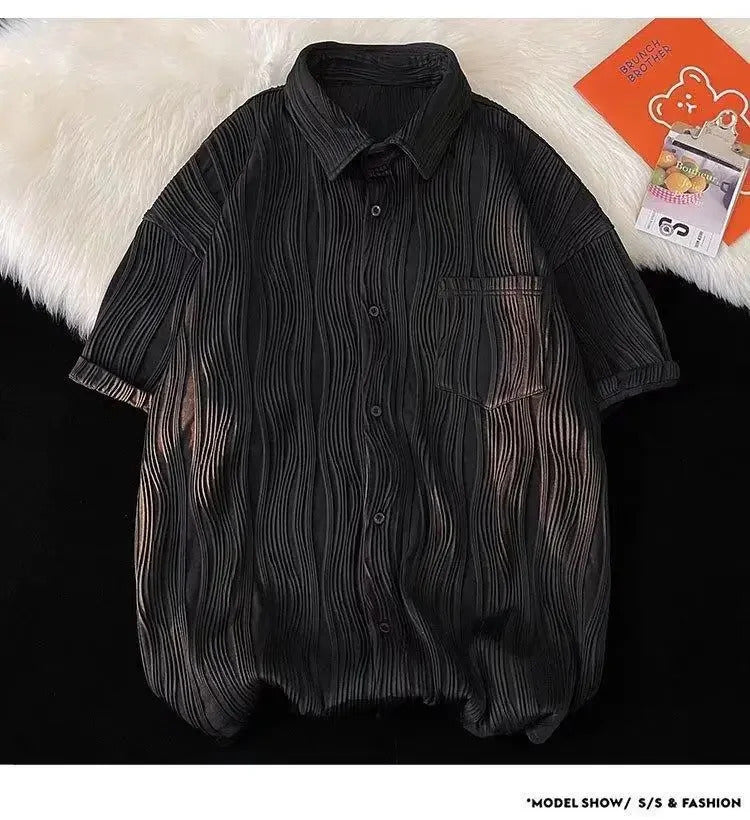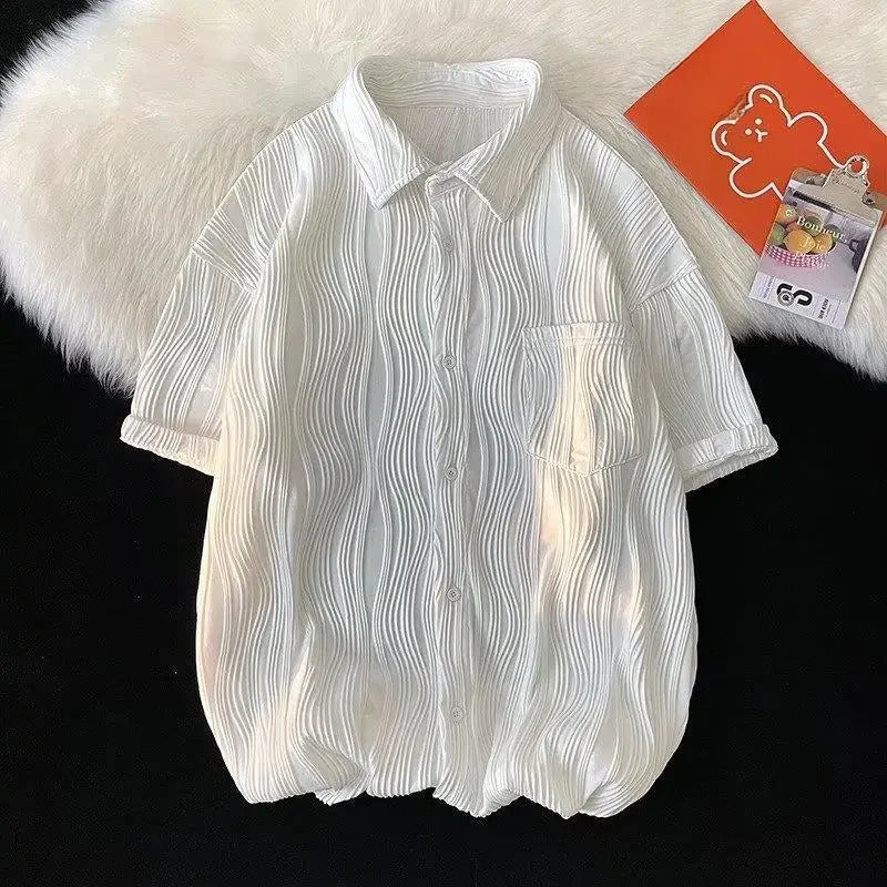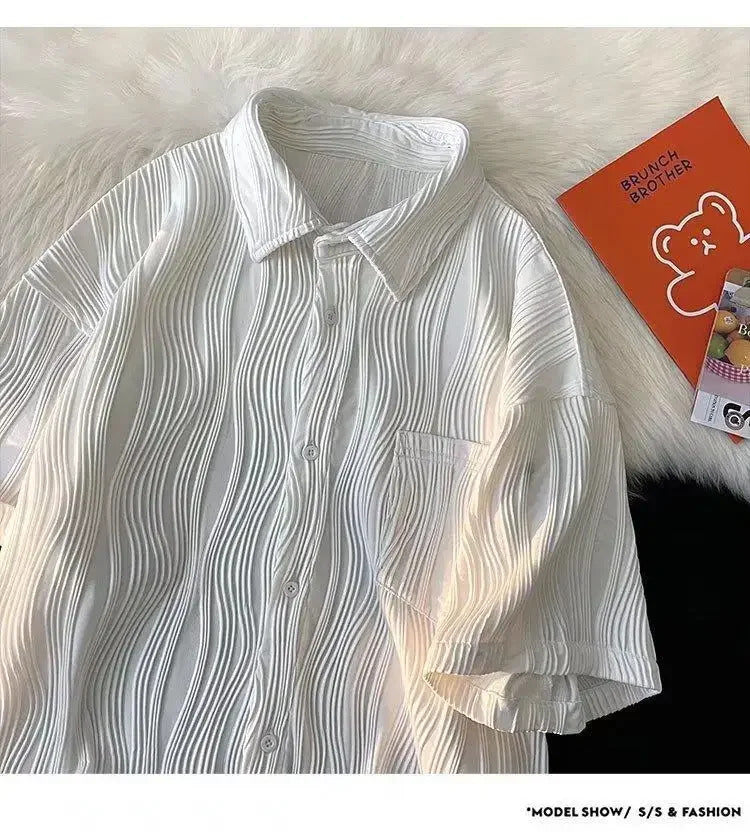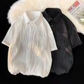 衬衫男Summer Casual Thin Ice Silk Shirt For Men Short Sleeves Loose Fit Trendy High-end Feeling Shirt Trendy Jacket
