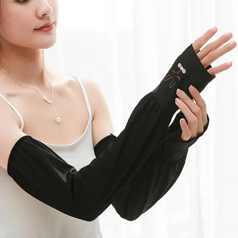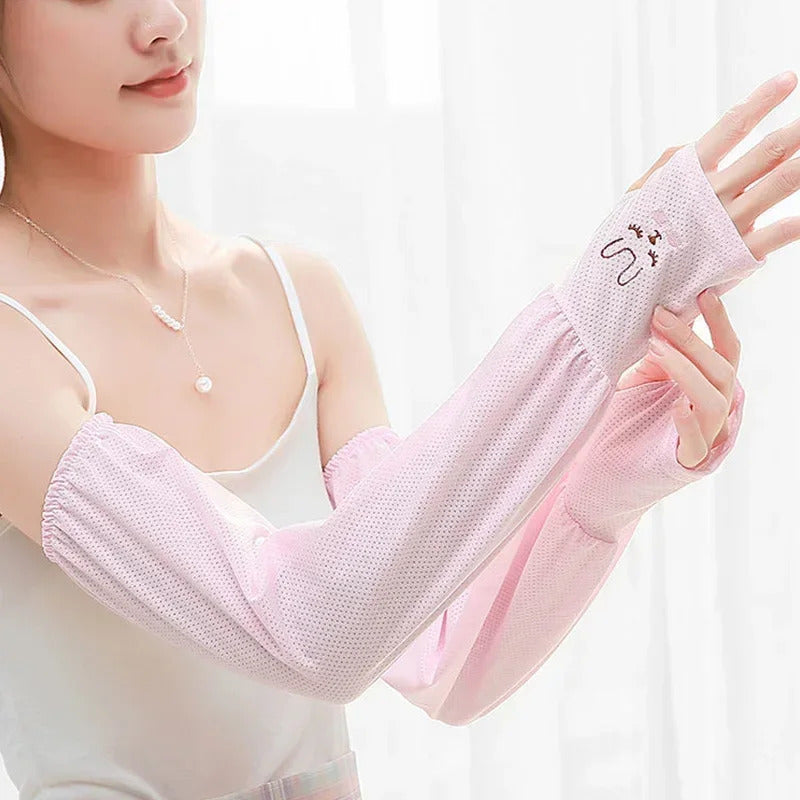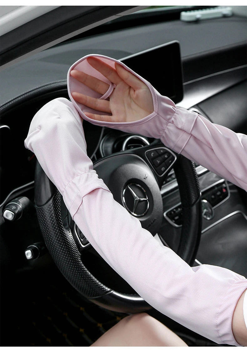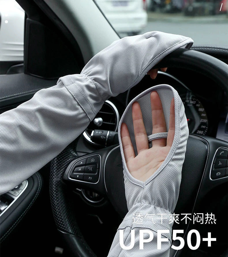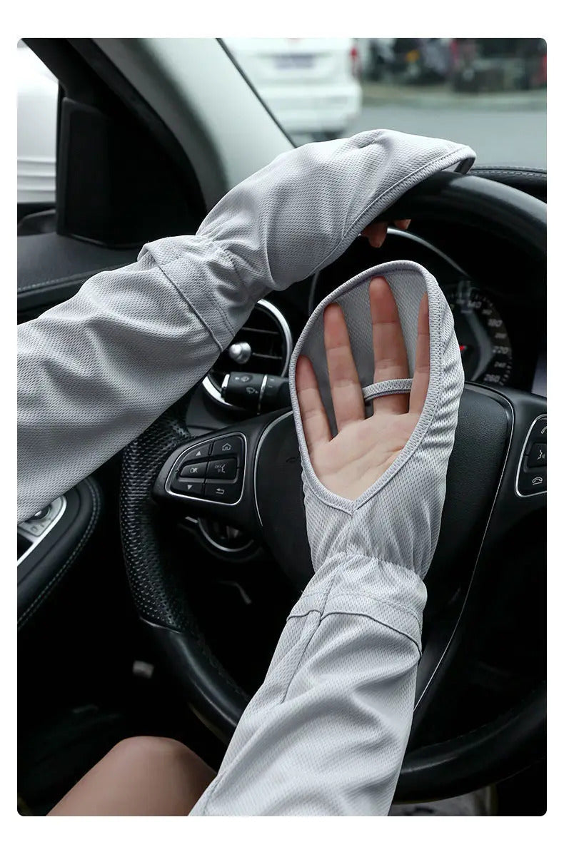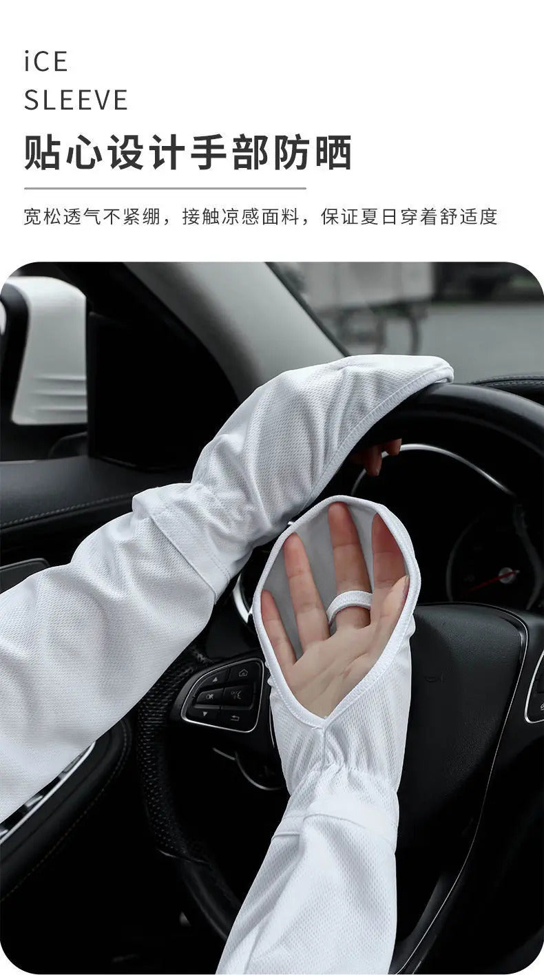 防晒冰袖女Summer Driving Sun Protection Thin Ice Silk Hand Sleeve Women's Electric Car Cover Finger Loose Fashion Gloves Men UV Protection