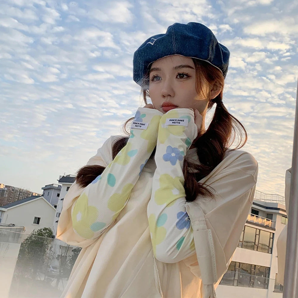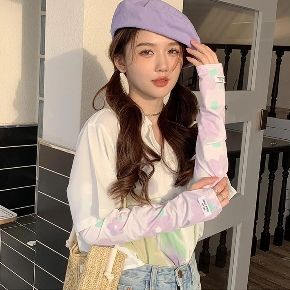 防晒冰袖女Summer Ice Silk Long Sleeves Anti-Sunburn Arm Cover Men Women Cuff New Cool Hand Sleeves Anti-UV Cycling Arm Sleeve Fingerless