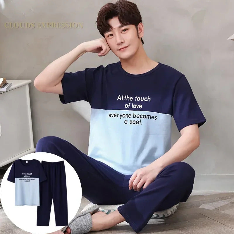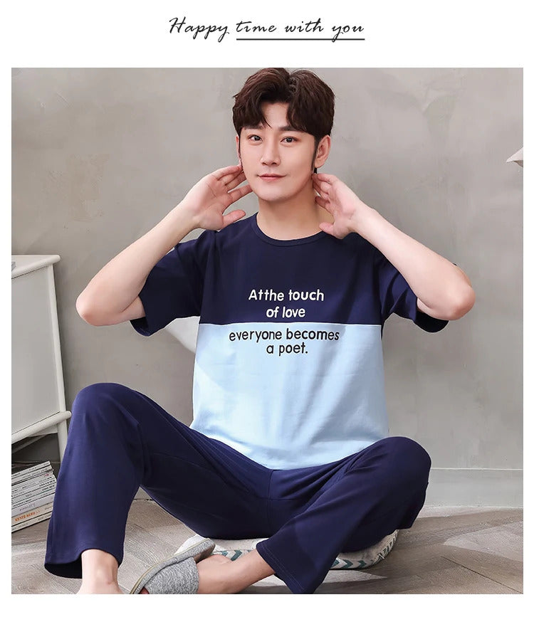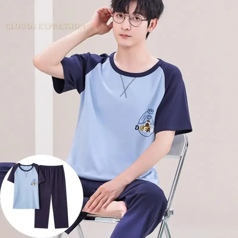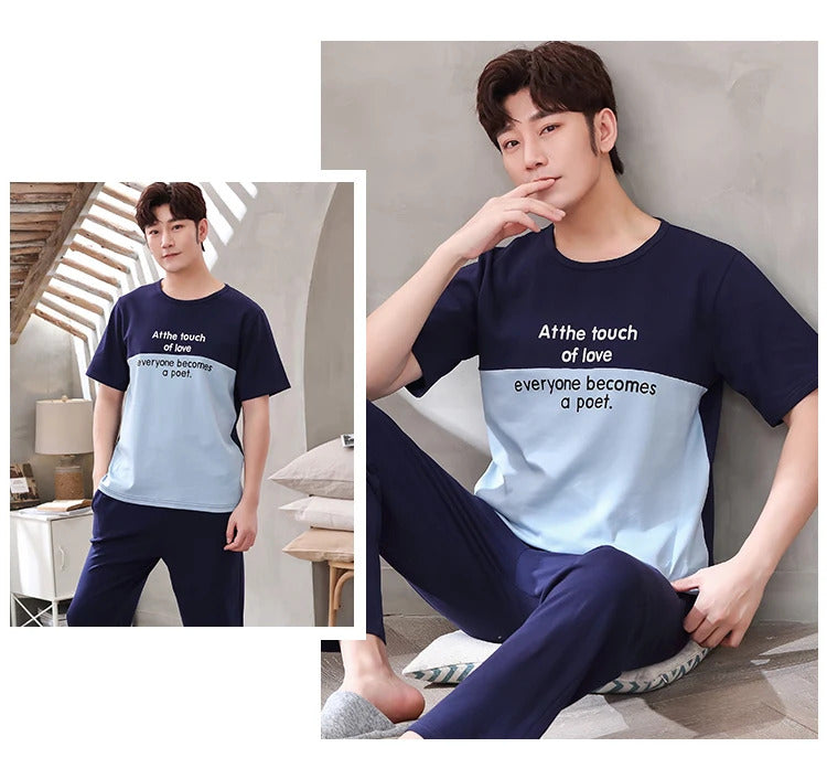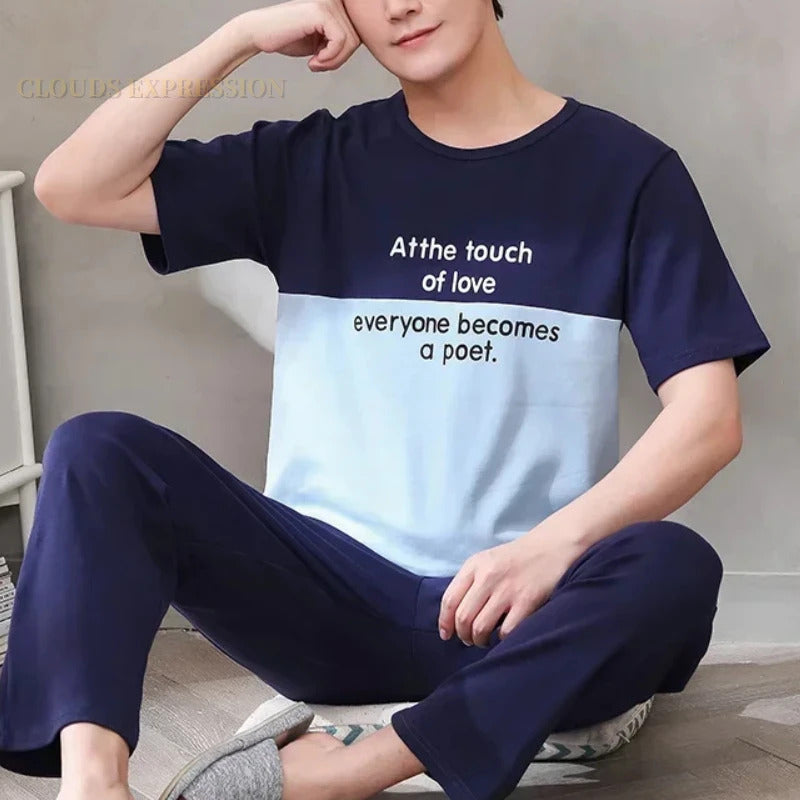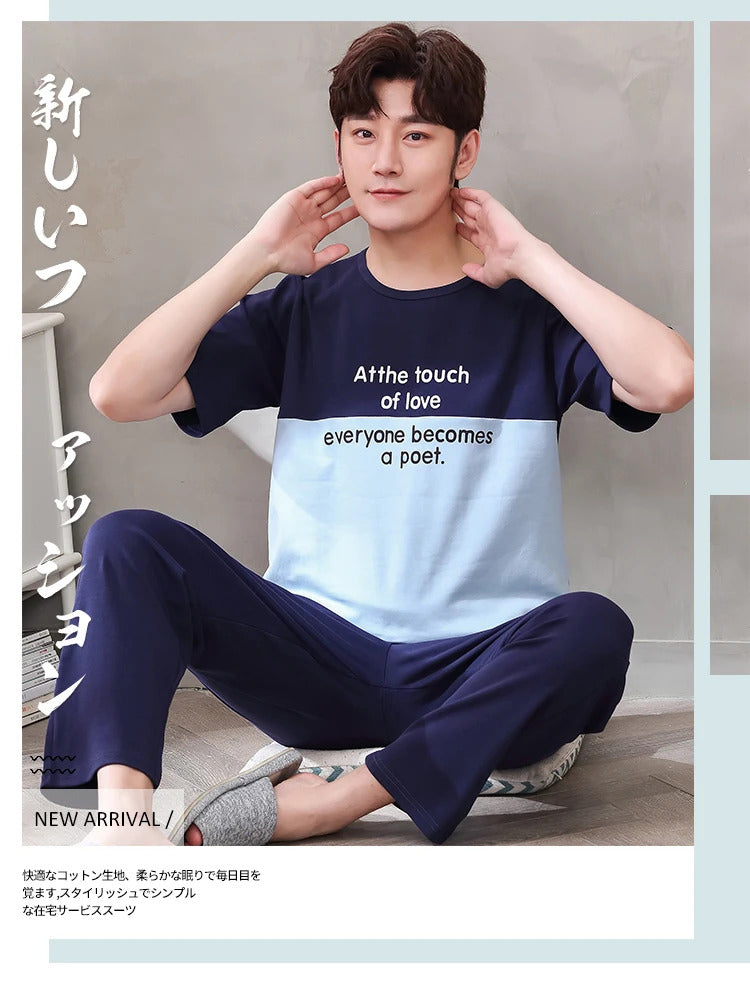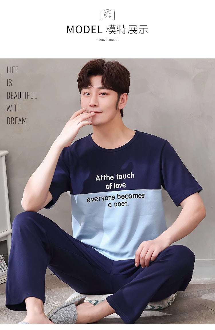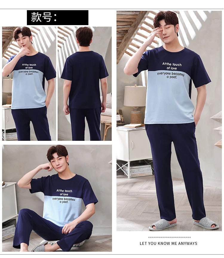 睡衣男Summer Knitted Pj Short Sleeved Men's Pajamas Sets Male Pajama Set Letter Pajama For Men Sleepwear Suit Homewear Size XXXL1264