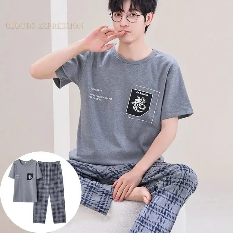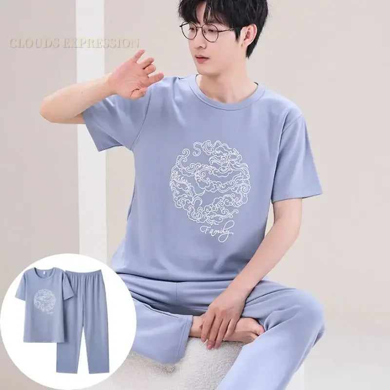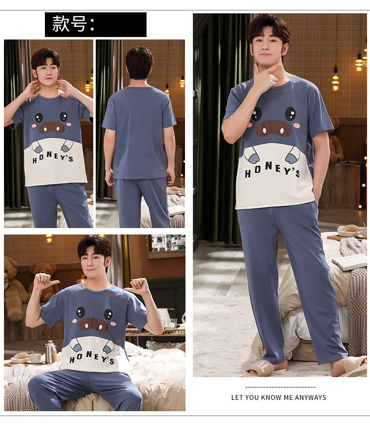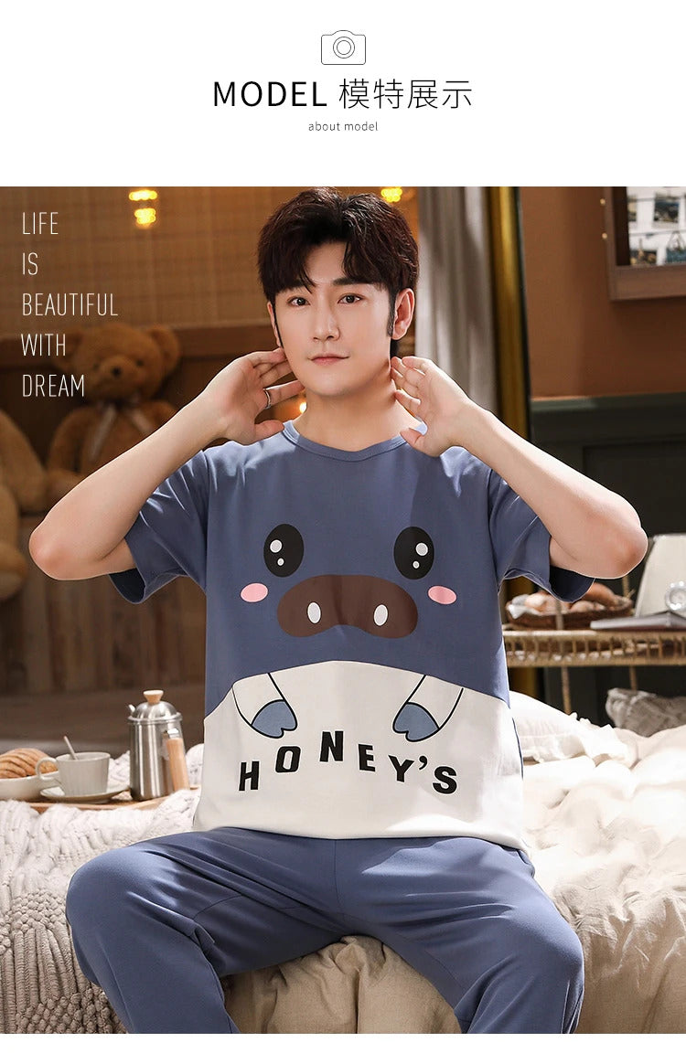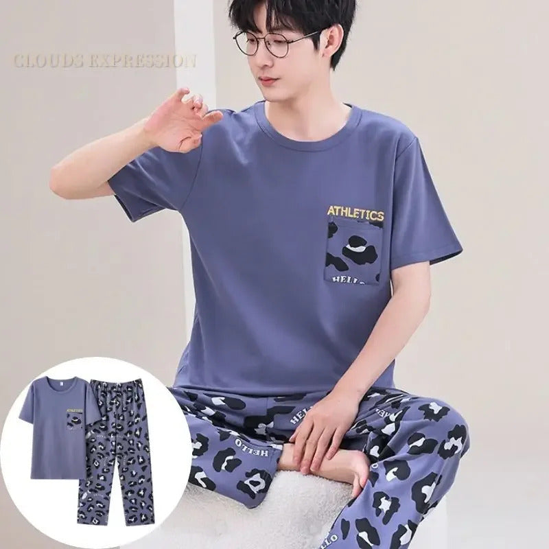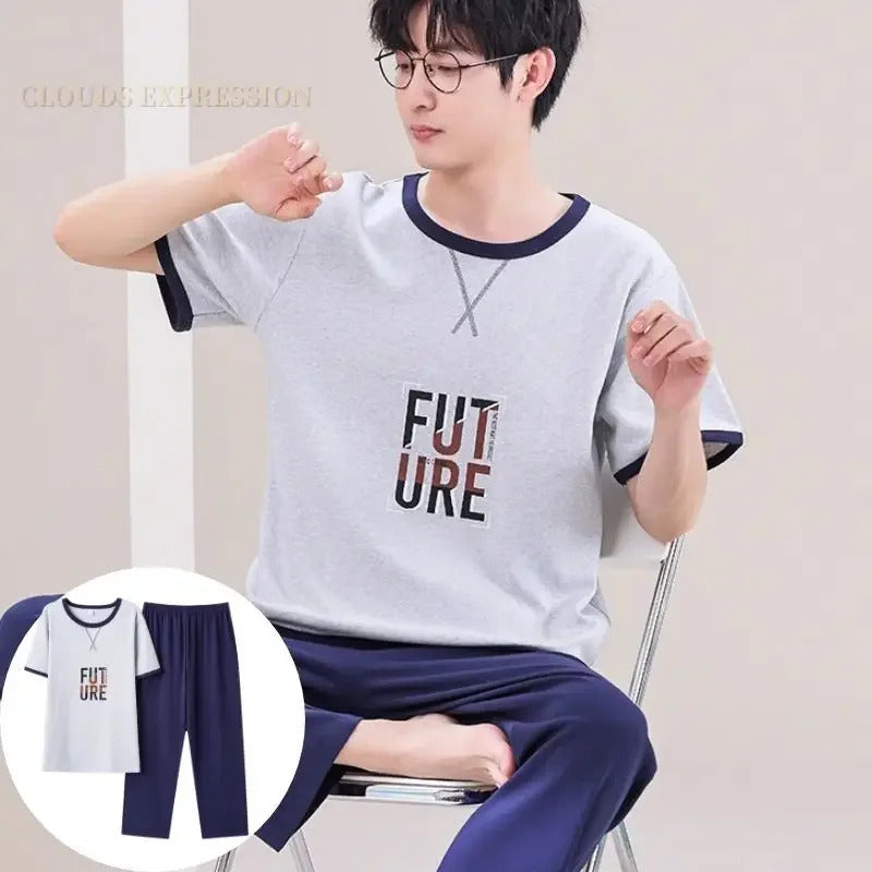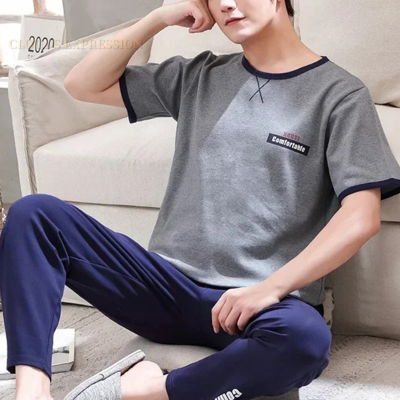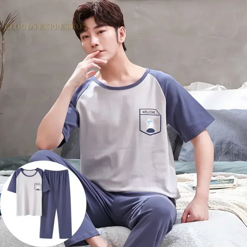 睡衣男Summer Knitted Pj Short Sleeved Men's Pajamas Sets Male Pajama Set Letter Pajama For Men Sleepwear Suit Homewear Size XXXL1264