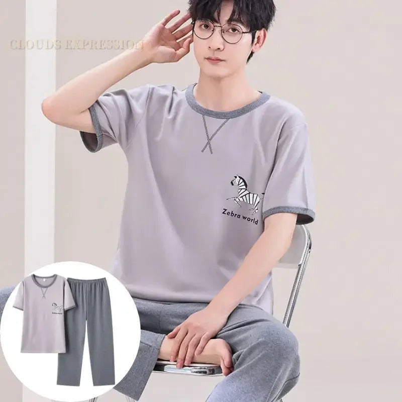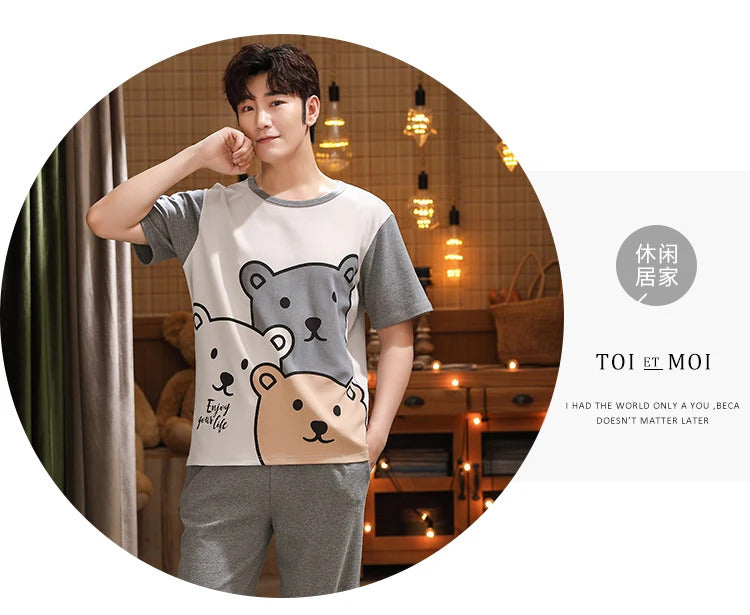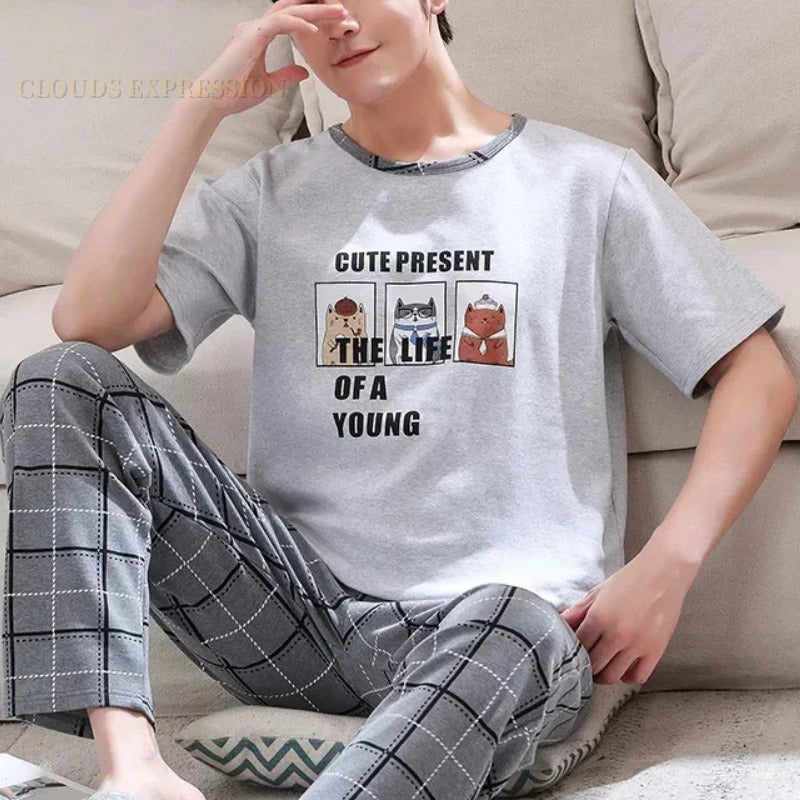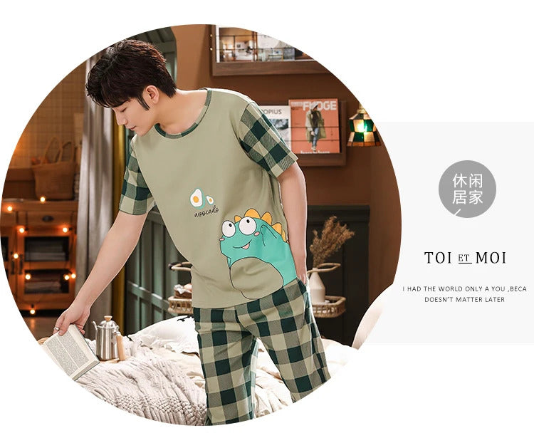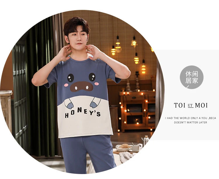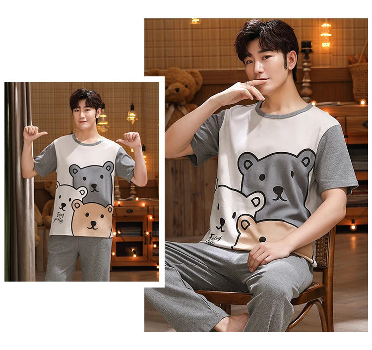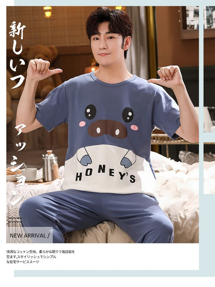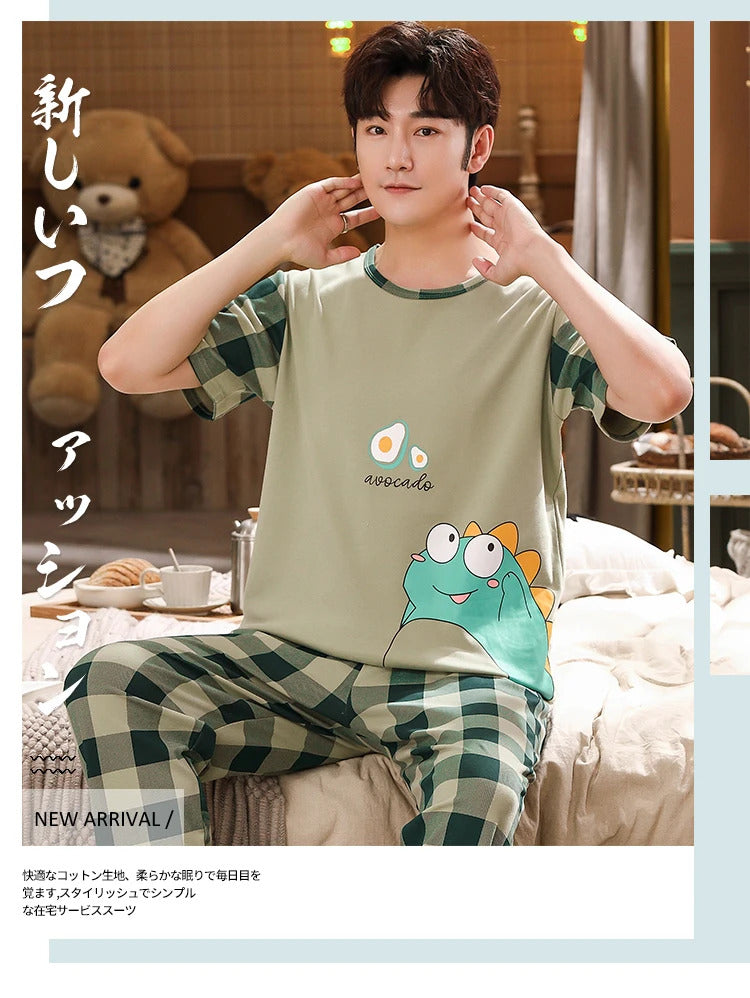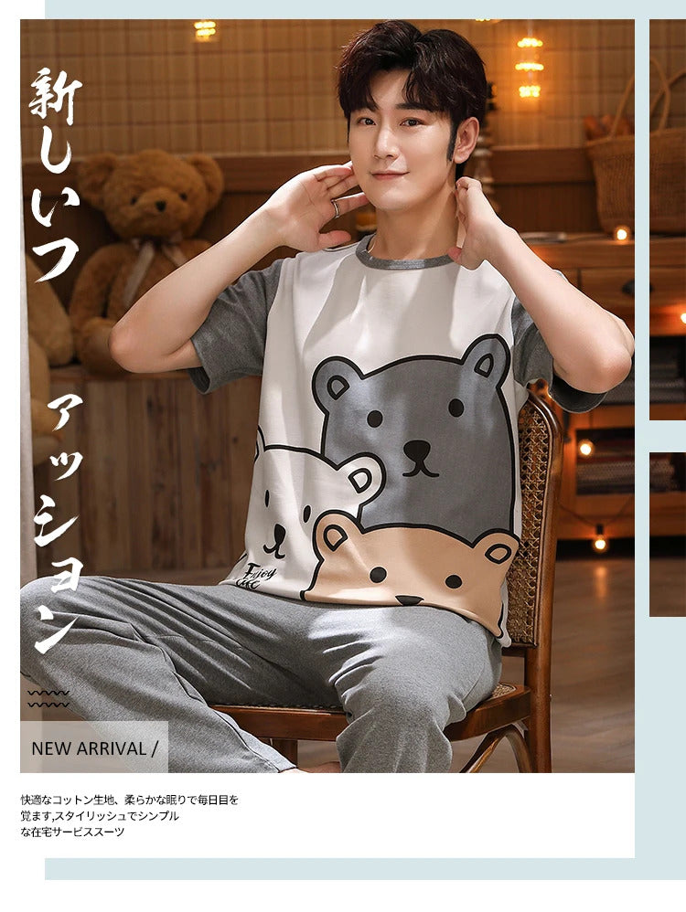 睡衣男Summer Knitted Pj Short Sleeved Men's Pajamas Sets Male Pajama Set Letter Pajama For Men Sleepwear Suit Homewear Size XXXL1264