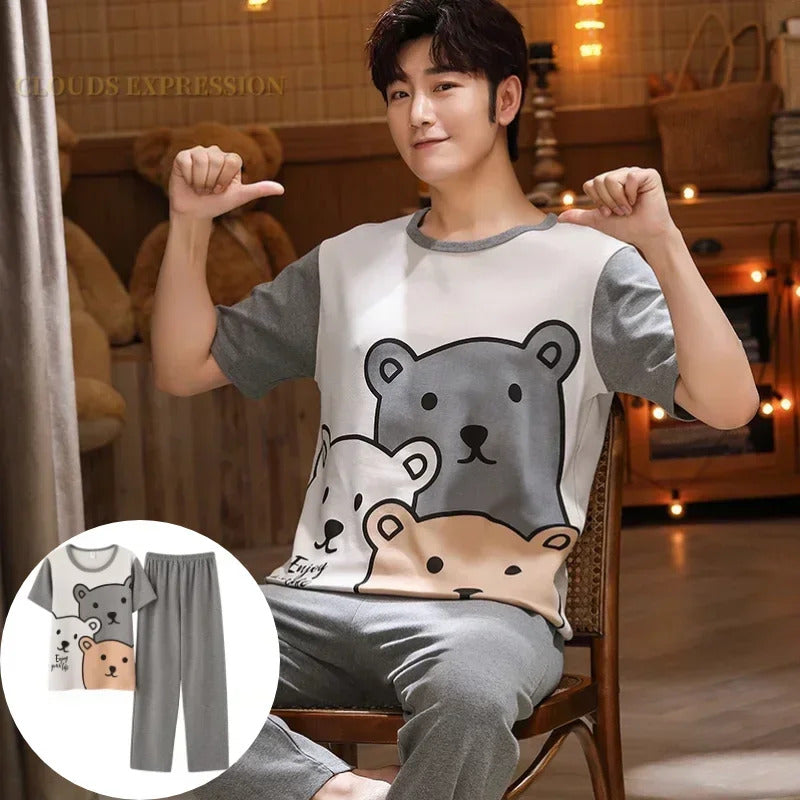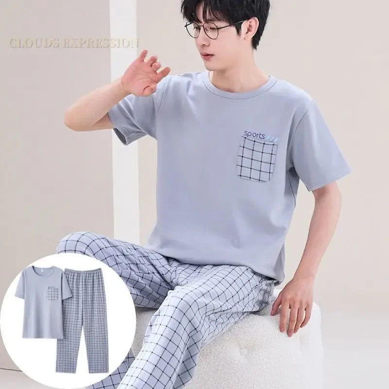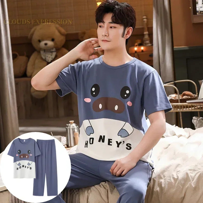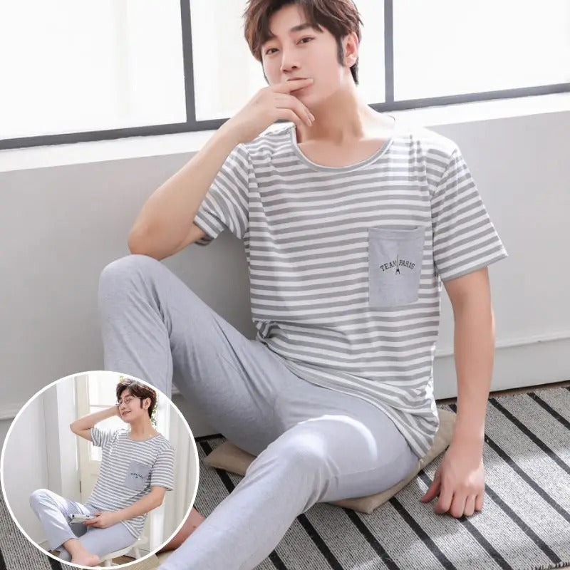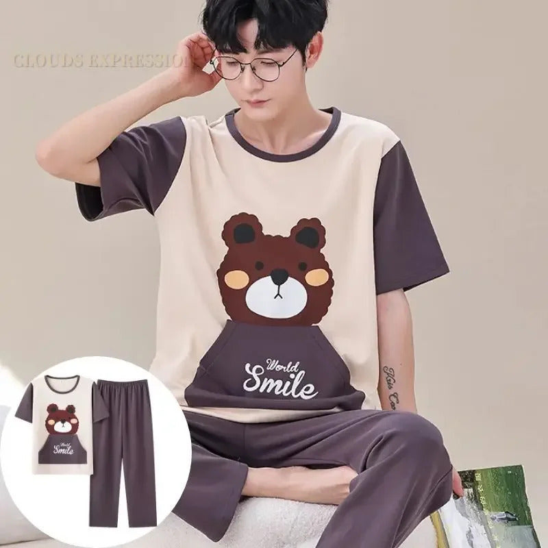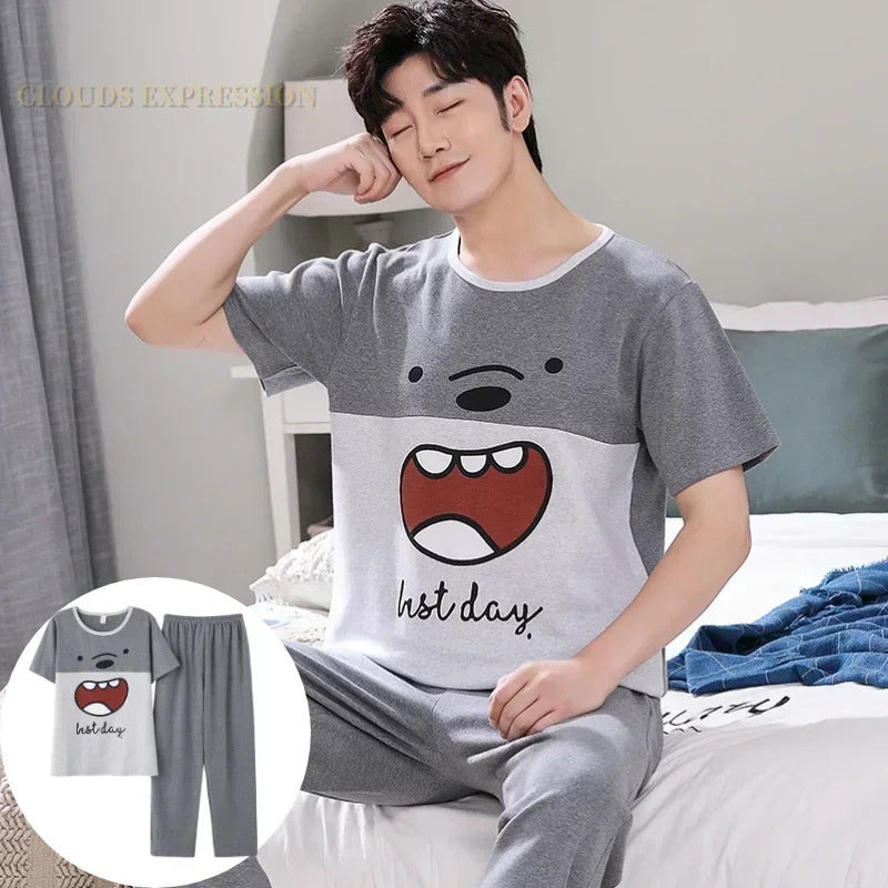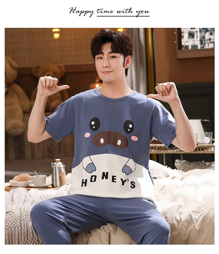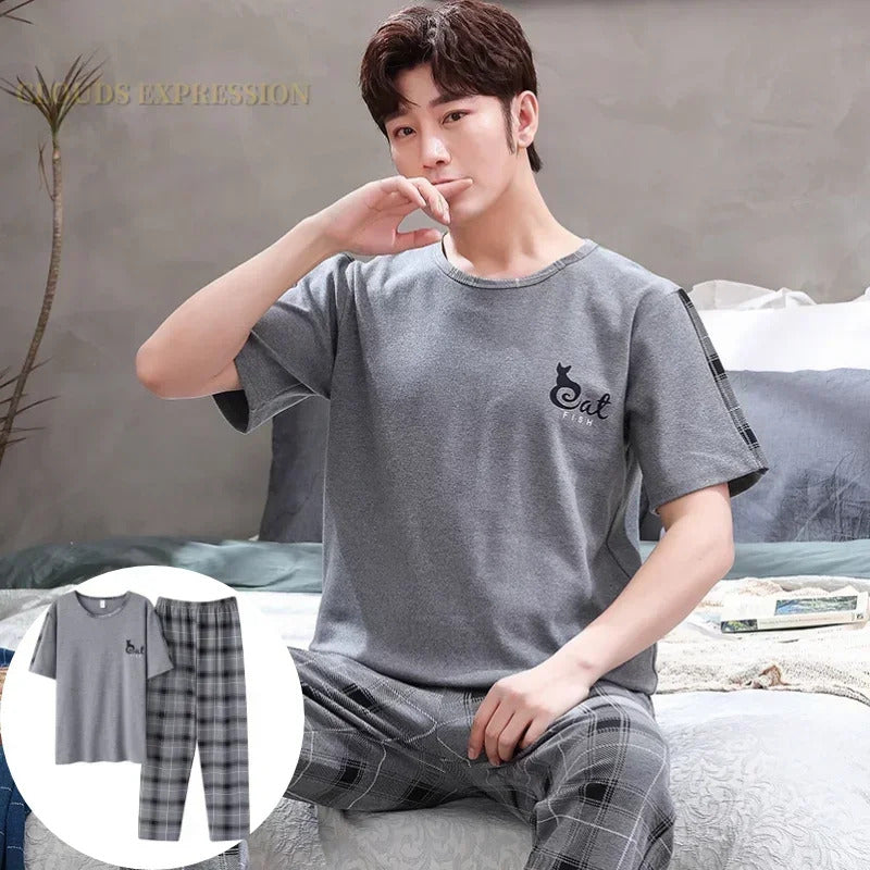 睡衣男Summer Knitted Pj Short Sleeved Men's Pajamas Sets Male Pajama Set Letter Pajama For Men Sleepwear Suit Homewear Size XXXL1264