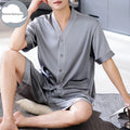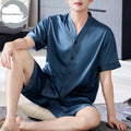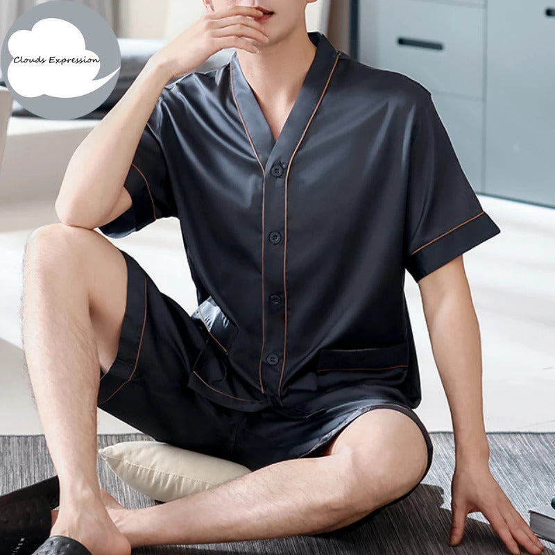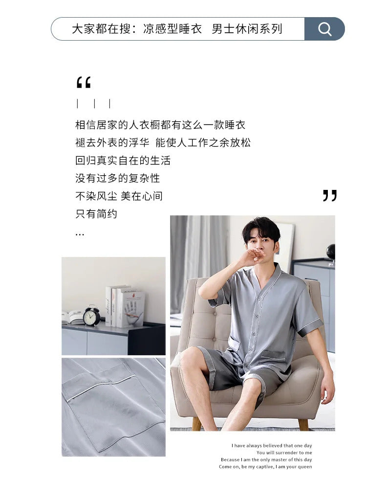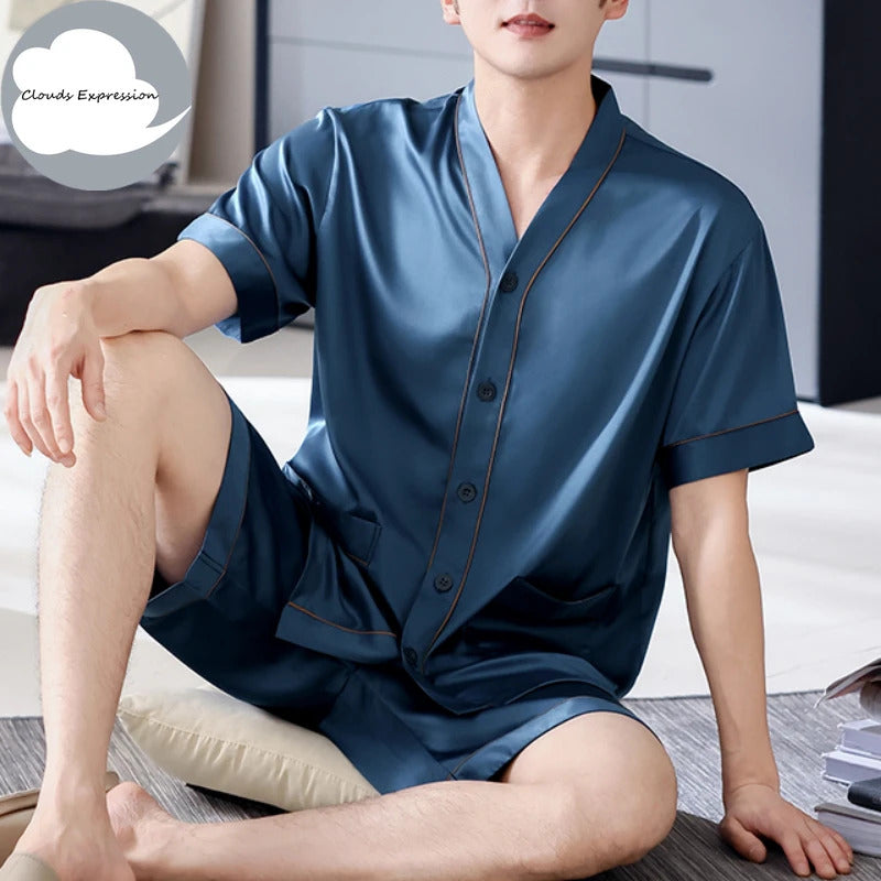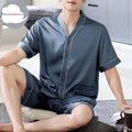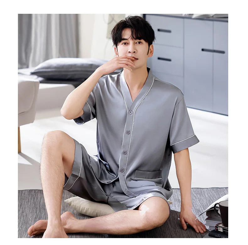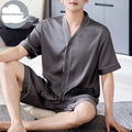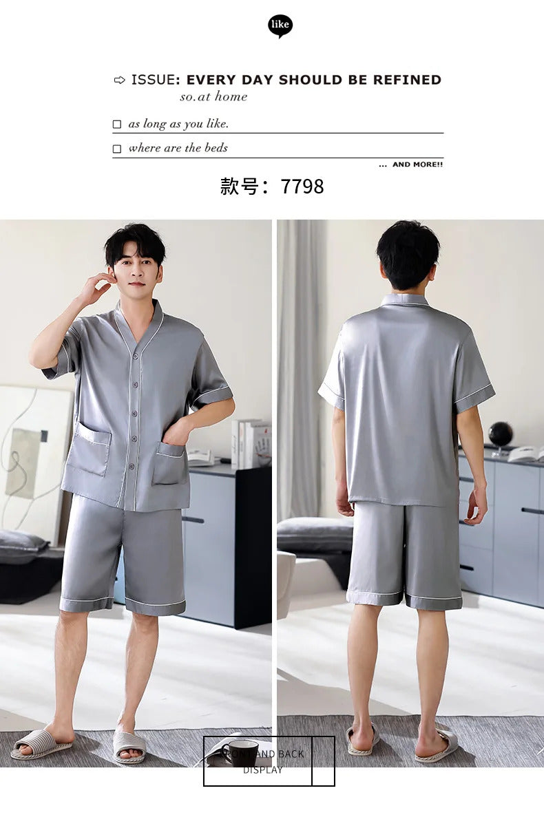 睡衣男Summer L-4XL Silver Kimono Pyjamas Faux Silk Men's Pajama Sets Satin Pajama Male Sleepwear Pajamas Nightwear Homewear Fashion