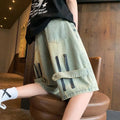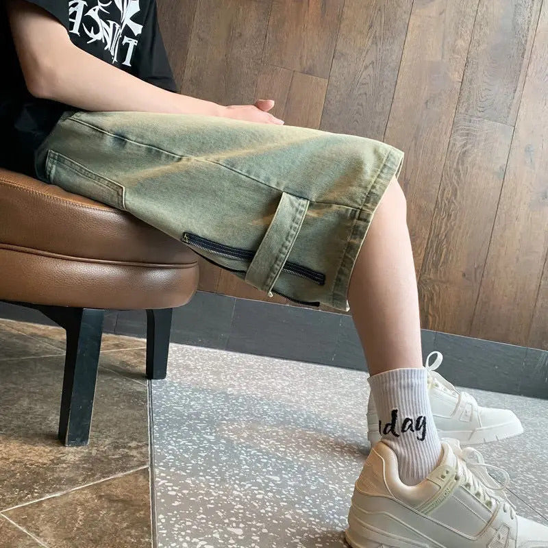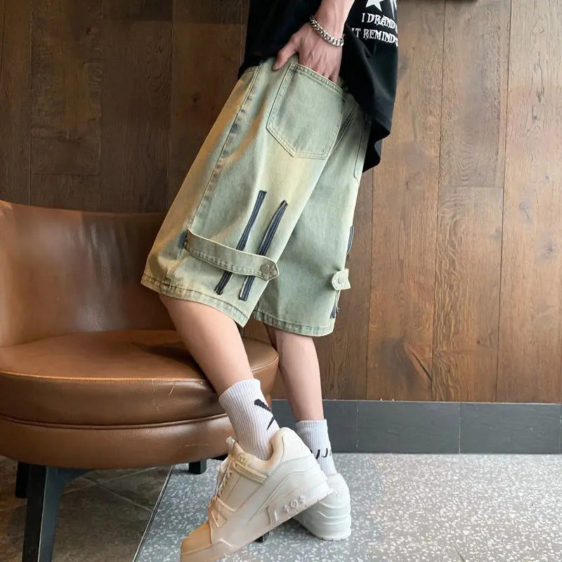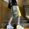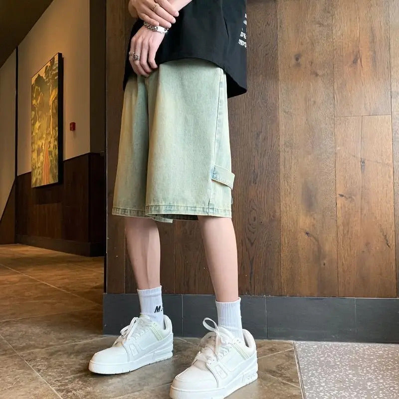 短裤男Summer Men Wide Leg Denim Shorts Vintage Cargo Hip-pop Baggy Knee Length Pants Stitching Streetwear Straight Casual 5 Pants