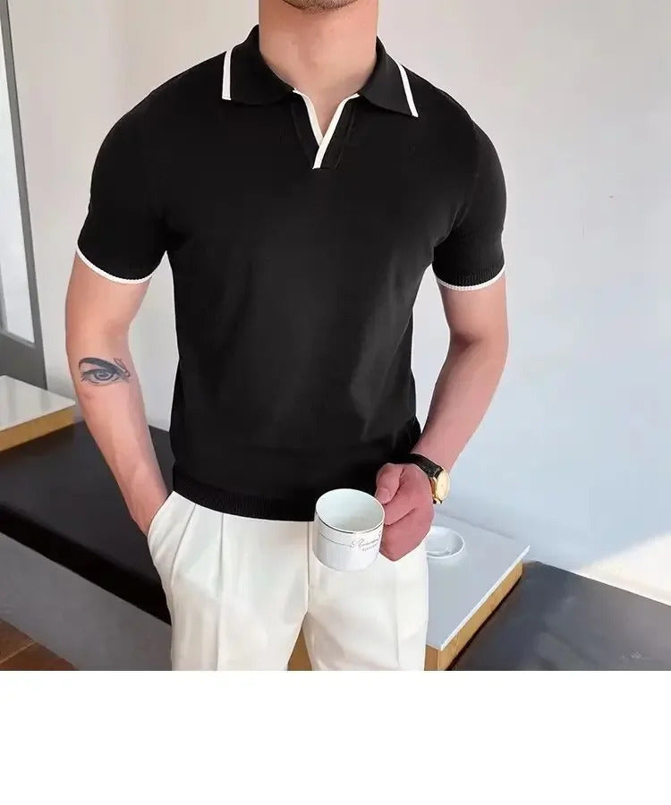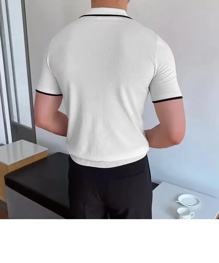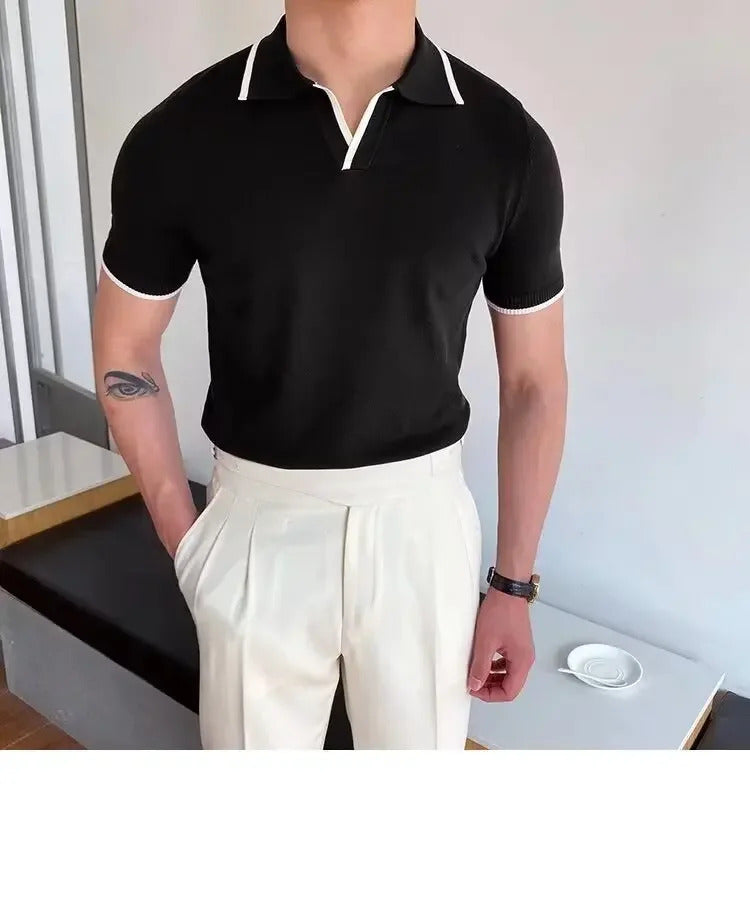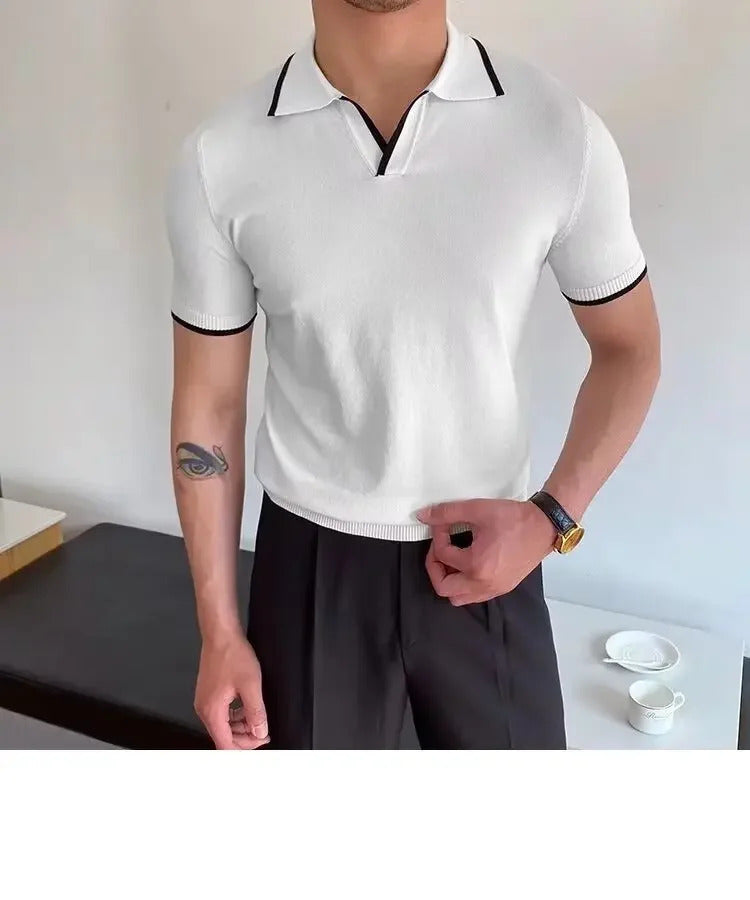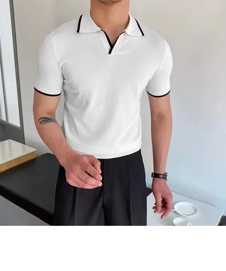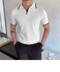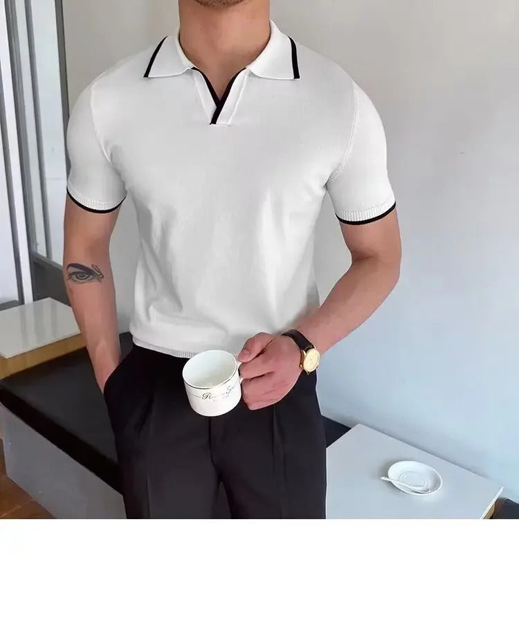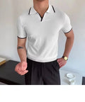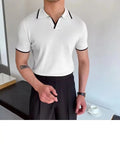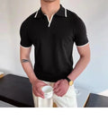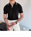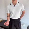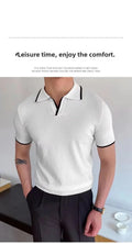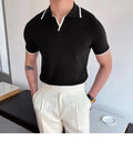 POLO男Summer Men's Knit Short Sleeve Polo Shirt Korean Style Slim Fit Solid Color Ice Silk Casual T-shirt Base Layer Top
