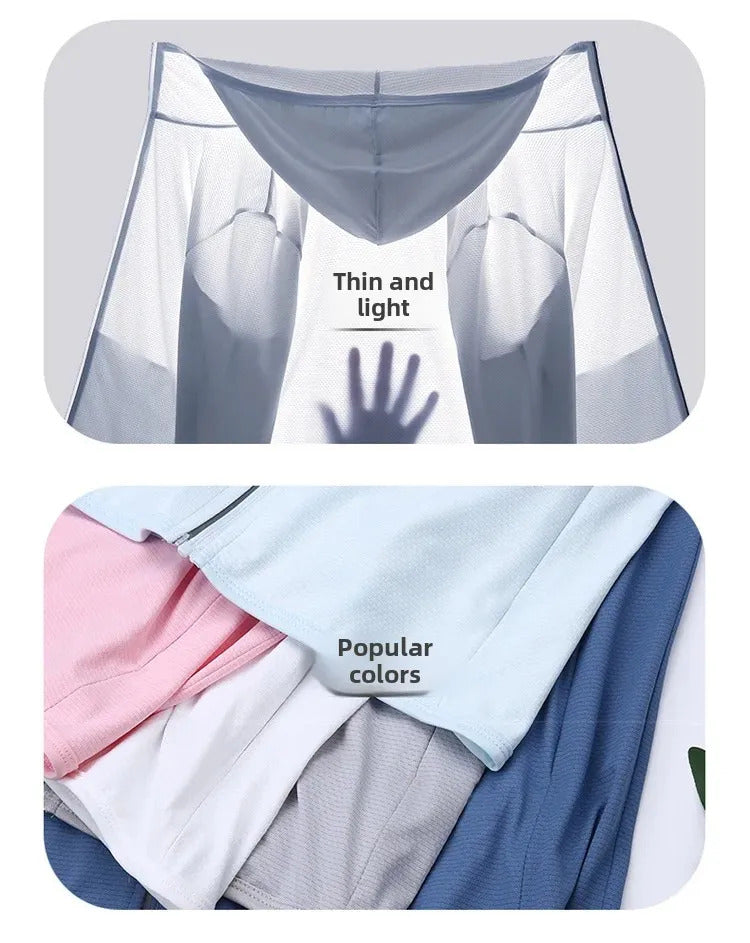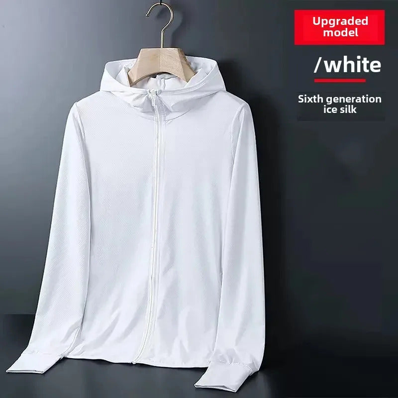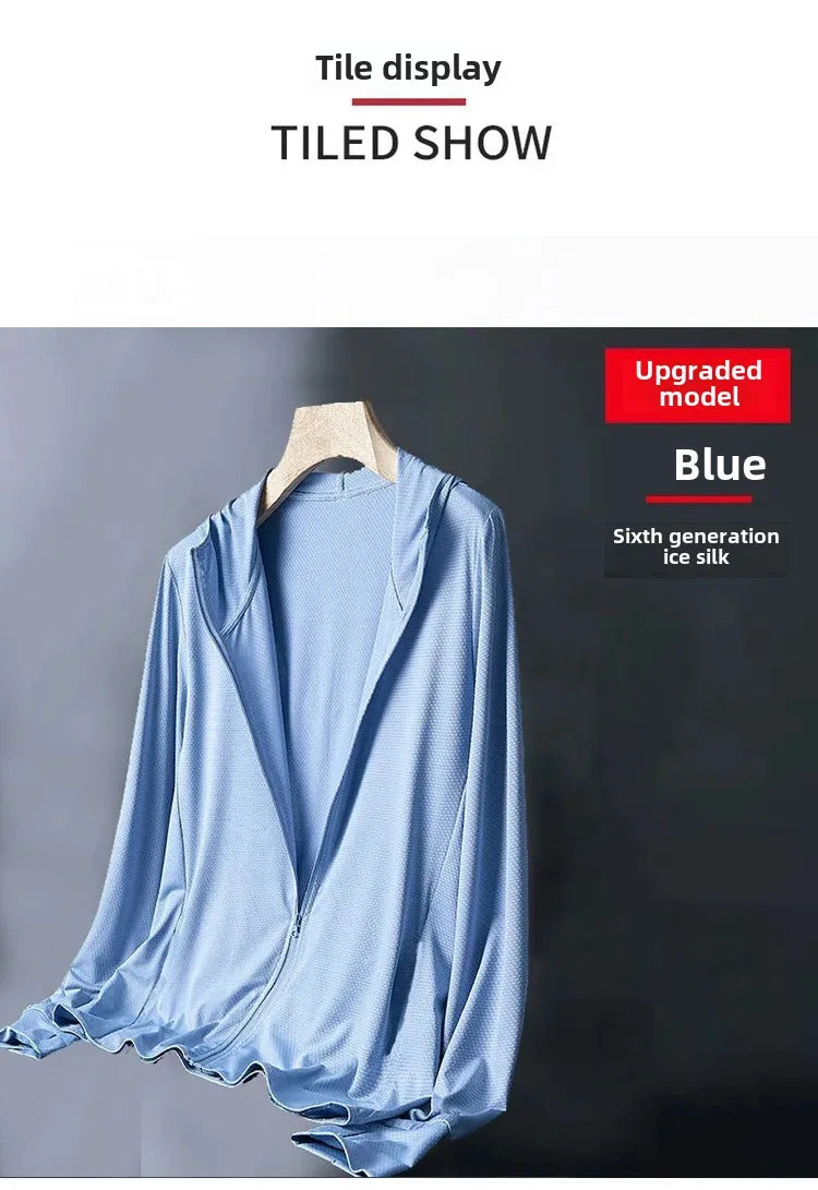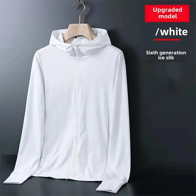 防晒衣男Summer Men's Trendy Ice Silk Sun Protection Thin Outdoor Quick Dry Hooded Jacket Solid Color Simple Casual Loose Clothing