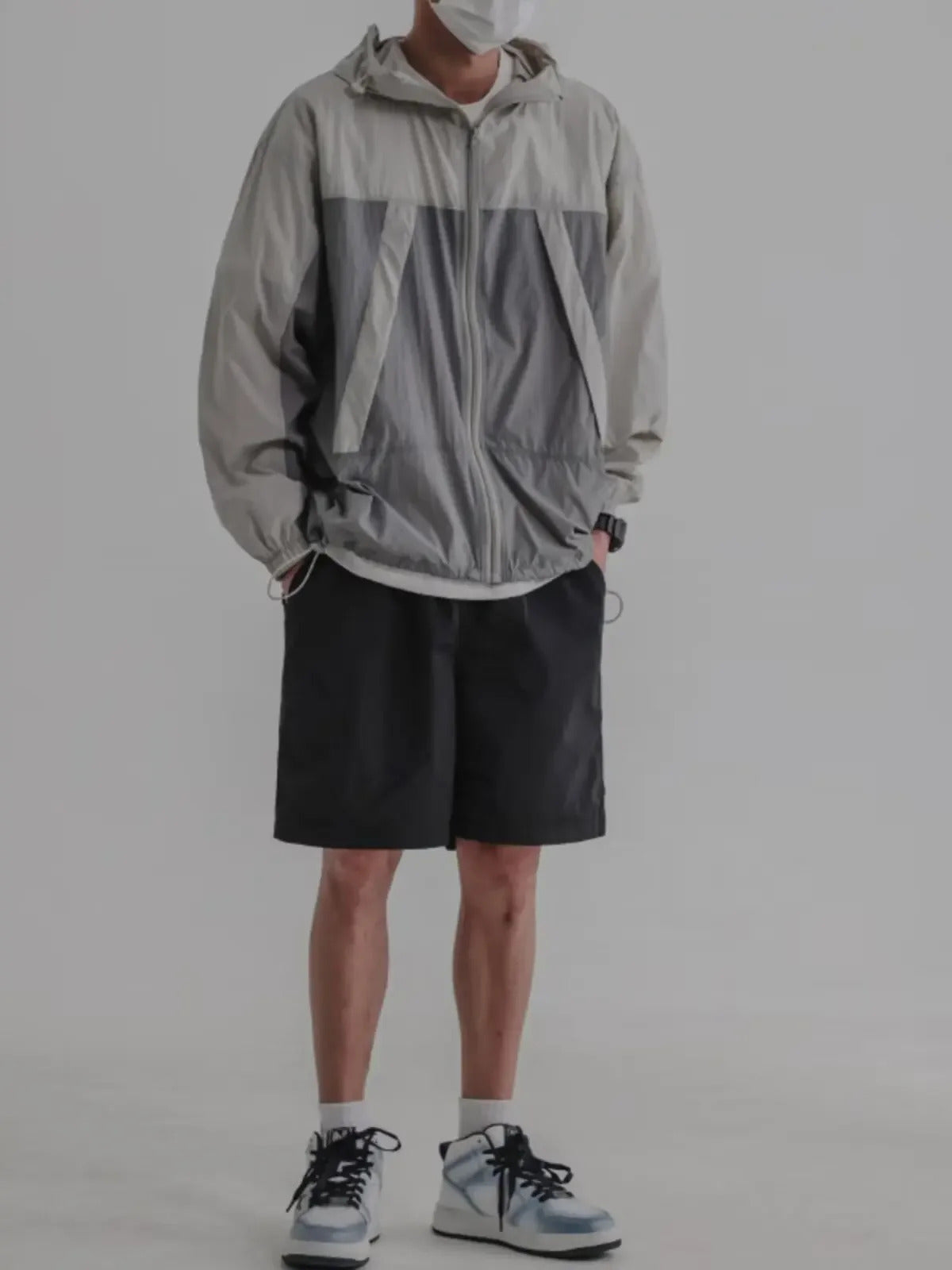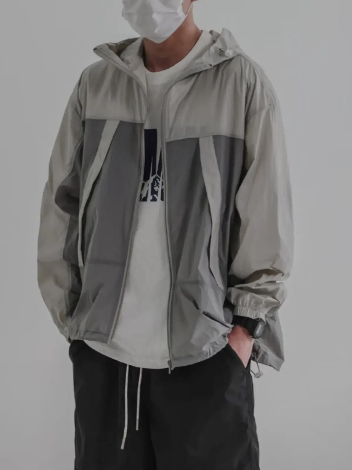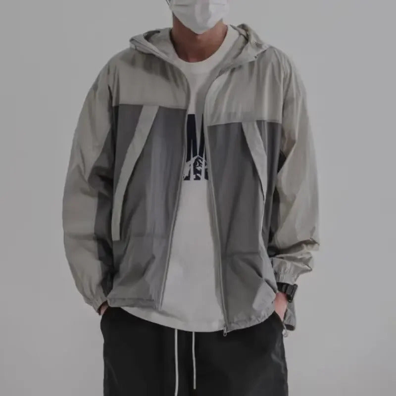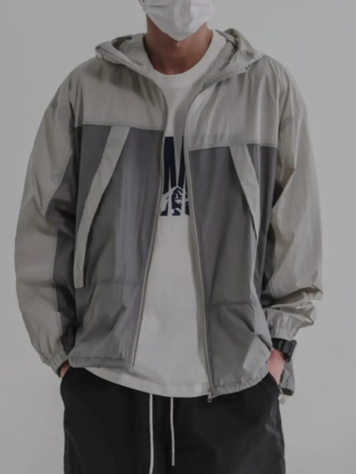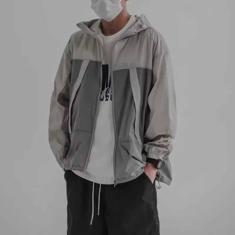 防晒衣男Summer New Men's Lightweight Jacket Top Sunscreen Outdoor Windbreaker Sport Solid Color Hooded Versatile Casual Use Loose Fit