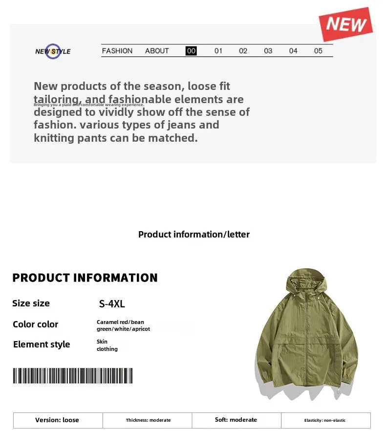 防晒衣男Summer New Men's Women's Ice Silk Hooded Sunscreen Clothes Loose Fit Outdoor Skin Clothes Jacket Thin Lightweight