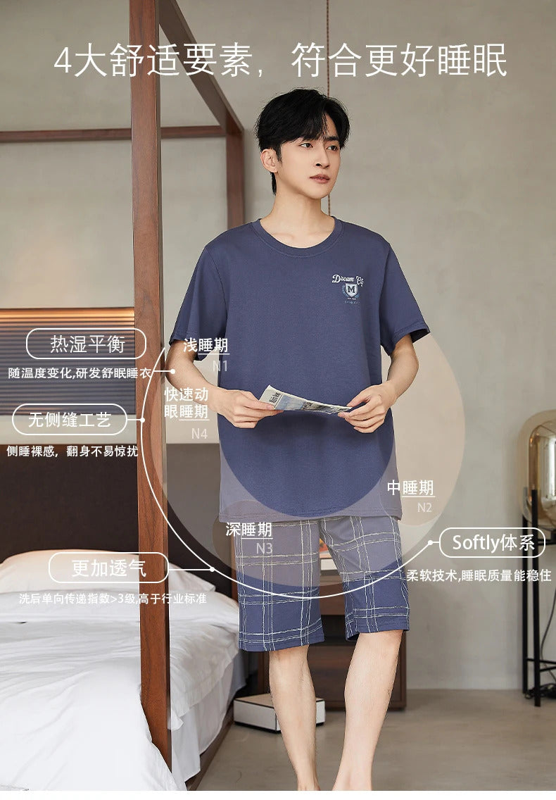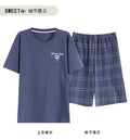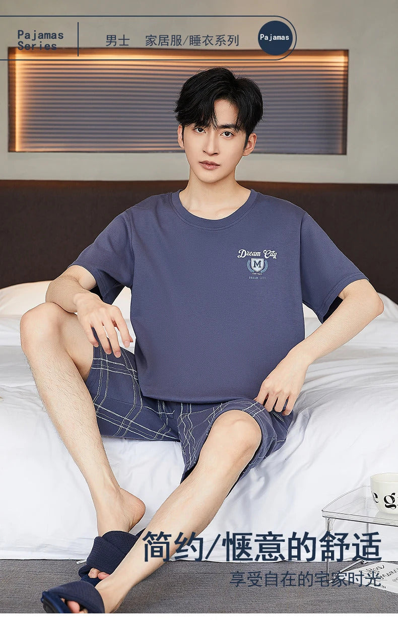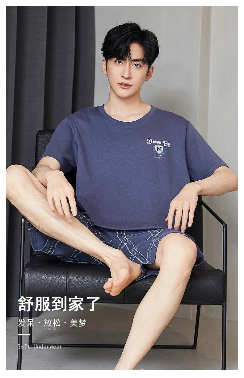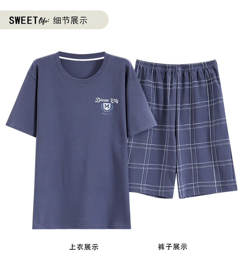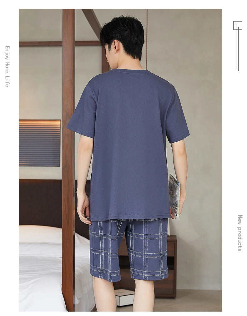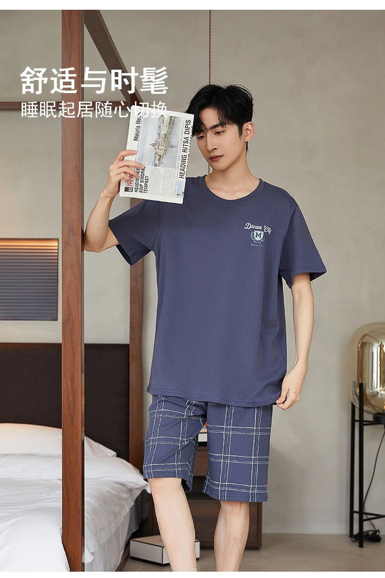 睡衣男Summer Plus 3XL Knitted Pjs Short Sleeve Mens Pajamas Sets Male Pajama Set Plaid Pajama For Men Sleepwear Suits Homewear Fashion