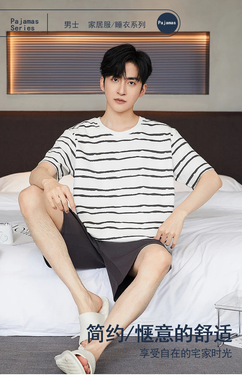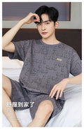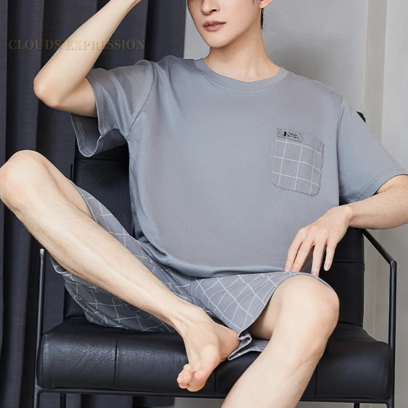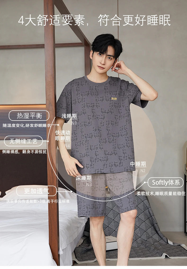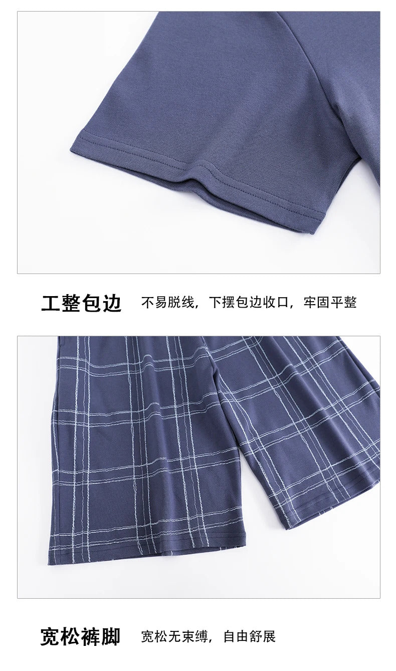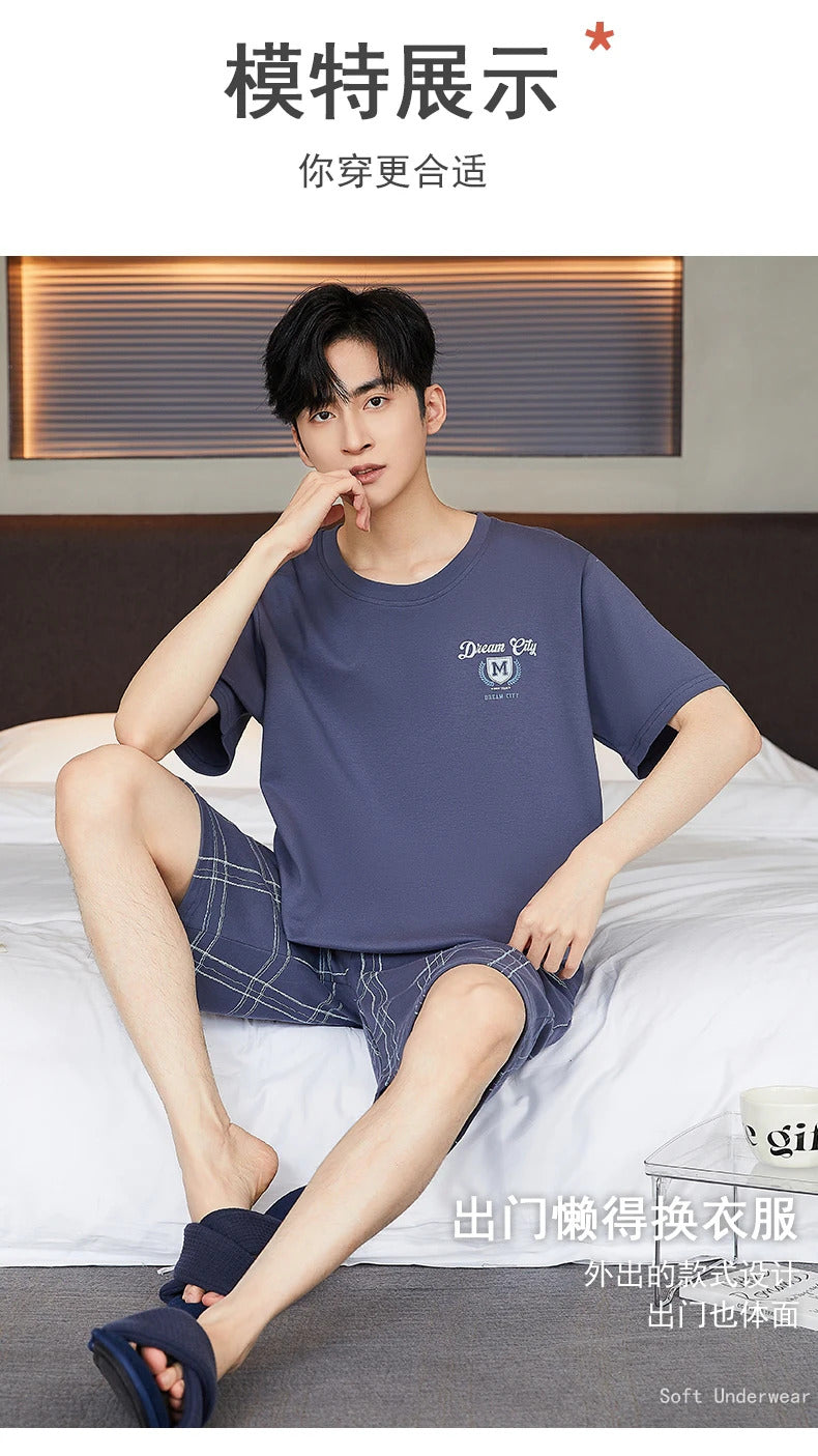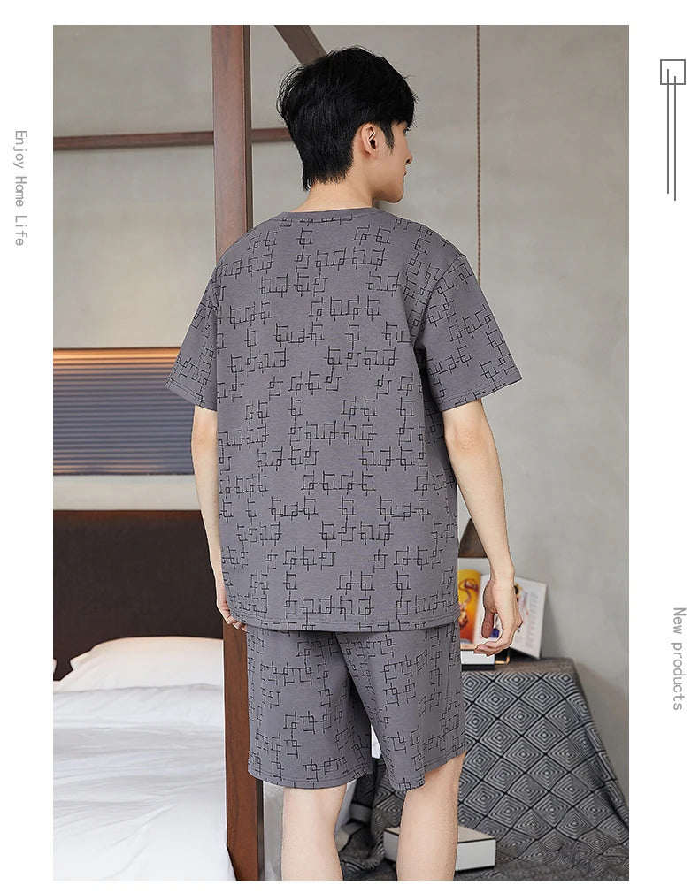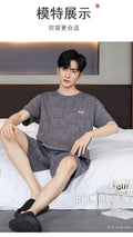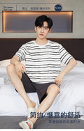 睡衣男Summer Plus 3XL Knitted Pjs Short Sleeve Mens Pajamas Sets Male Pajama Set Plaid Pajama For Men Sleepwear Suits Homewear Fashion