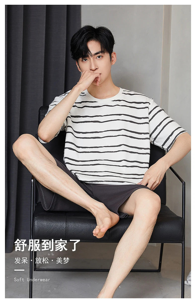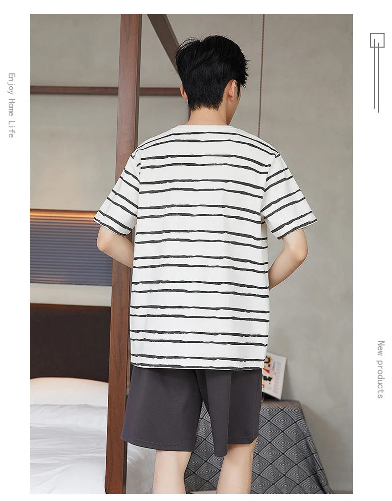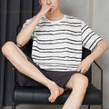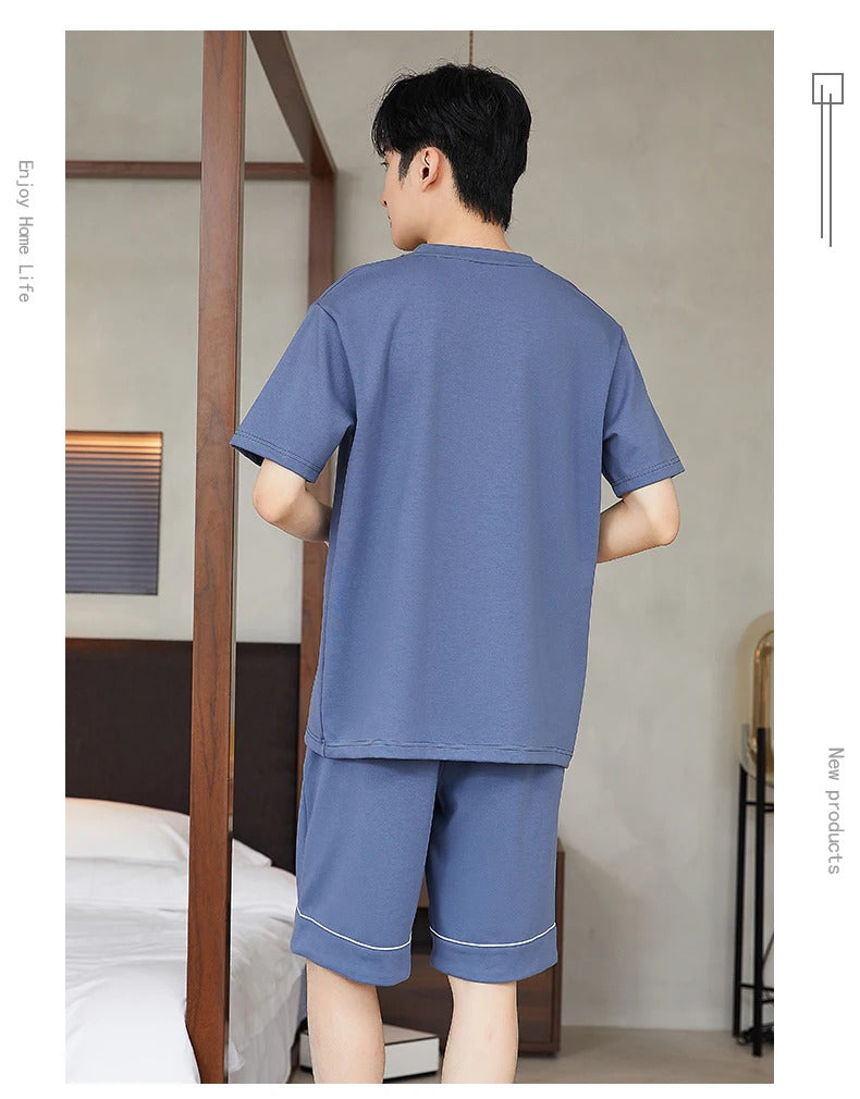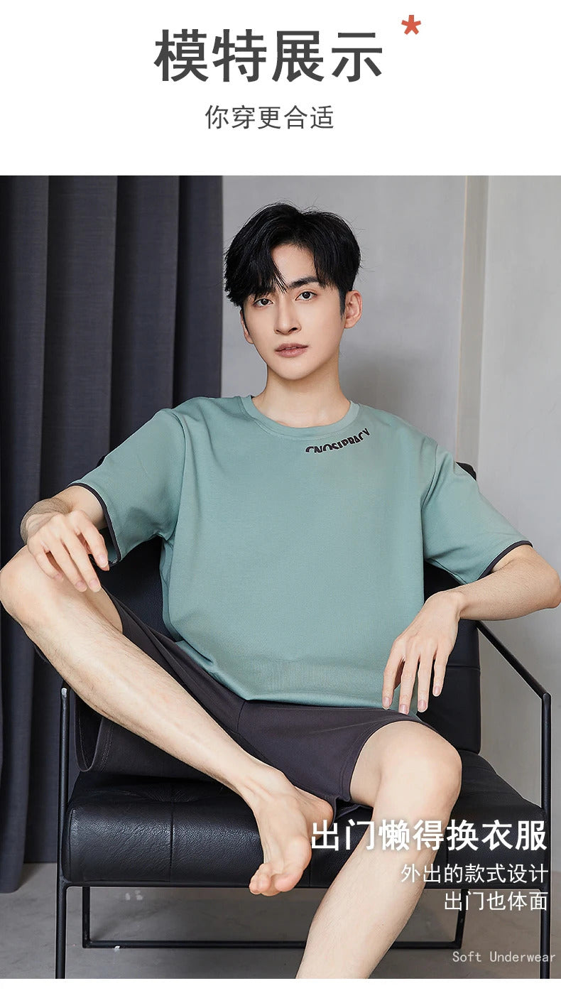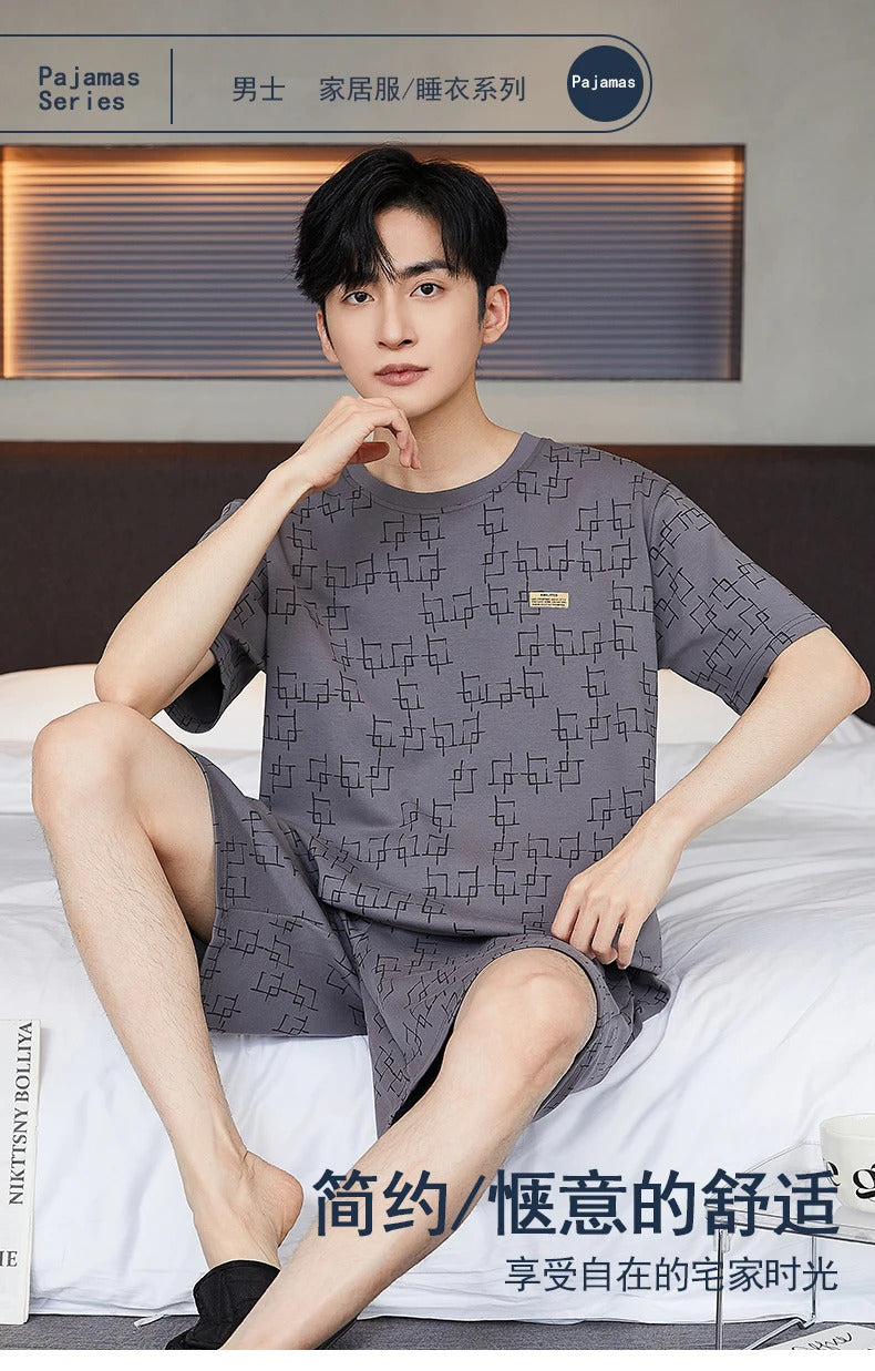 睡衣男Summer Plus 3XL Knitted Pjs Short Sleeve Mens Pajamas Sets Male Pajama Set Plaid Pajama For Men Sleepwear Suits Homewear Fashion