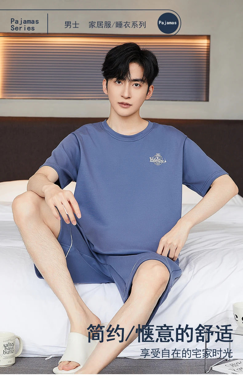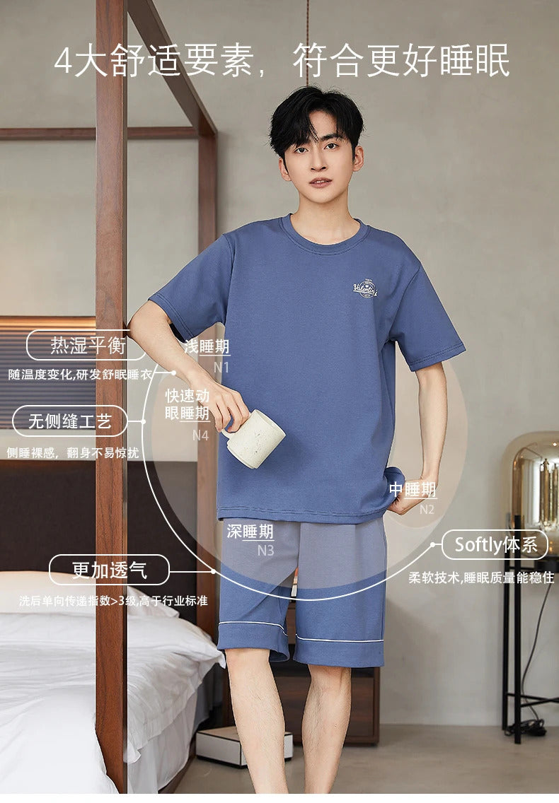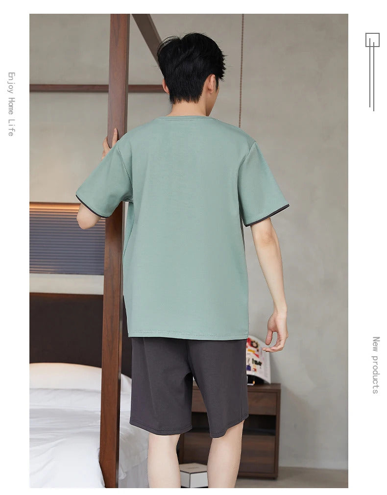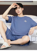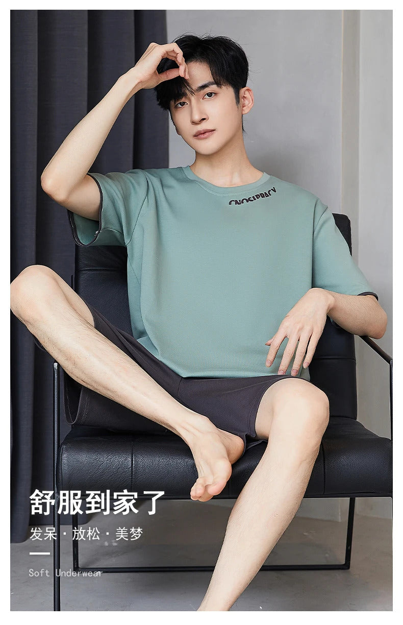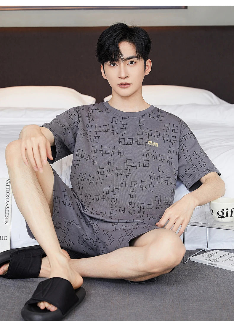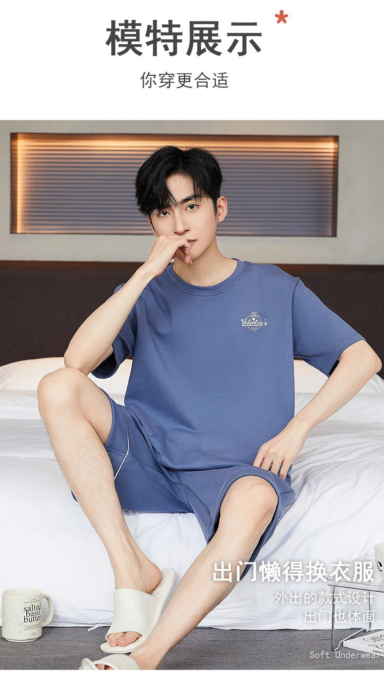 睡衣男Summer Plus 3XL Knitted Pjs Short Sleeve Mens Pajamas Sets Male Pajama Set Plaid Pajama For Men Sleepwear Suits Homewear Fashion