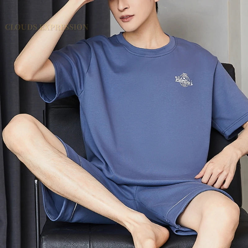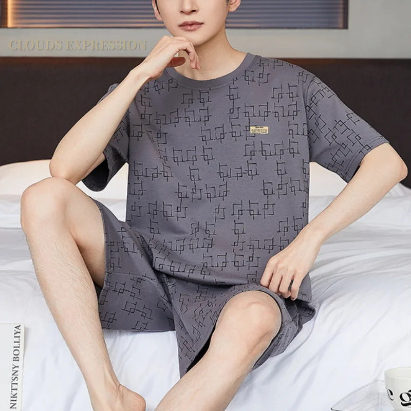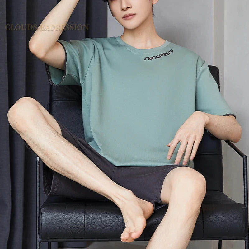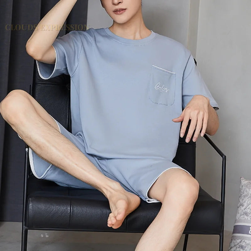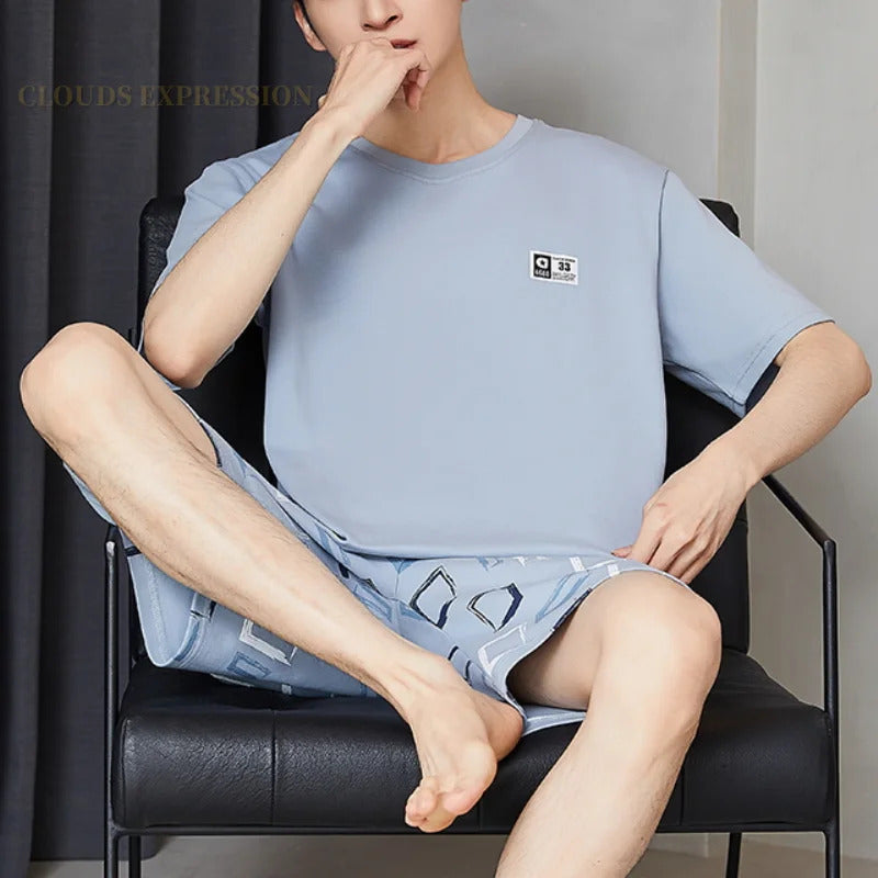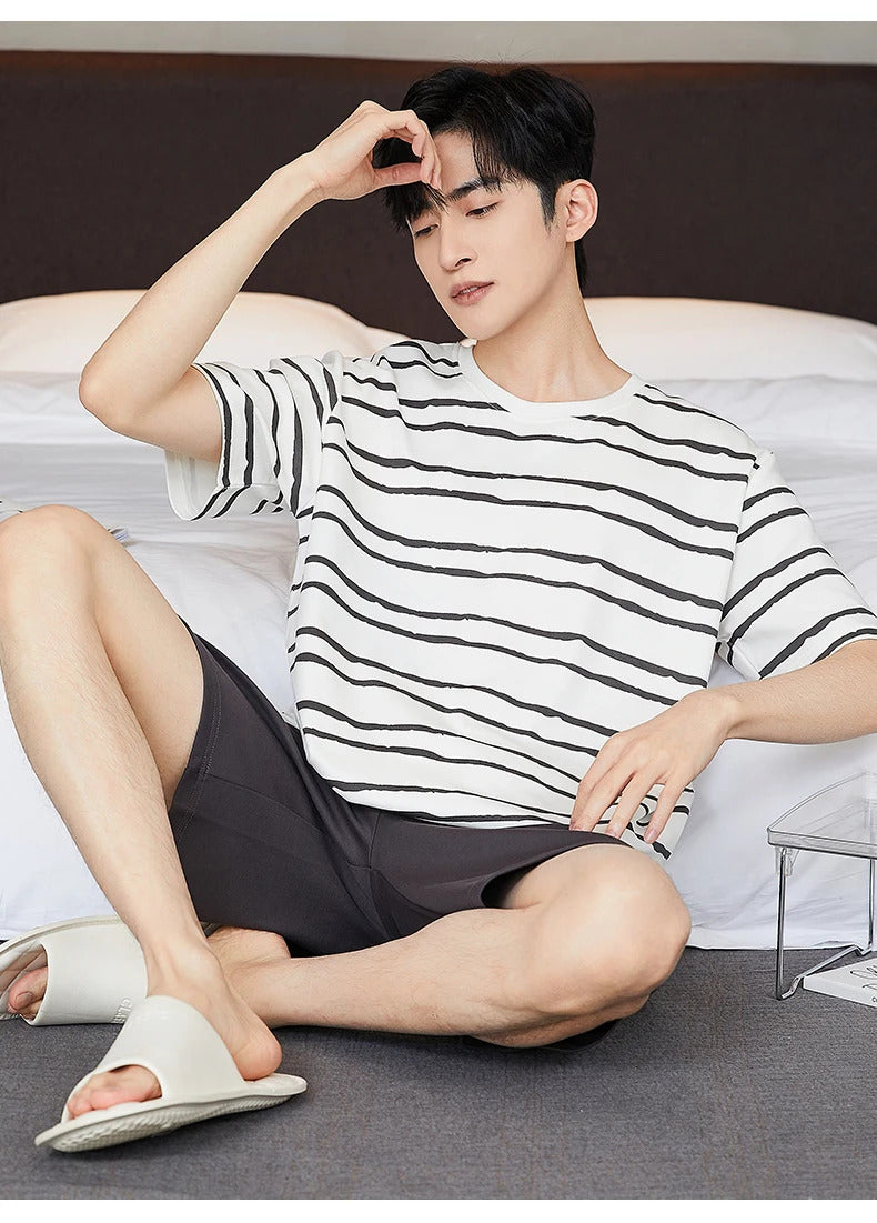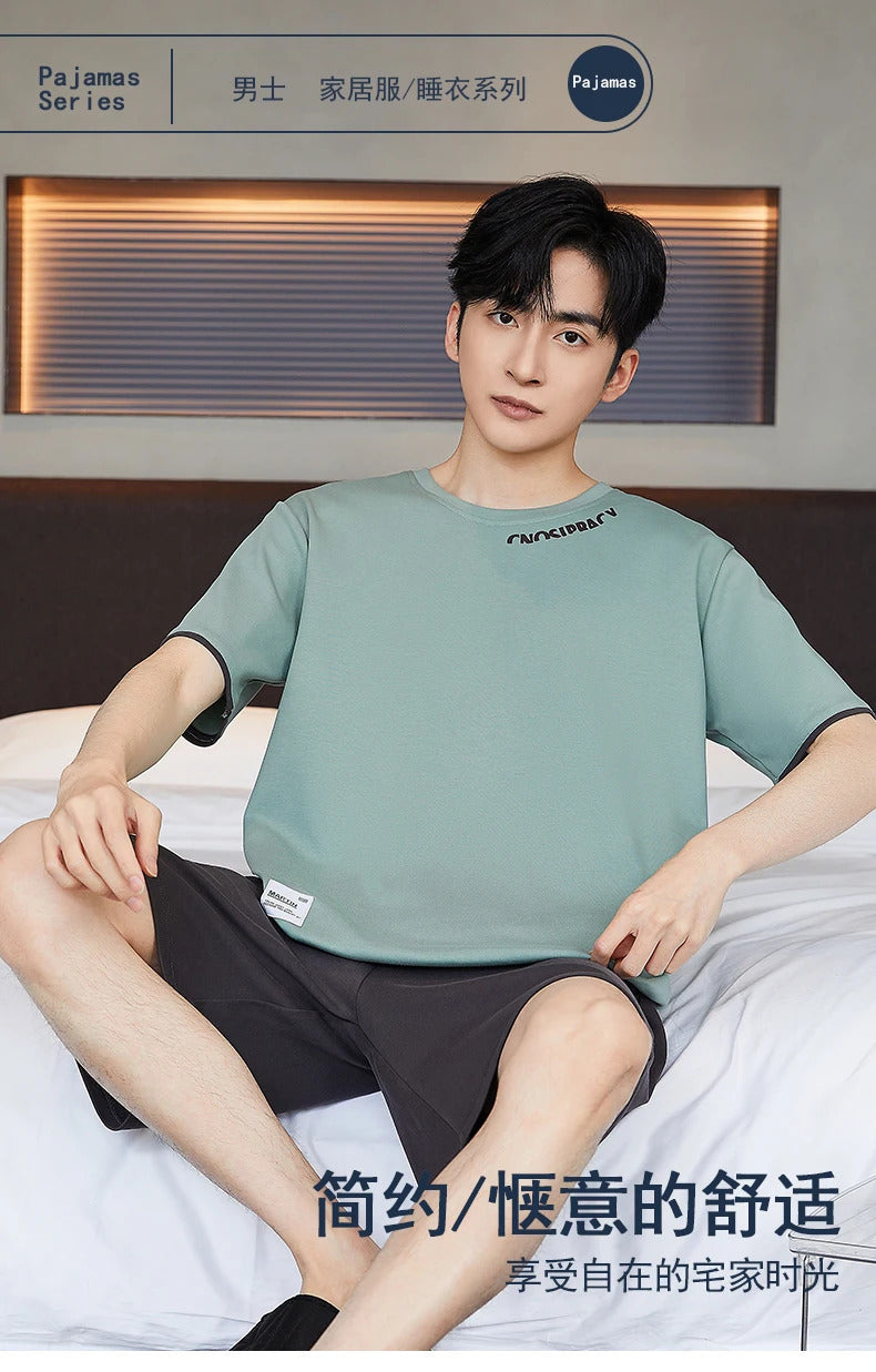 睡衣男Summer Plus 3XL Knitted Pjs Short Sleeve Mens Pajamas Sets Male Pajama Set Plaid Pajama For Men Sleepwear Suits Homewear Fashion