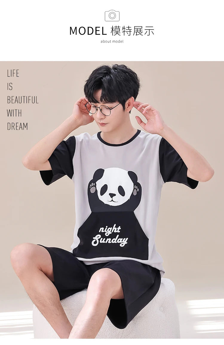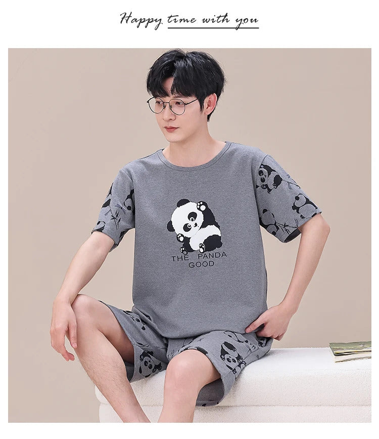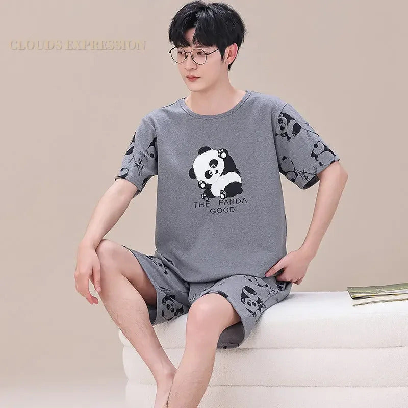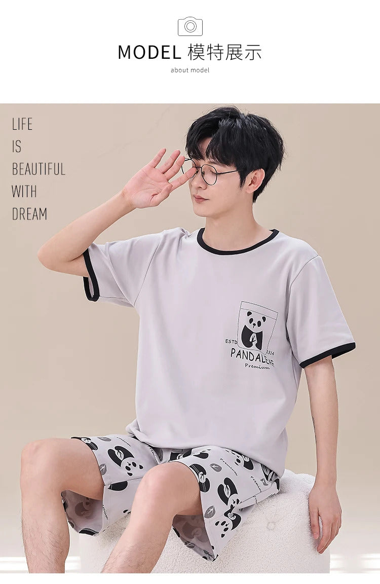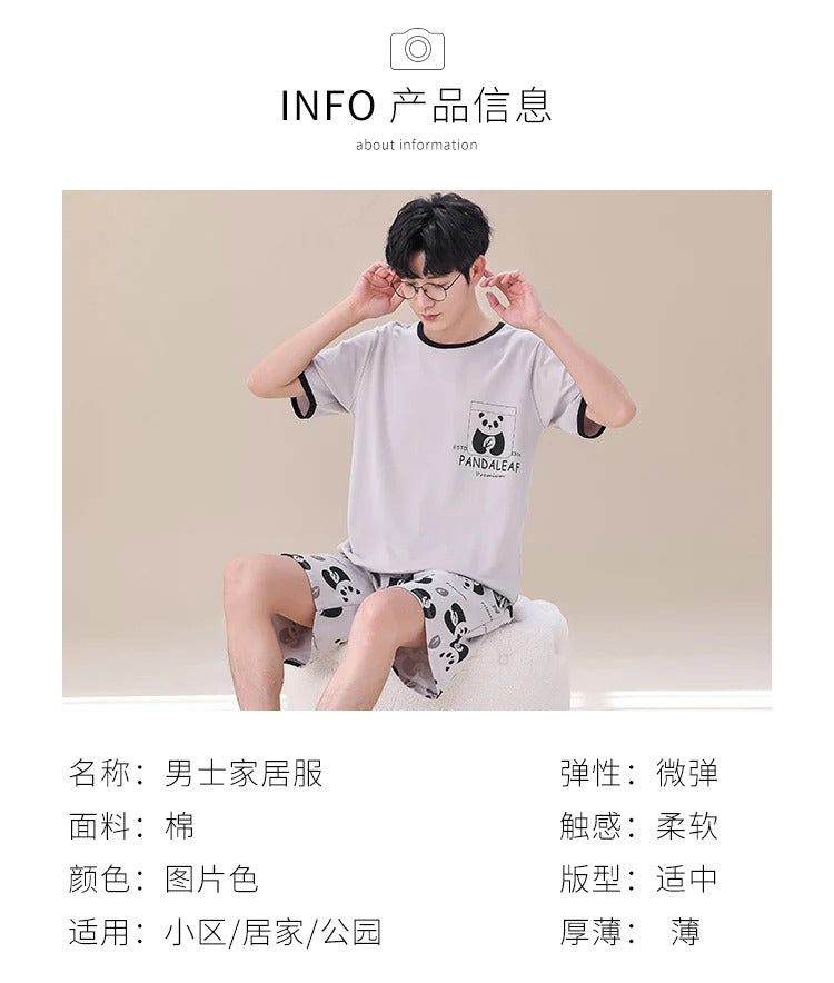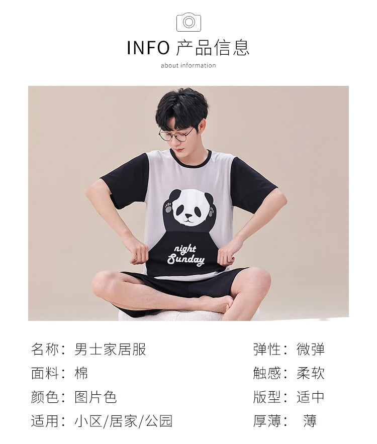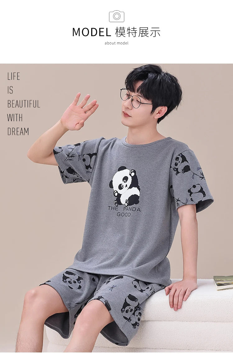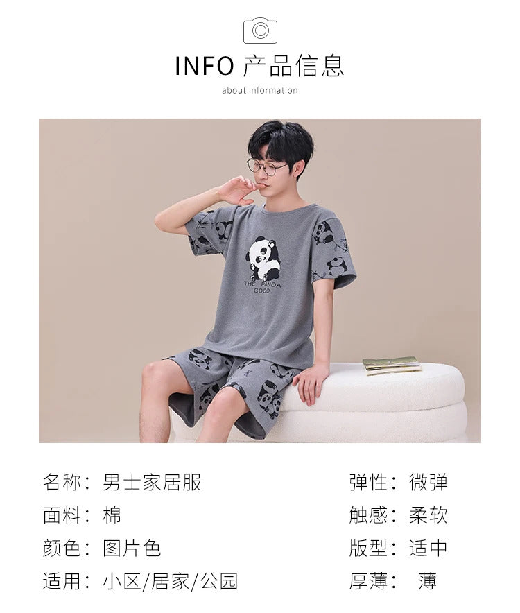 睡衣男Summer Plus 4XL Cartoon Panda Big Boys Pyjamas Knitted Men's Pajamas Sets Sleepwear Pyjamas Nightwear Suits Pijamas Loungewear
