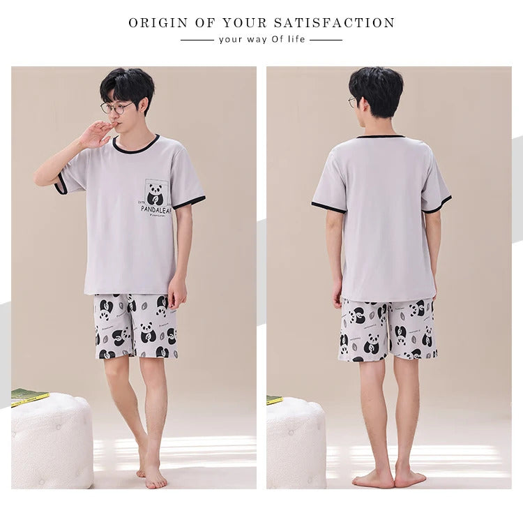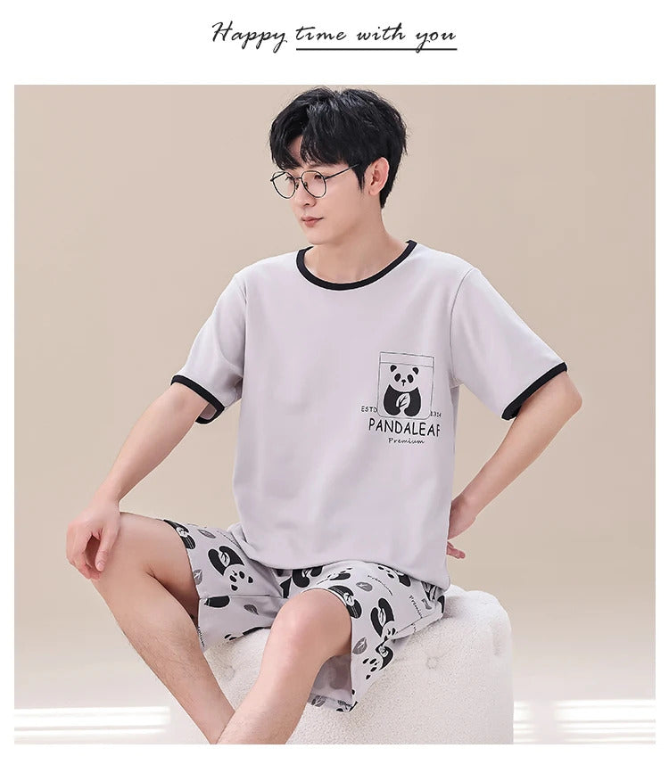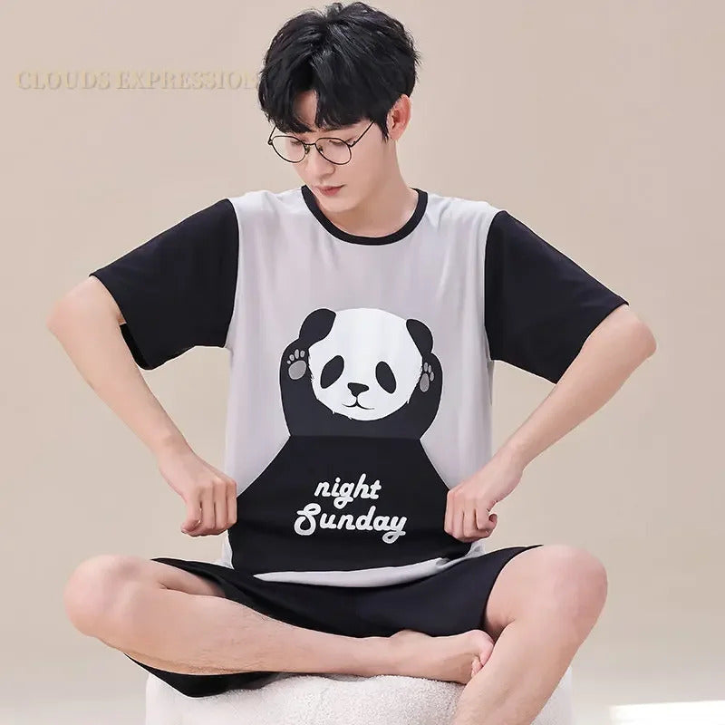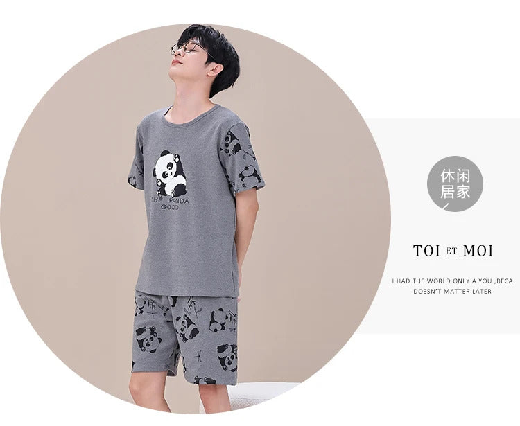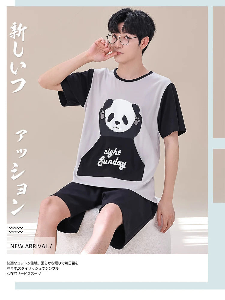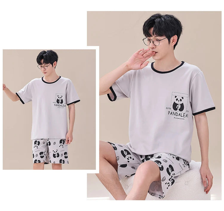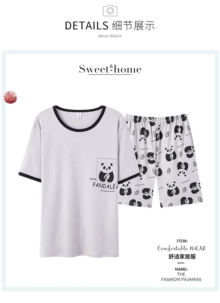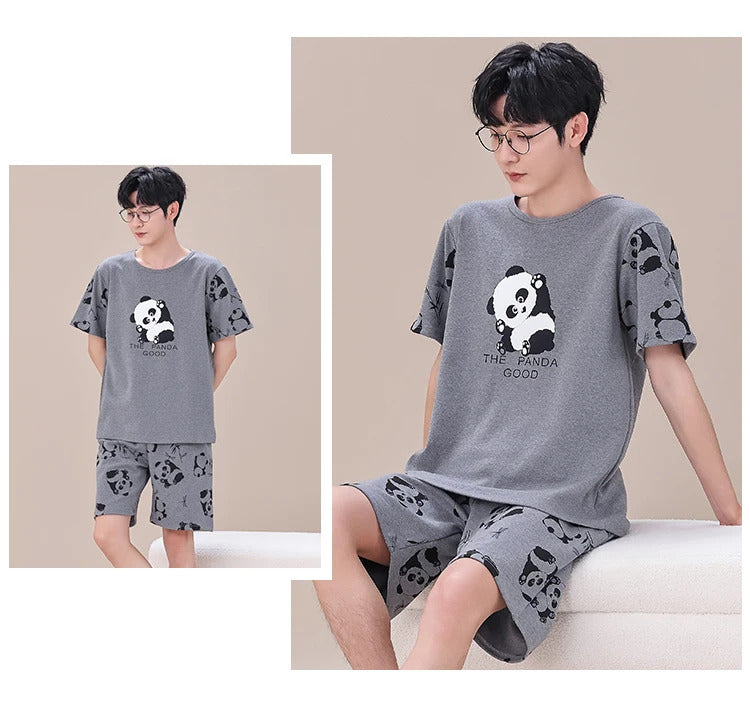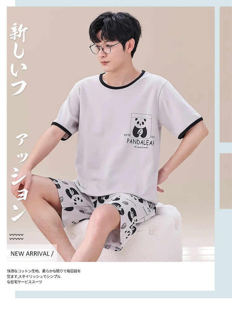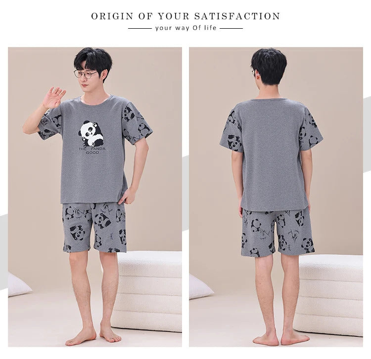 睡衣男Summer Plus 4XL Cartoon Panda Big Boys Pyjamas Knitted Men's Pajamas Sets Sleepwear Pyjamas Nightwear Suits Pijamas Loungewear