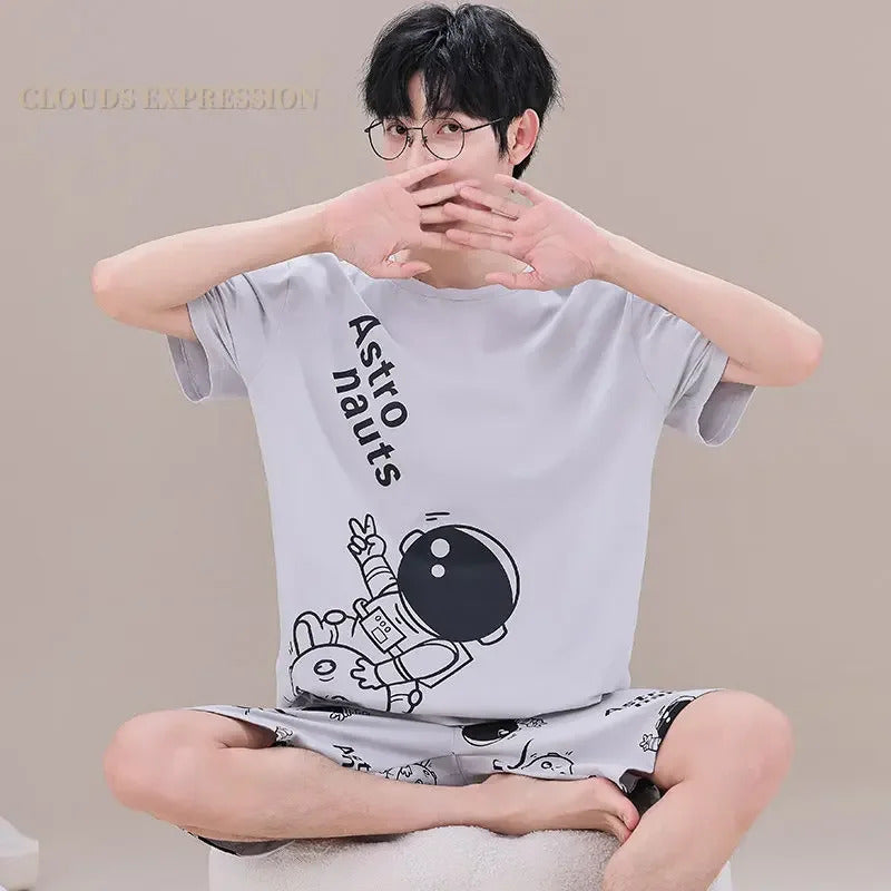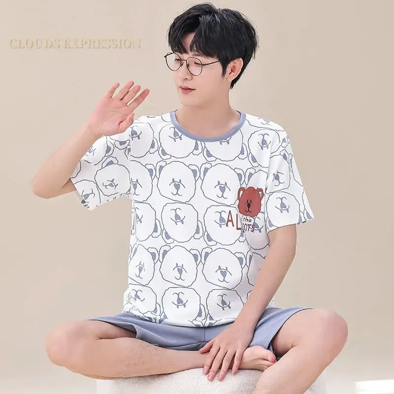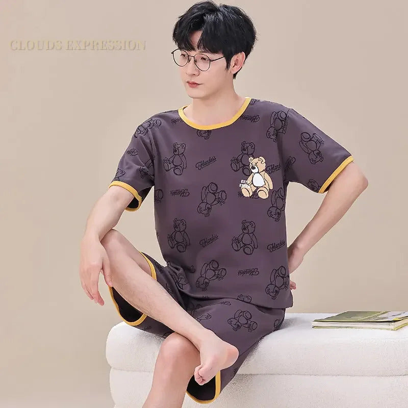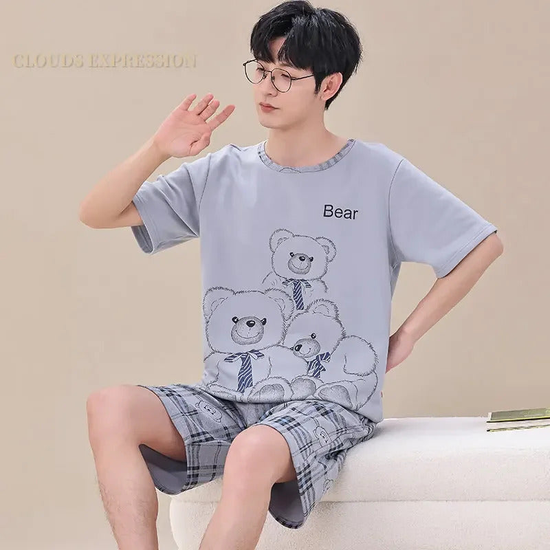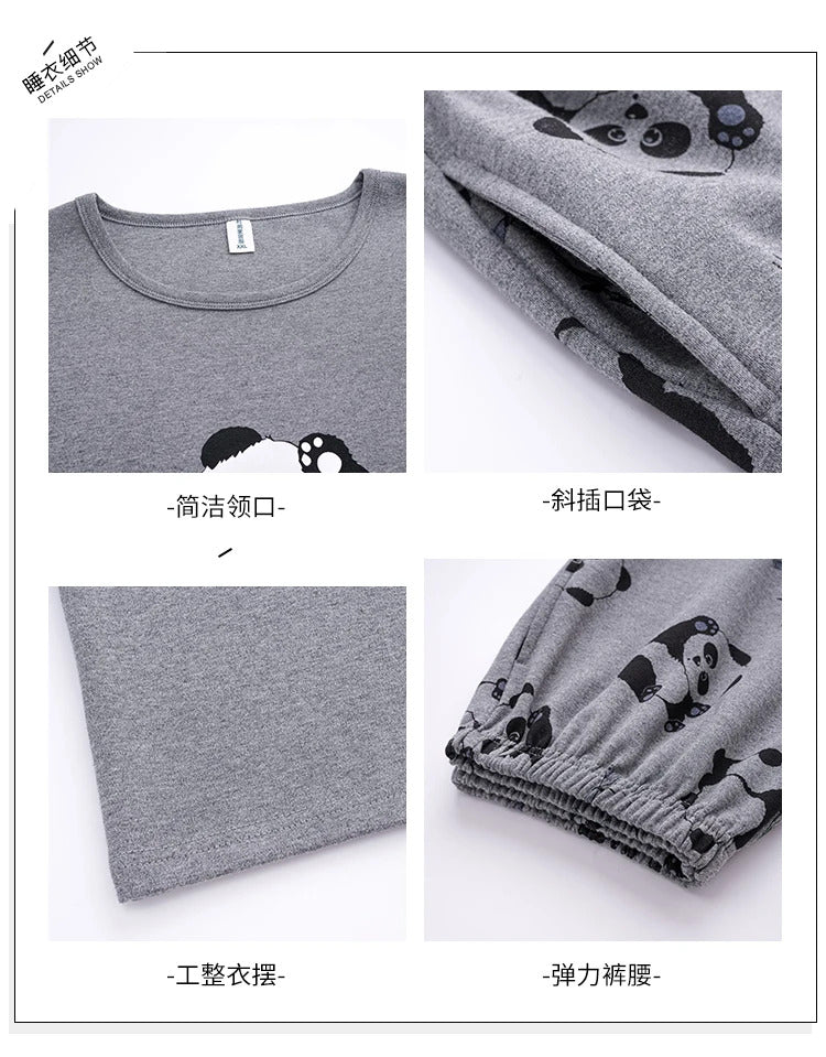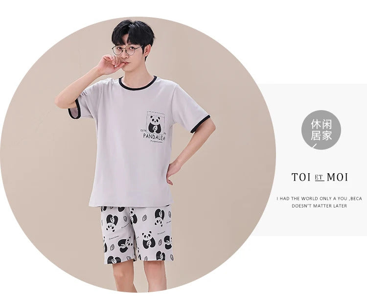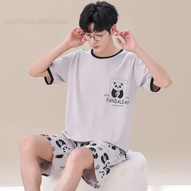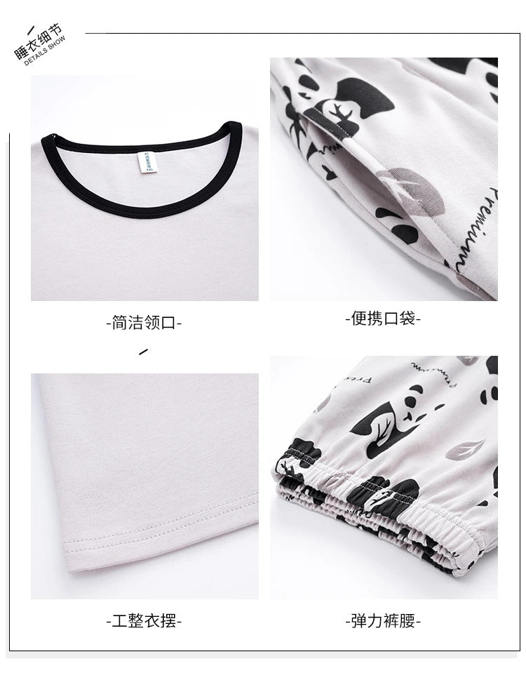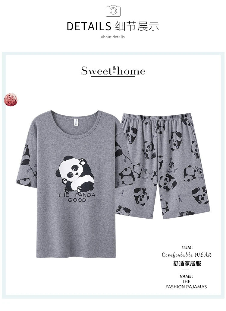 睡衣男Summer Plus 4XL Cartoon Panda Big Boys Pyjamas Knitted Men's Pajamas Sets Sleepwear Pyjamas Nightwear Suits Pijamas Loungewear