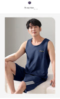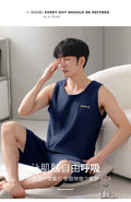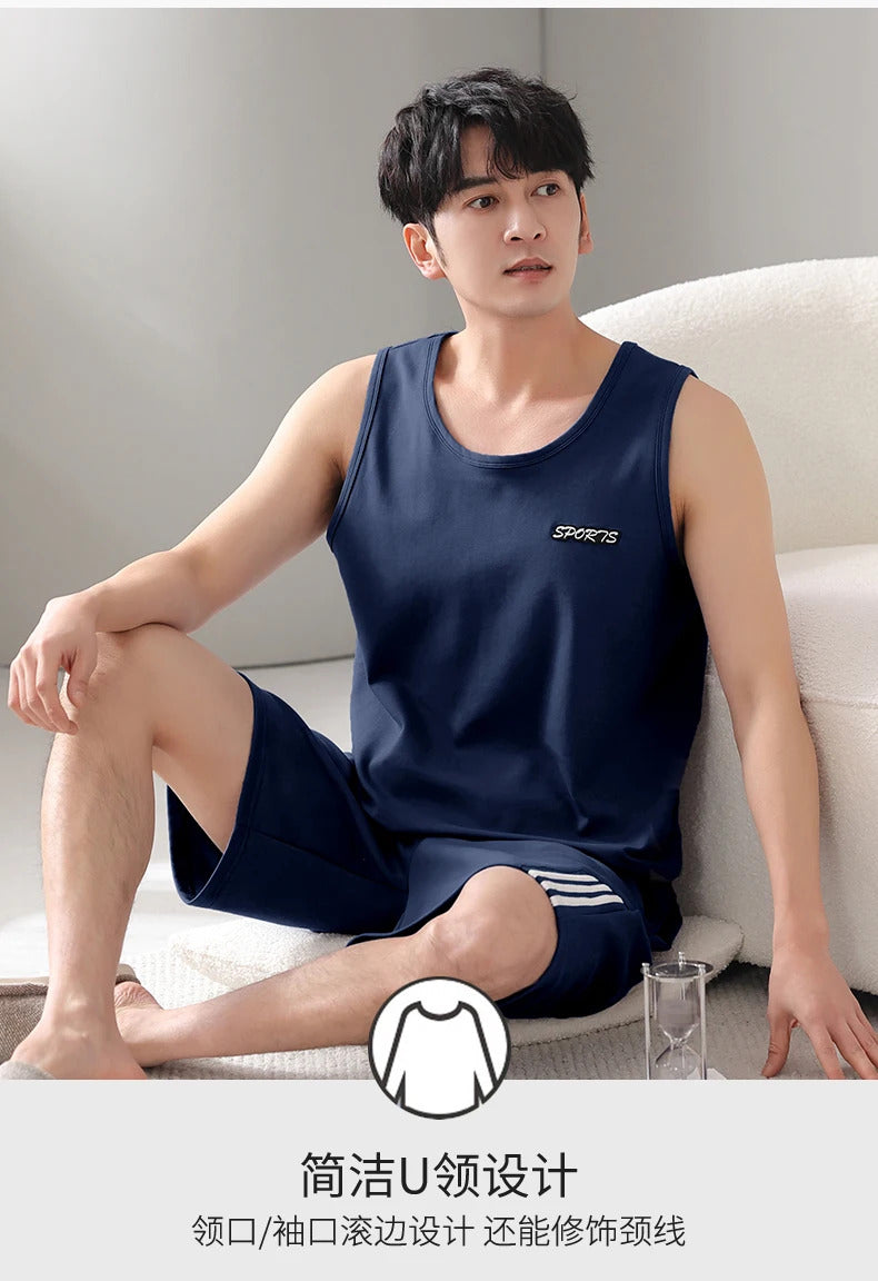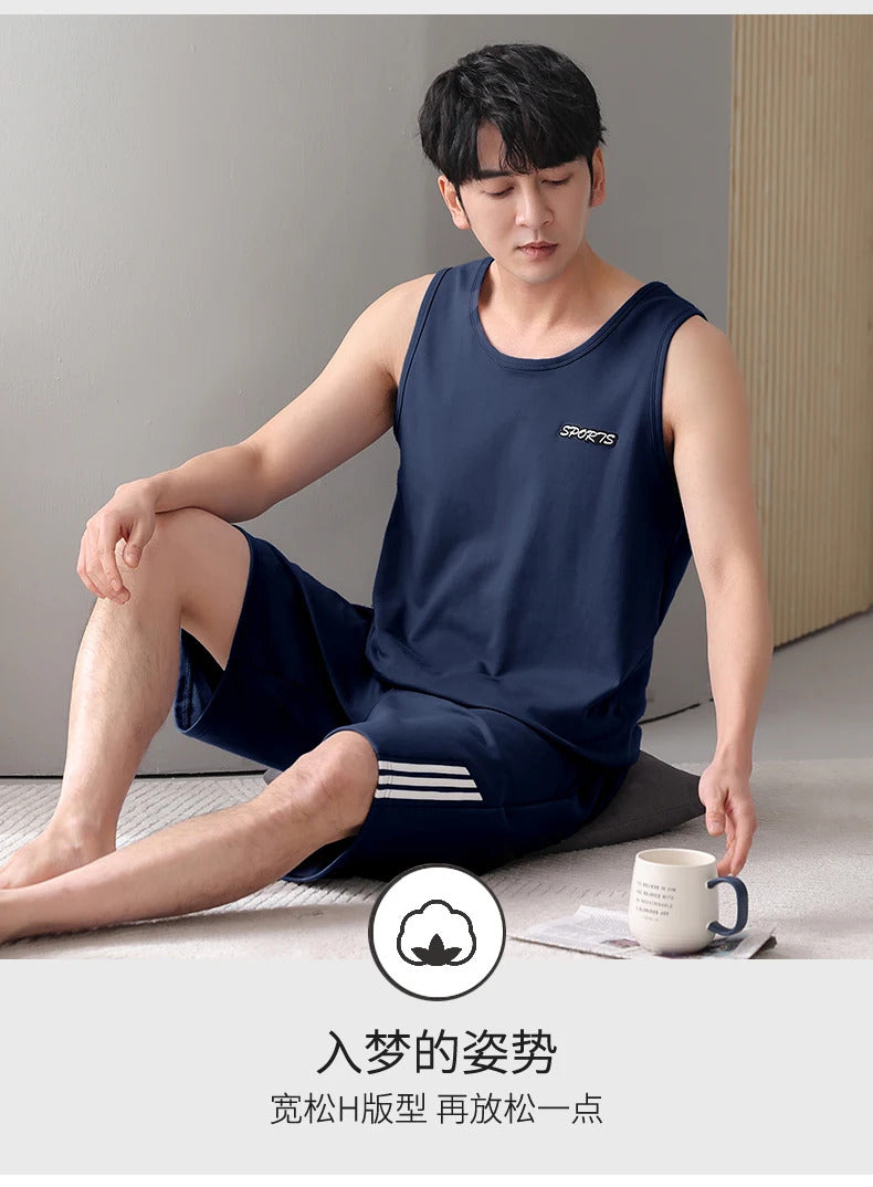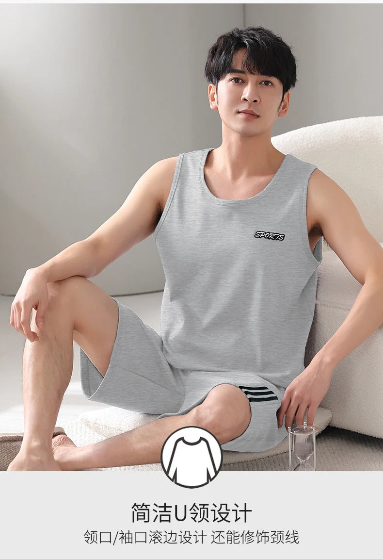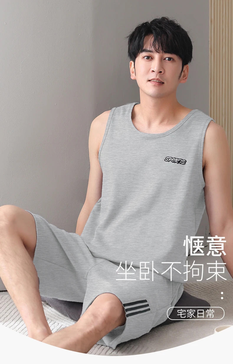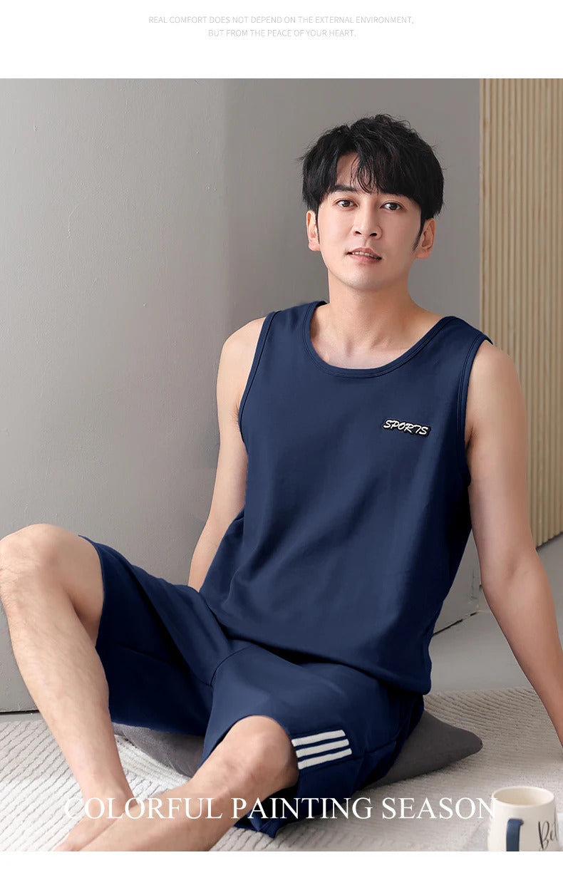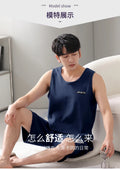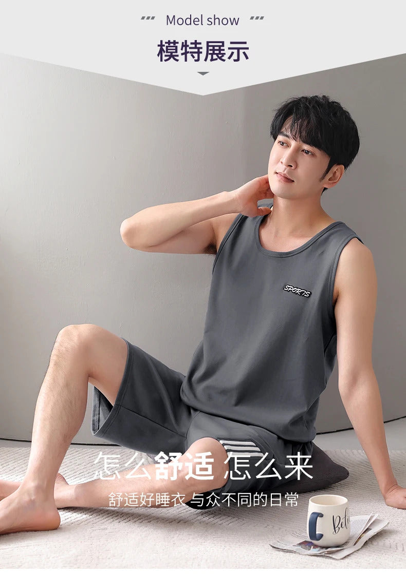 睡衣男Summer Plus 7XL Knitted Pjs Sleeveless Mens Pajama Sets Male Pajamas Plaid Loungewear For Masculine Sleepwear Homewear Fashion